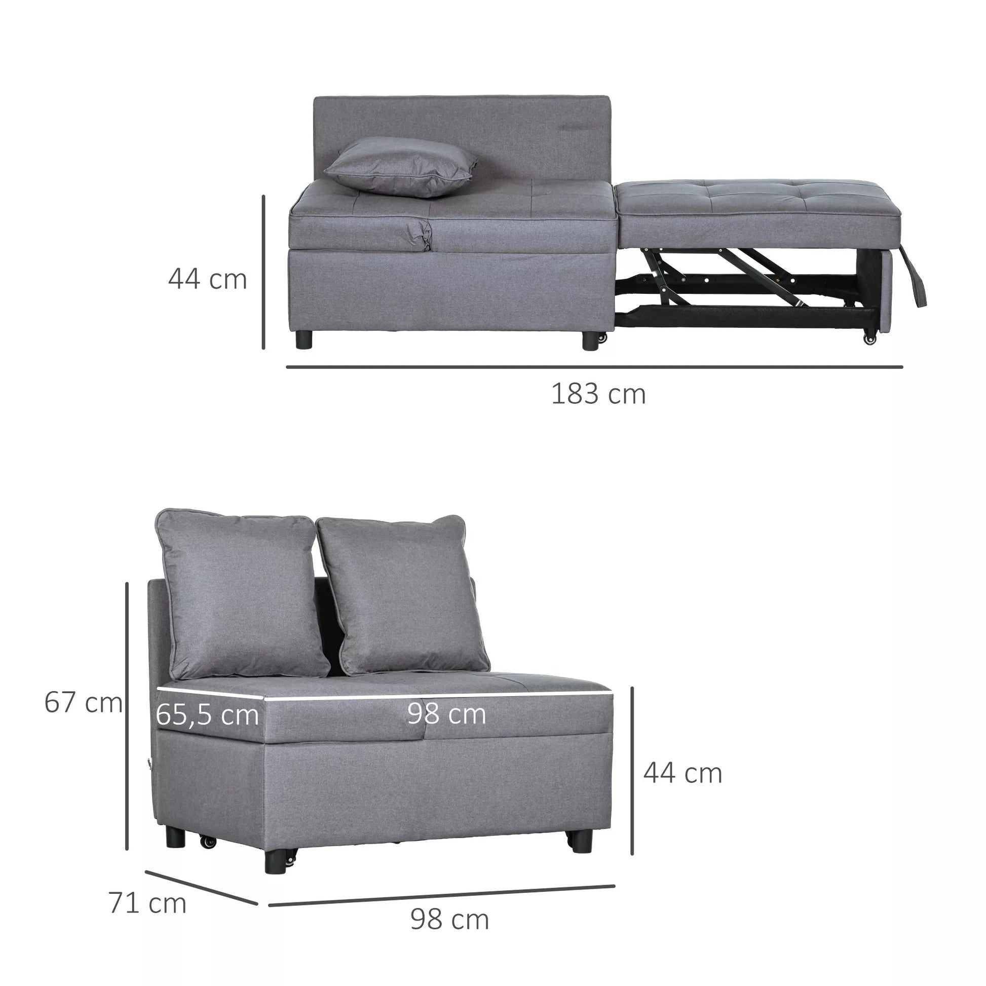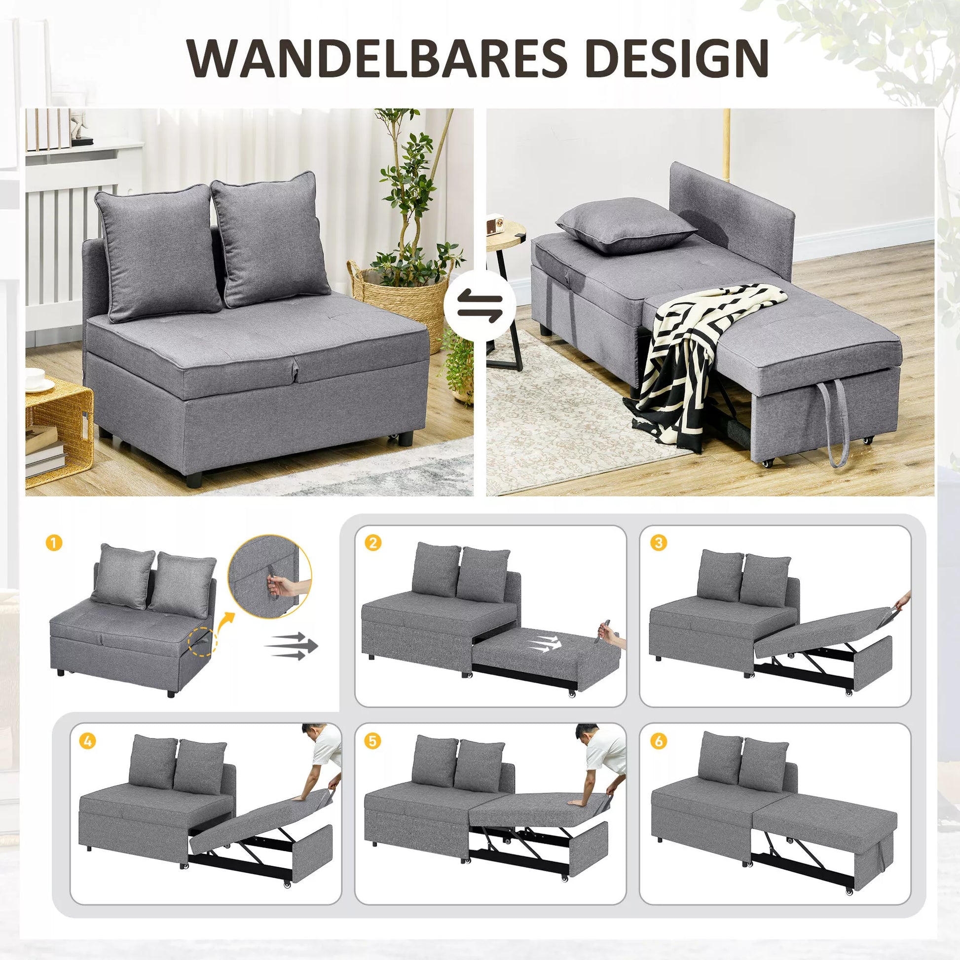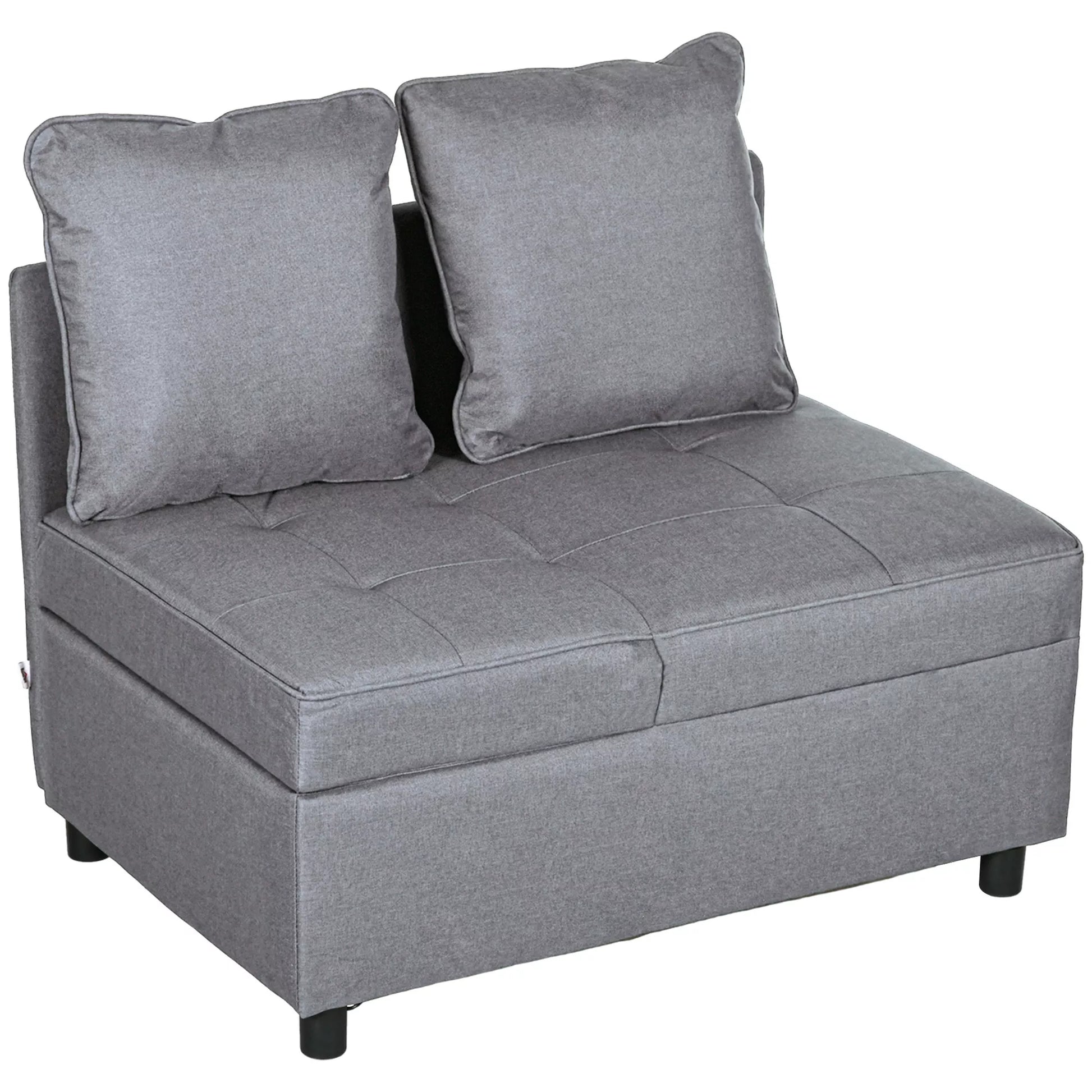 Miegamoji sofa-lova, 2 vietų fotelis su miegojimo funkcija, sulankstomas minkštasuolis su 2 pagalvėlėmis, su lino imitacijos apmušalu, tamsiai pilka