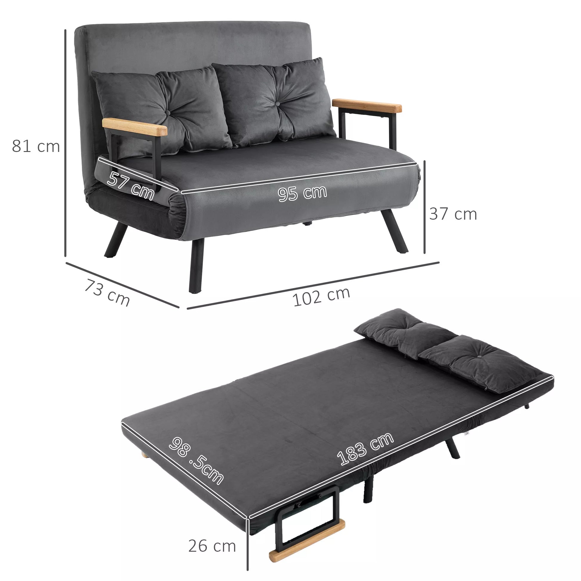 Miegamoji sofa, 2 vietų sofa, aksominė sofa, su miegojimo funkcija, su 2 pagalvėlėmis, aksominė išvaizda, Natūrali + Tamsiai pilka + Juoda