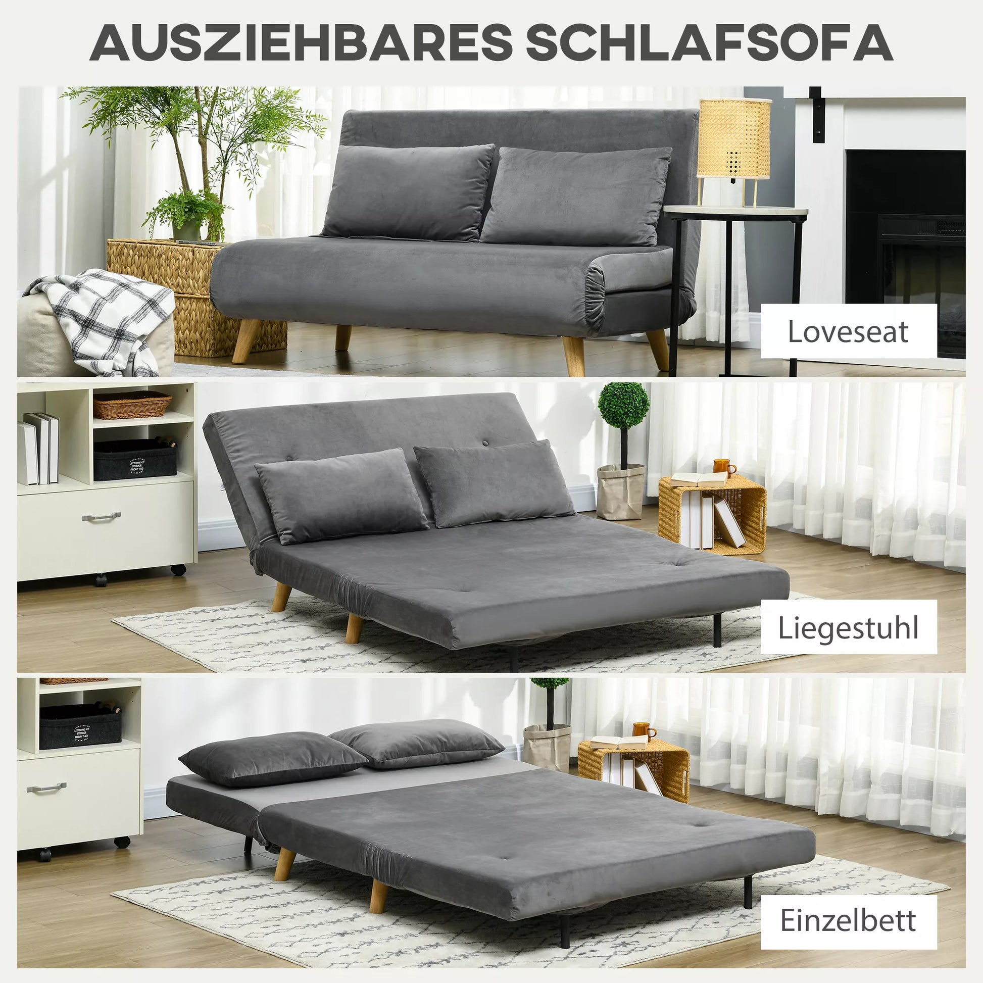 - ✔ Tvirtas plieno rėmas, medinės gumos medienos kojelės ir neslystantys padukai ant sofos su miegojimo funkcija užtikrina stabilumą