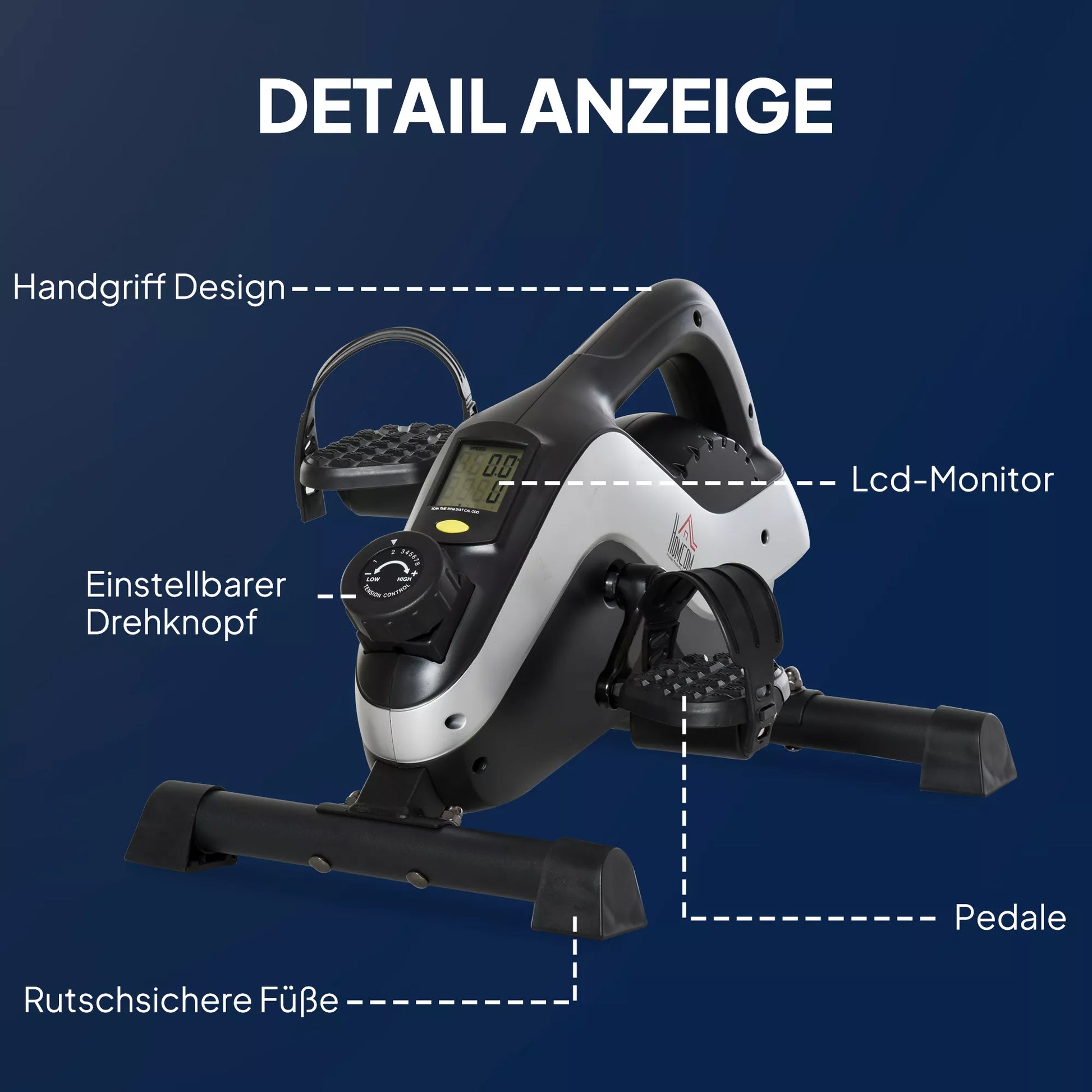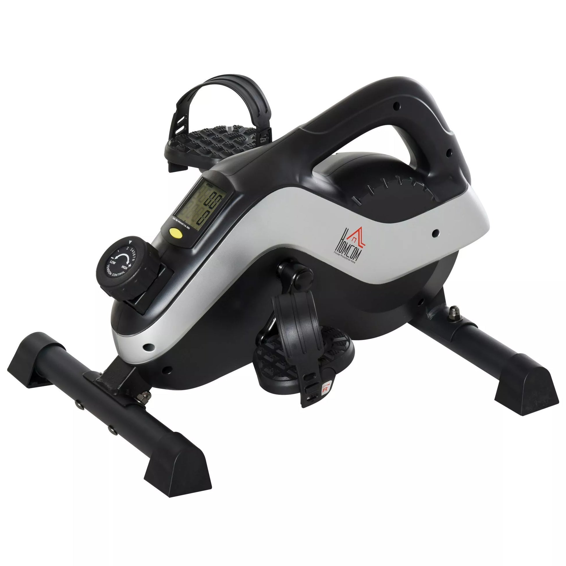 Naudokite pedalų treniruoklį, kad išliktumėte aktyvūs bet kur. Senjorams skirtas pedalų treniruoklis yra lengvas, kompaktiškas ir lengvai transportuojamas. Pastatykite namų pedalų treniruoklį po stalu darbe arba šalia sofos žiūrėdami televizorių. Naudodami pasipriešinimo rankenėlę, reguliuokite intensyvumą aštuoniais lygiais. Kojų treniruoklio LCD ekranas rodo greitį, atstumą, laiką ir kalorijas. Šiuo pėdos pedalų treniruokliu pagerinsite kraujotaką ir širdies veiklą.