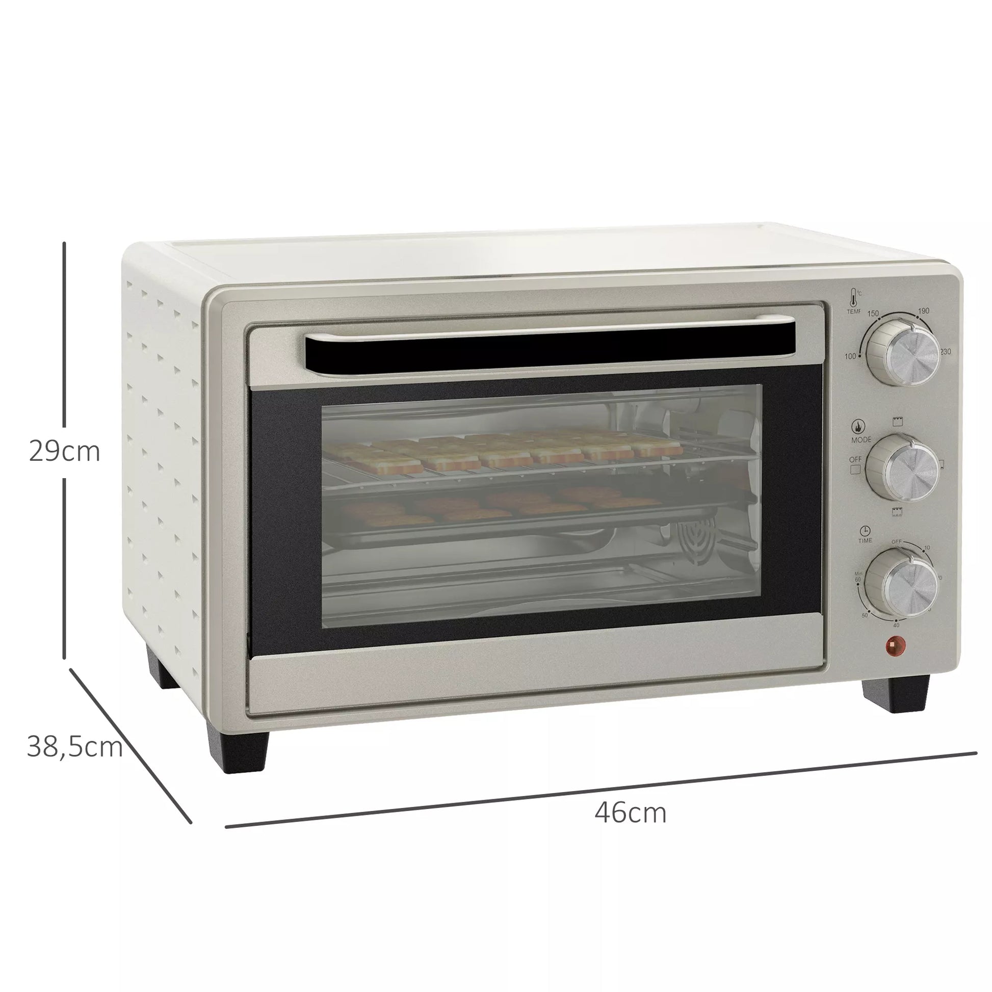 Miniorkaitė, 21 L kompaktiška krosnelė su skrudintuvo funkcija, su 1 grotelių ir 1 skardos, 3 virimo režimai, 100 °C-230 °C, nerūdijančio plieno, stiklas, kreminės baltos spalvos