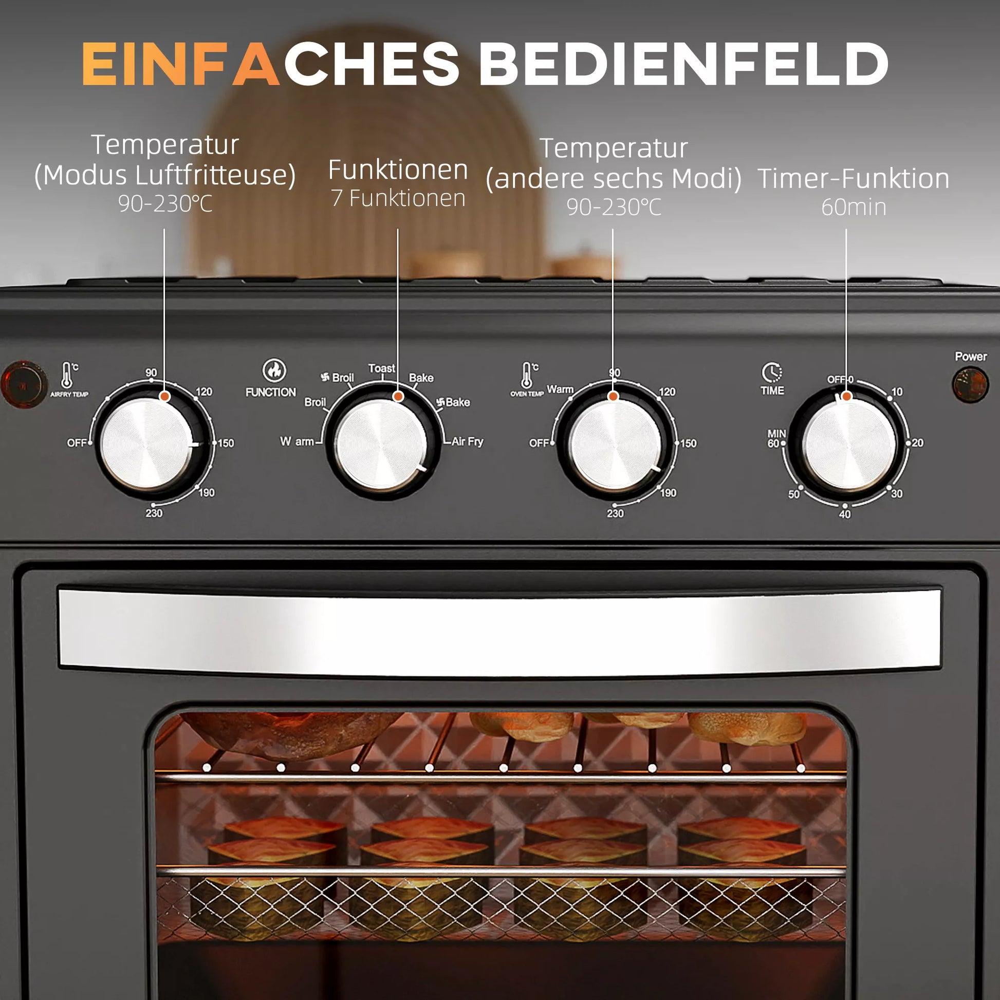 Miniorkaitė, oro keptuvė, 90–230 °C, 7 programos, priedai, juoda