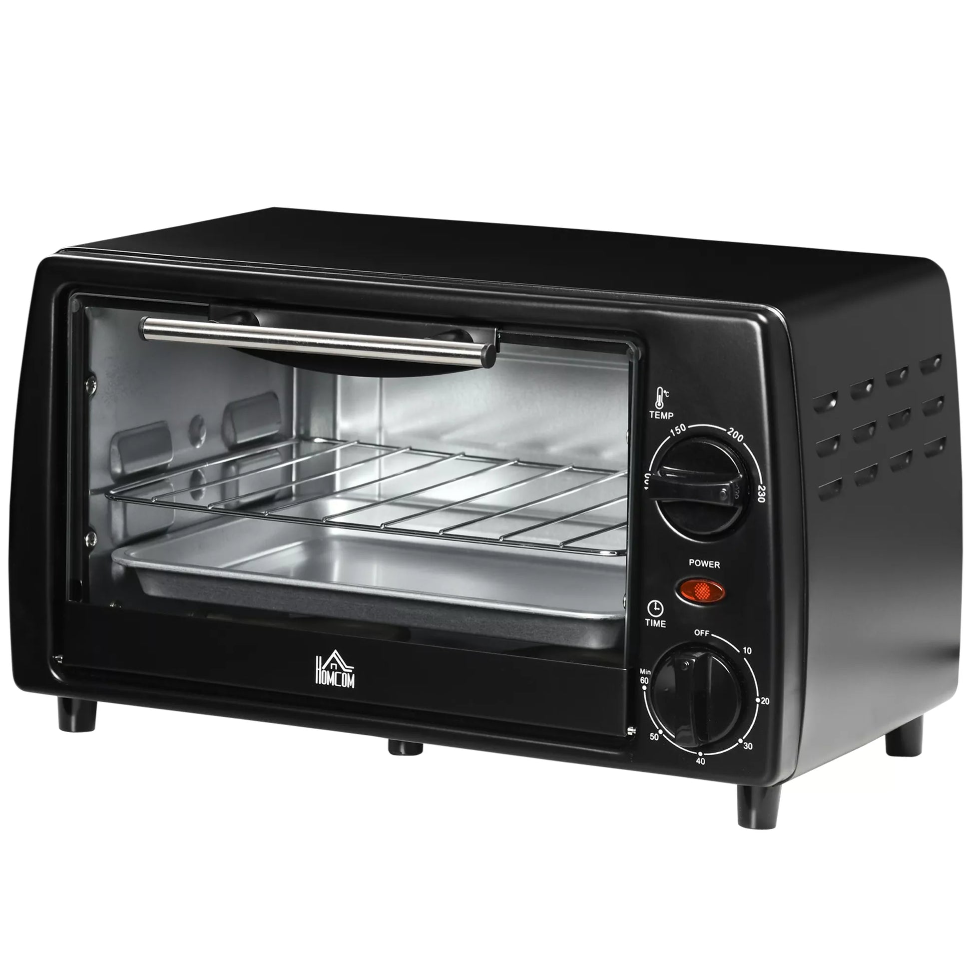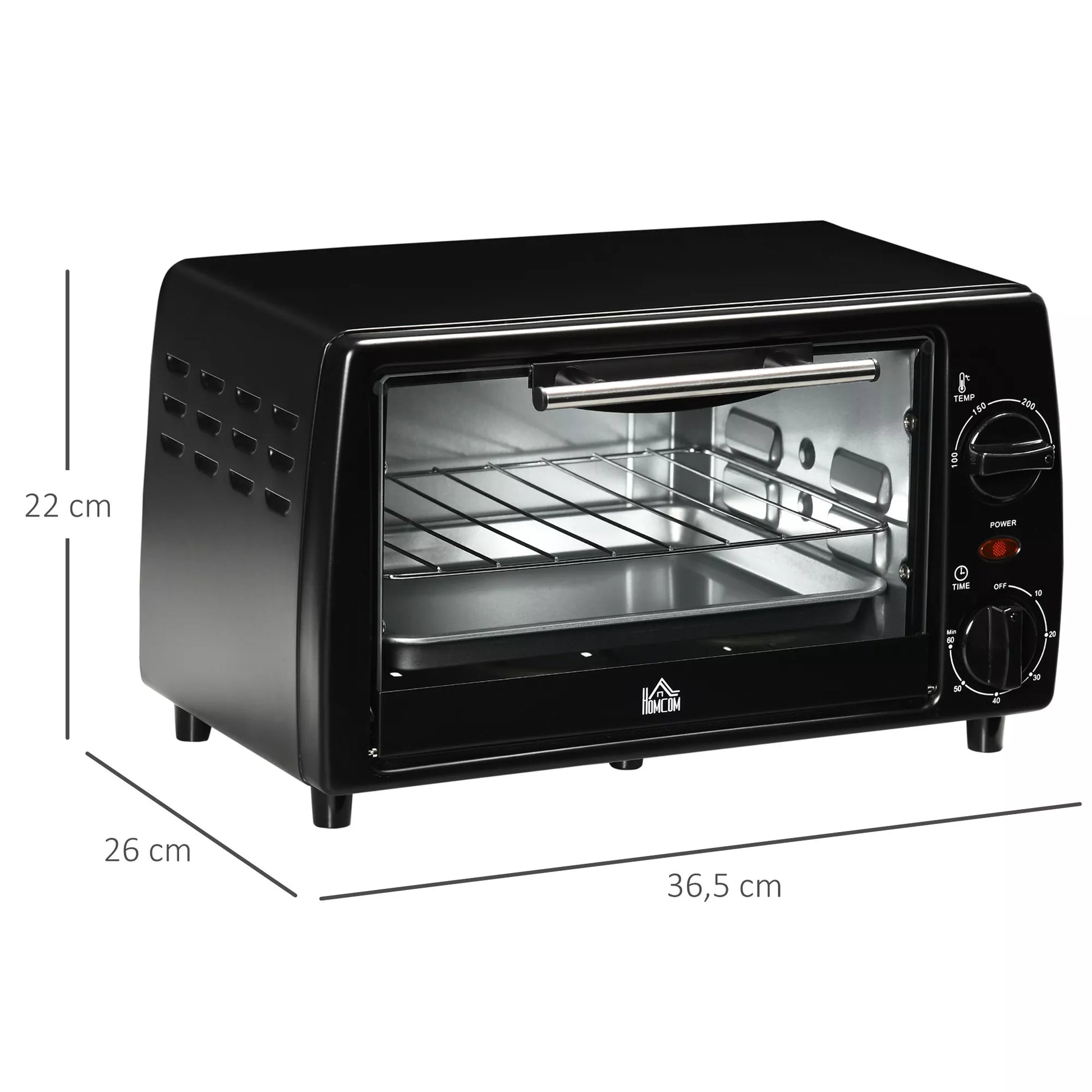Mini orkaitė skrudintuvui, 1 kepimo skarda, 1 grotelių skrudinimui, 10 L talpa, laikmačio funkcija, 36.5 cm x 26 cm x 22 cm, juoda
