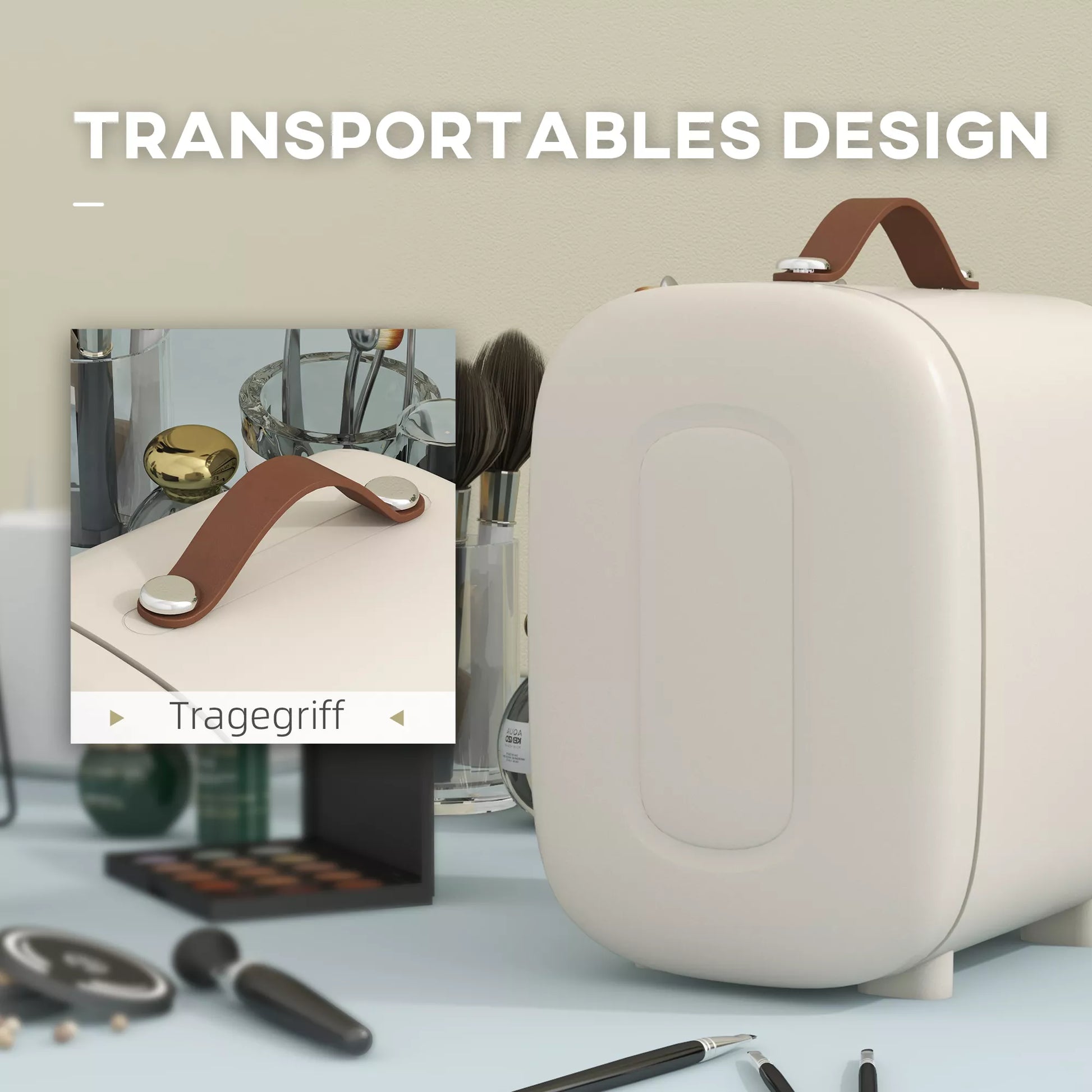 Mini šaldytuvas Grožio šaldytuvas, 4 L talpa, 20,3 x 26,3 x 28 cm, kreminės baltos spalvos