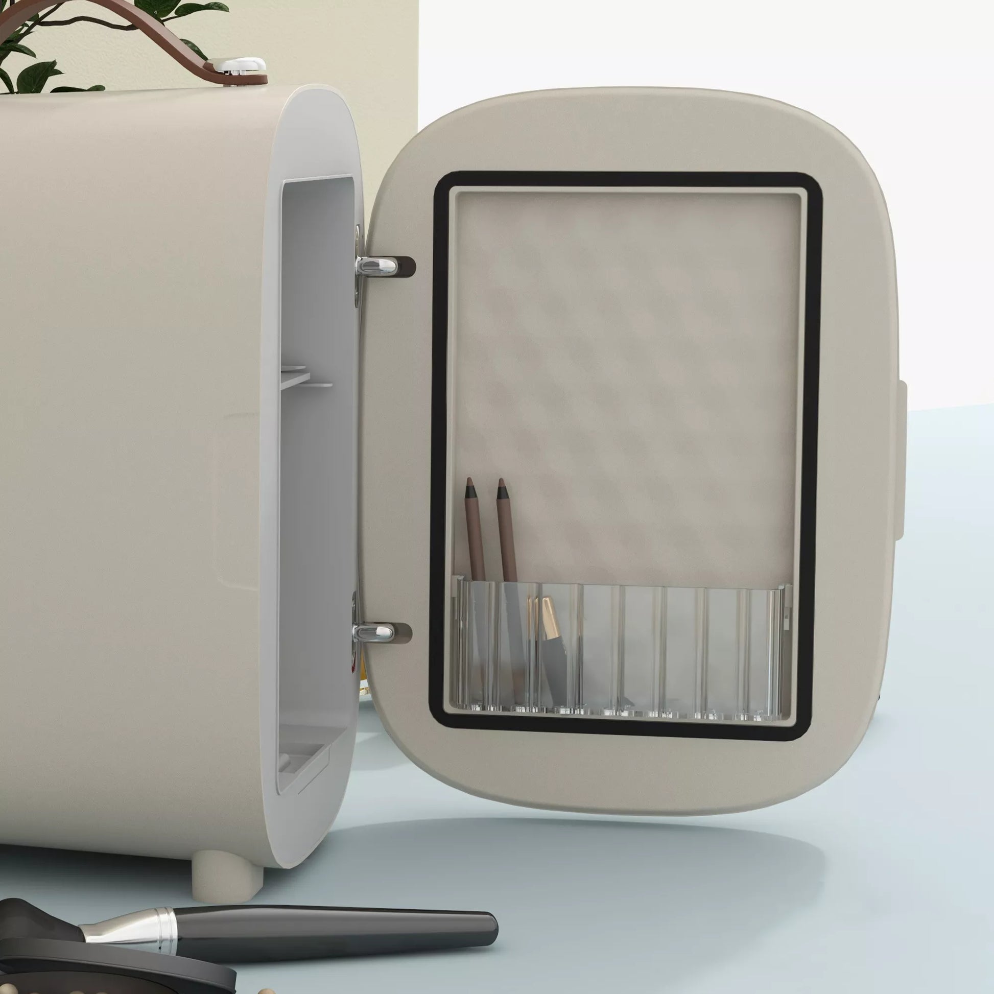 Su mini šaldytuvu galėsite atsisveikinti su grožio produktų laikymu virtuvės šaldytuve ir rasti elegantišką bei paprastą sprendimą. Mini šaldytuvas ne tik puikiai dera jūsų namuose, bet ir suteikia jūsų asmeninei priežiūrai skirtą erdvę, kurioje jūsų priemonės bus tvarkingai sudėtos ir lengvai pasiekiamos, kai tik jų prireiks. Pasilepinkite su kosmetikos šaldytuvu.