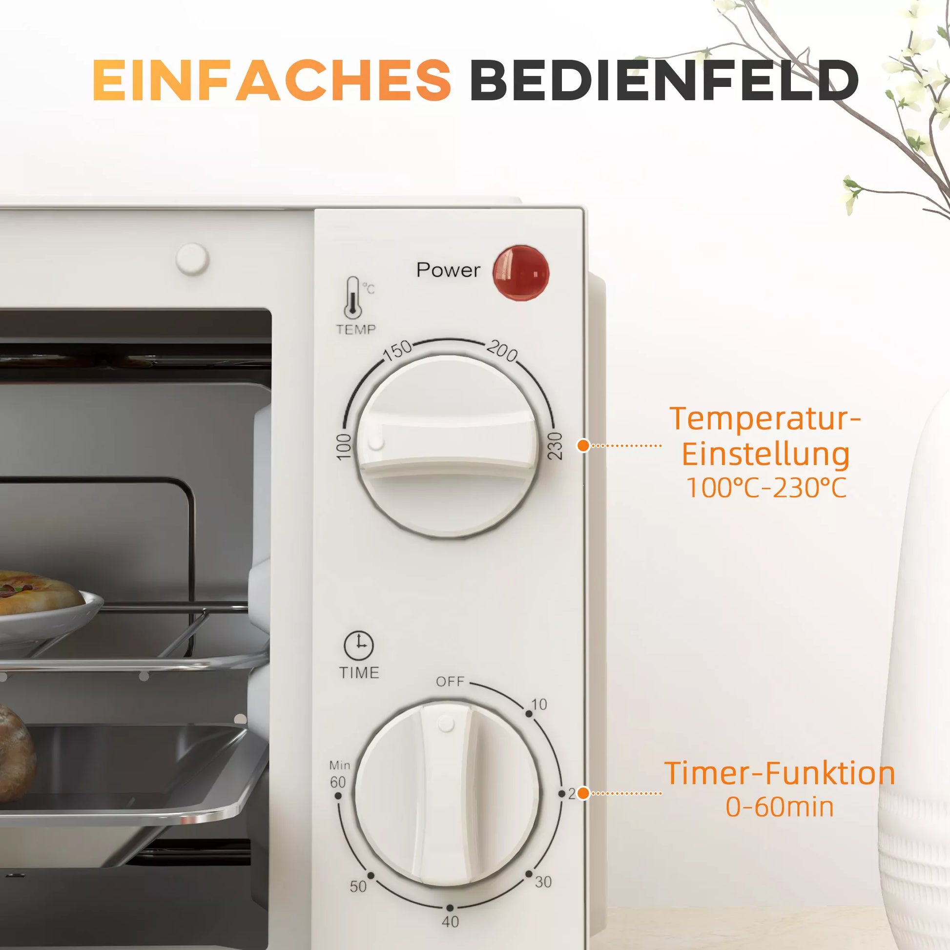 Miniorkaitė, 9 L mini krosnelė su kepimo skarda, grotelėmis, reguliuojama temperatūra ir gaminimo laiku, nerūdijančio plieno, kreminės baltos spalvos