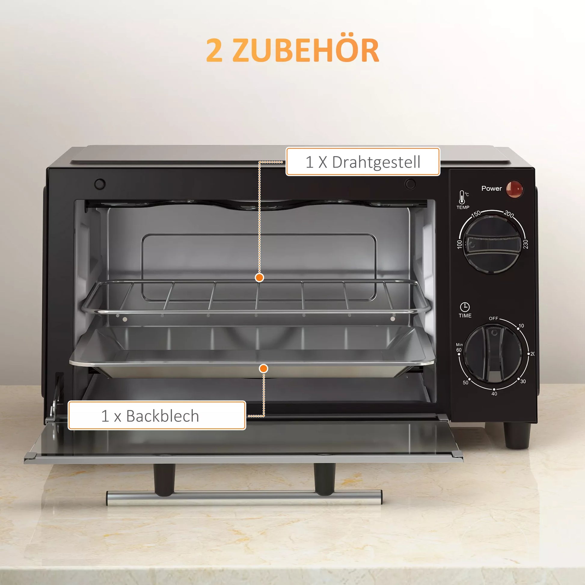 Miniorkaitė, 9 litrų talpa, reguliuojama temperatūra ir kepimo laikas, su grotelėmis ir kepimo skarda, juoda
