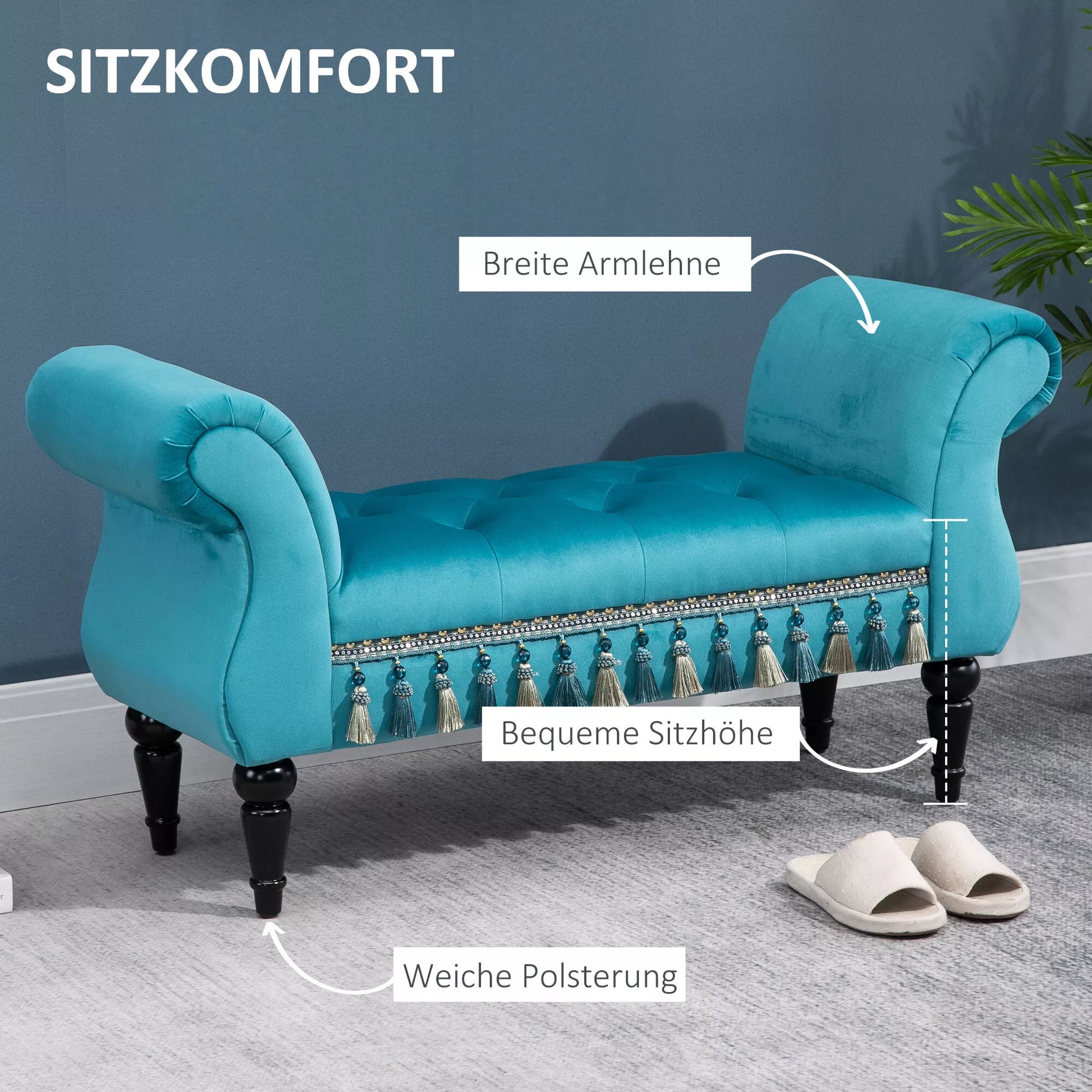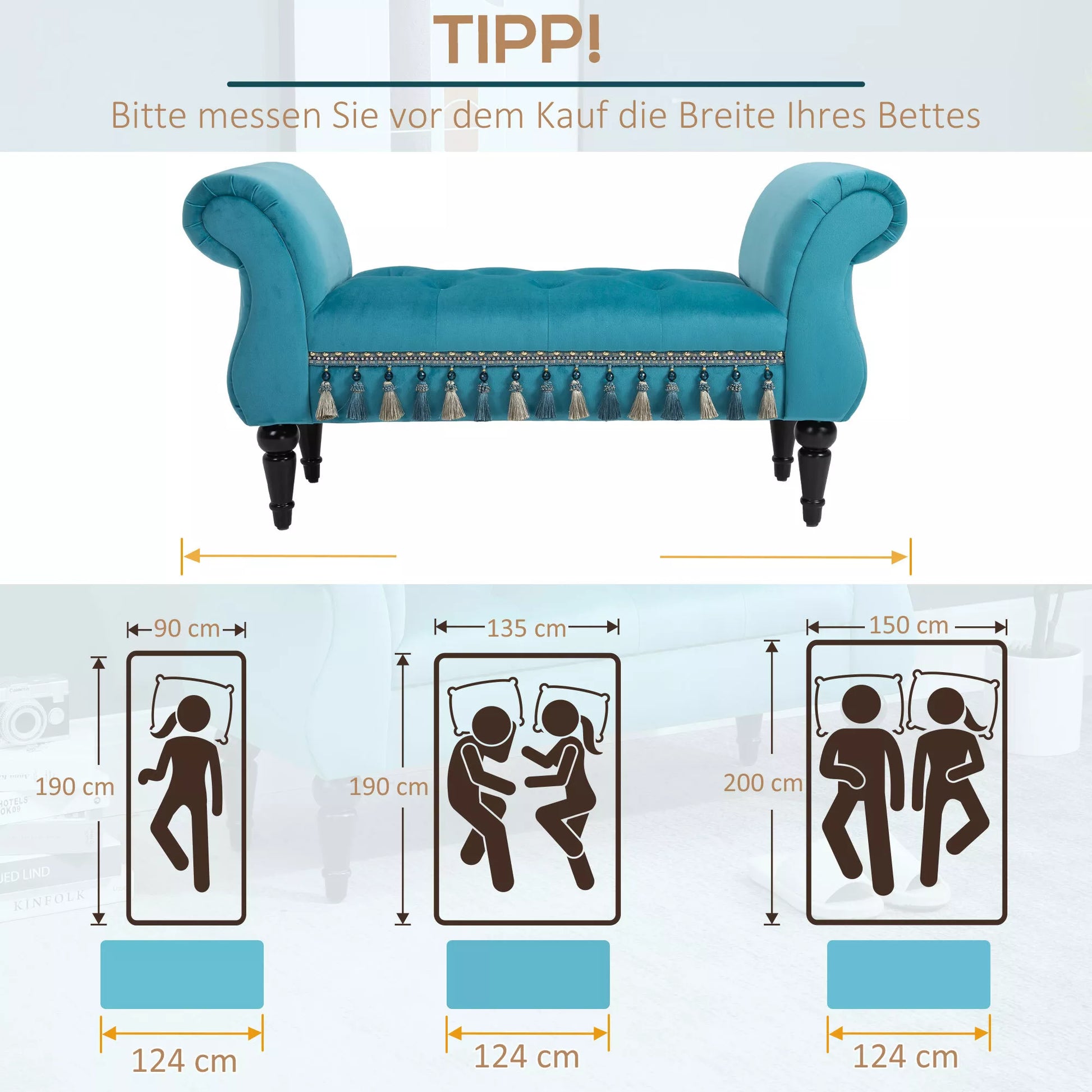 Minkštas suolas su aksominiu apmušalu, su atlošu ir mediniu rėmu, suoliukas miegamajam, svetainei, prieškambariui 117 x 40 x 58 cm Mėlynas