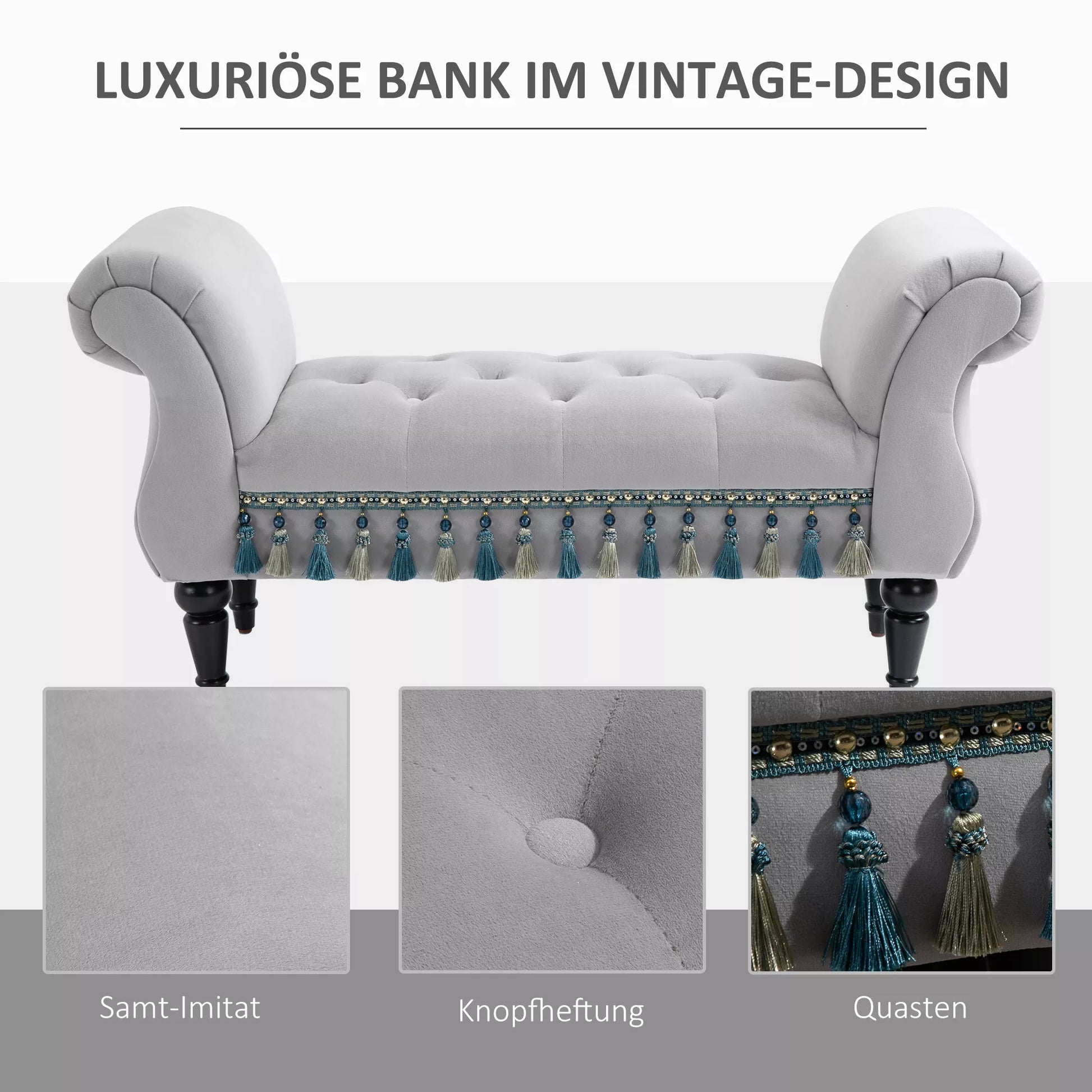 Minkštas suoliukas su aksominiu apmušalu, su atlošu, medinio rėmo suoliukas, batų suoliukas miegamajam, svetainei, koridoriui 117 x 40 x 58 cm šviesiai pilkos spalvos