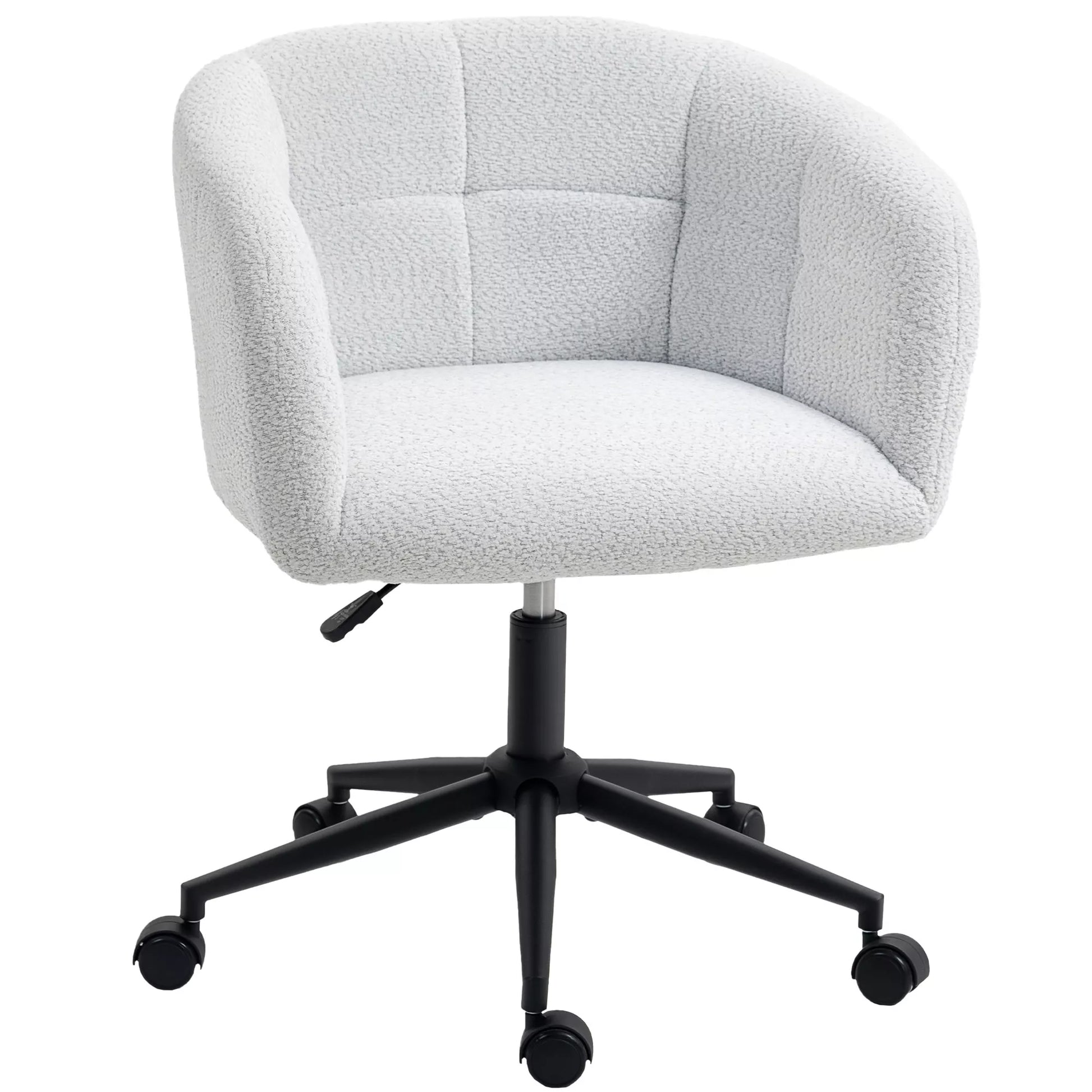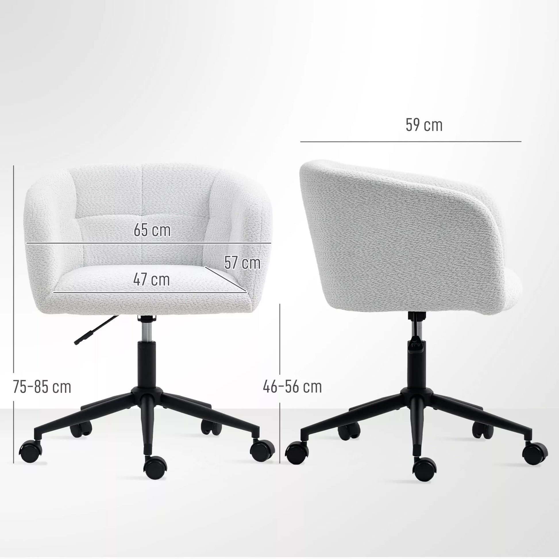 Paminkštinta biuro kėdė su pliušiniu užvalkalu, kaušo dizaino, ritinėjama, su plienine baze, kreminė+juoda