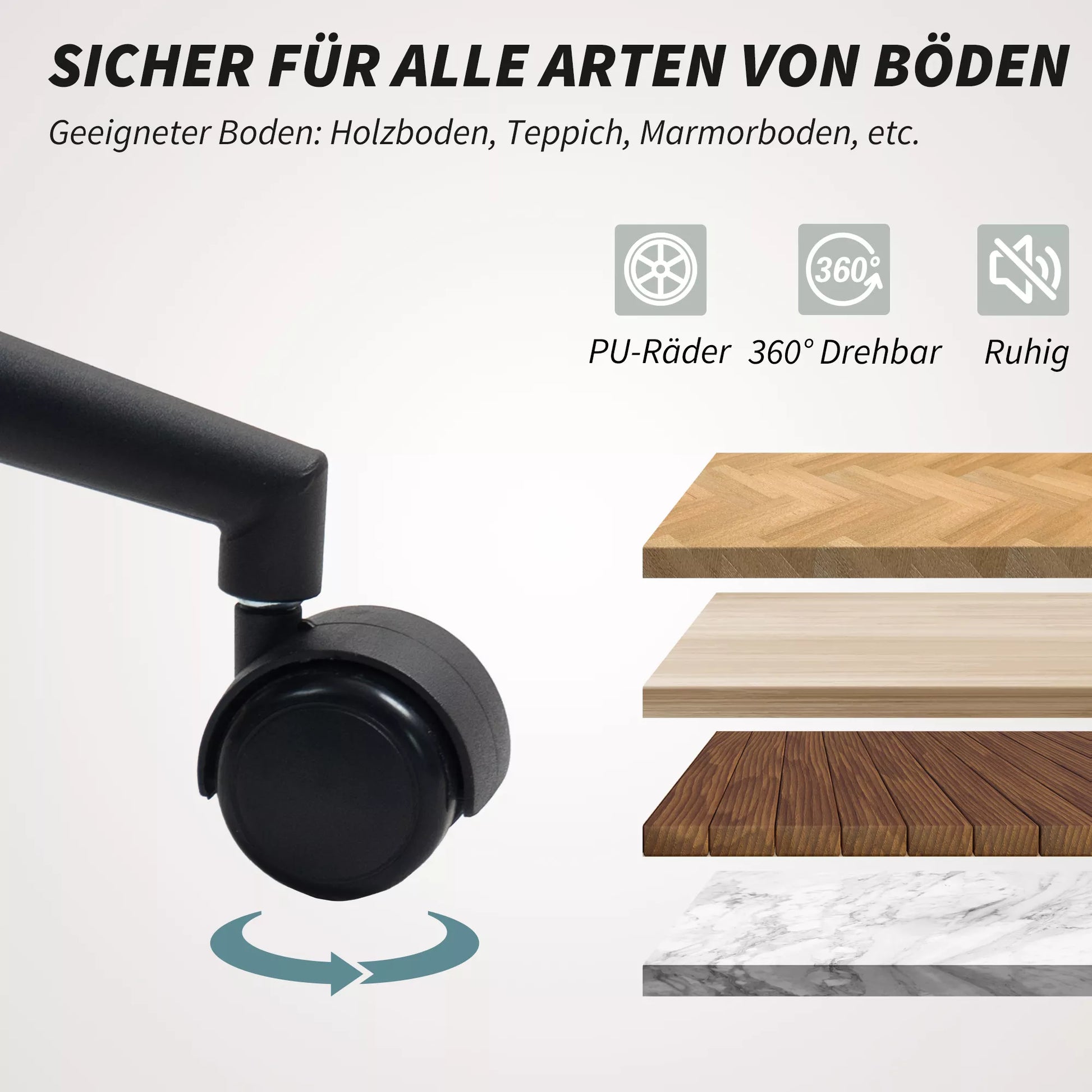 - ✔ 360° besisukantis sėdimoji dalis ir rašomojo stalo kėdės ratukai leidžia lengvai judėti įvairiomis grindimis