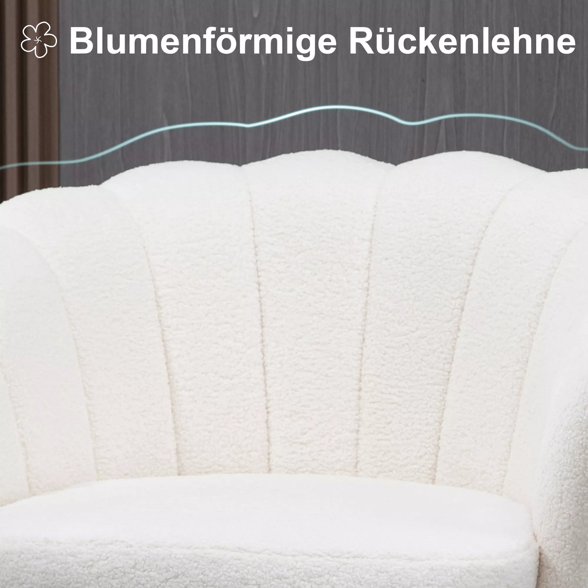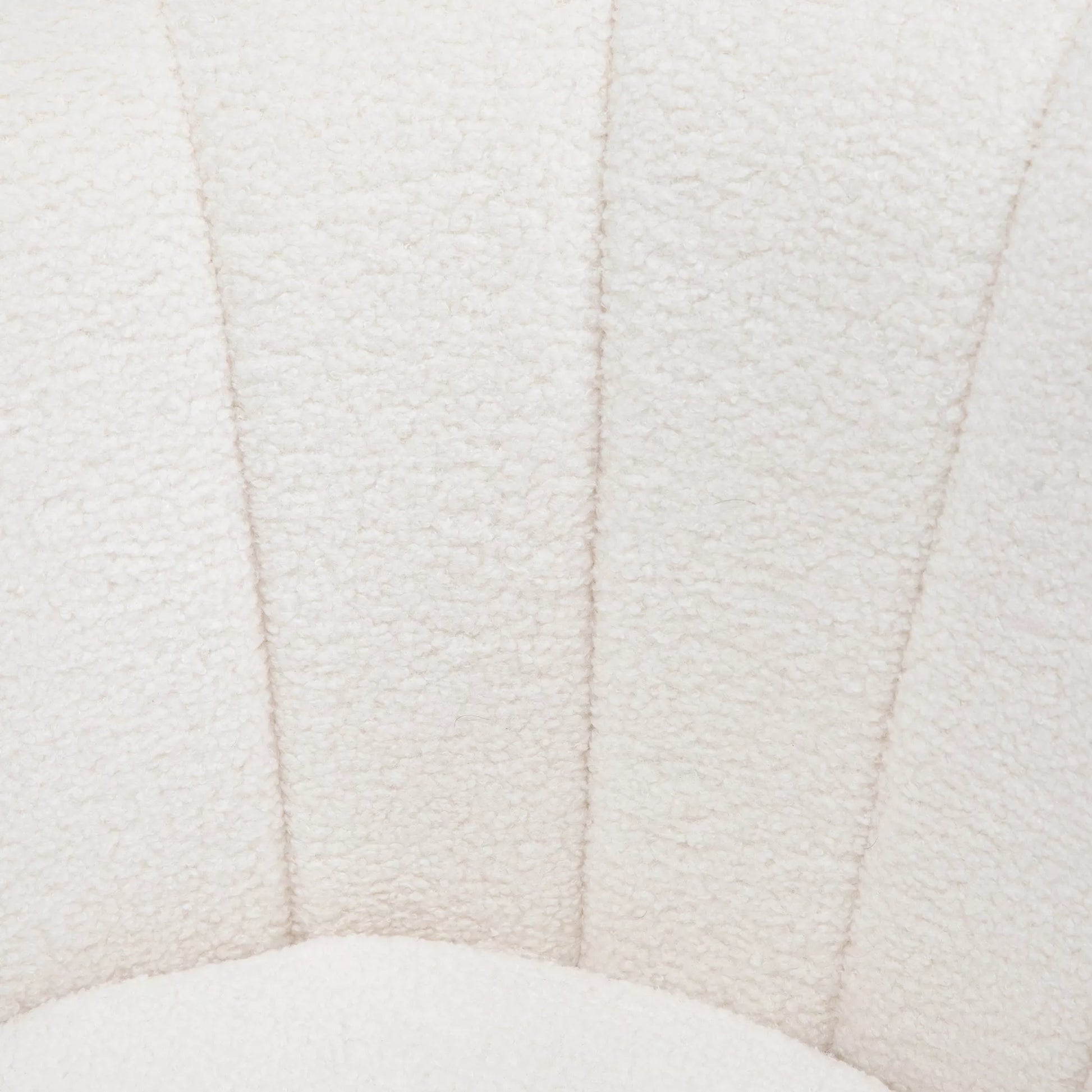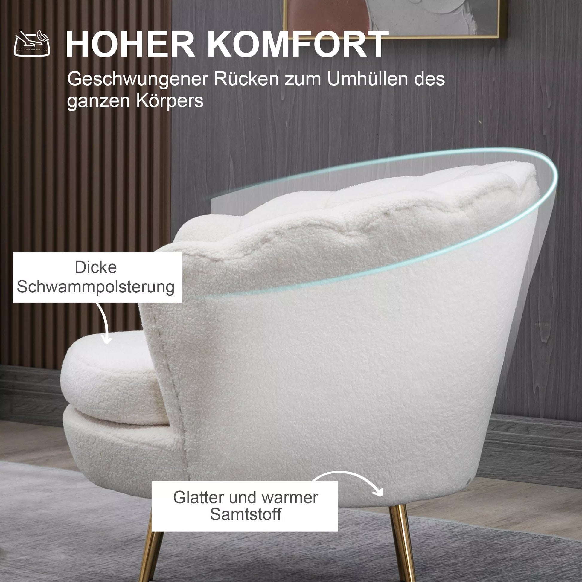 Minkštas fotelis kriauklių formos, poilsio fotelis, atsipalaidavimo fotelis, metalinės aukso spalvos kojelės, 79 ilgis x 77 plotis x 77 aukštis cm, Baltas