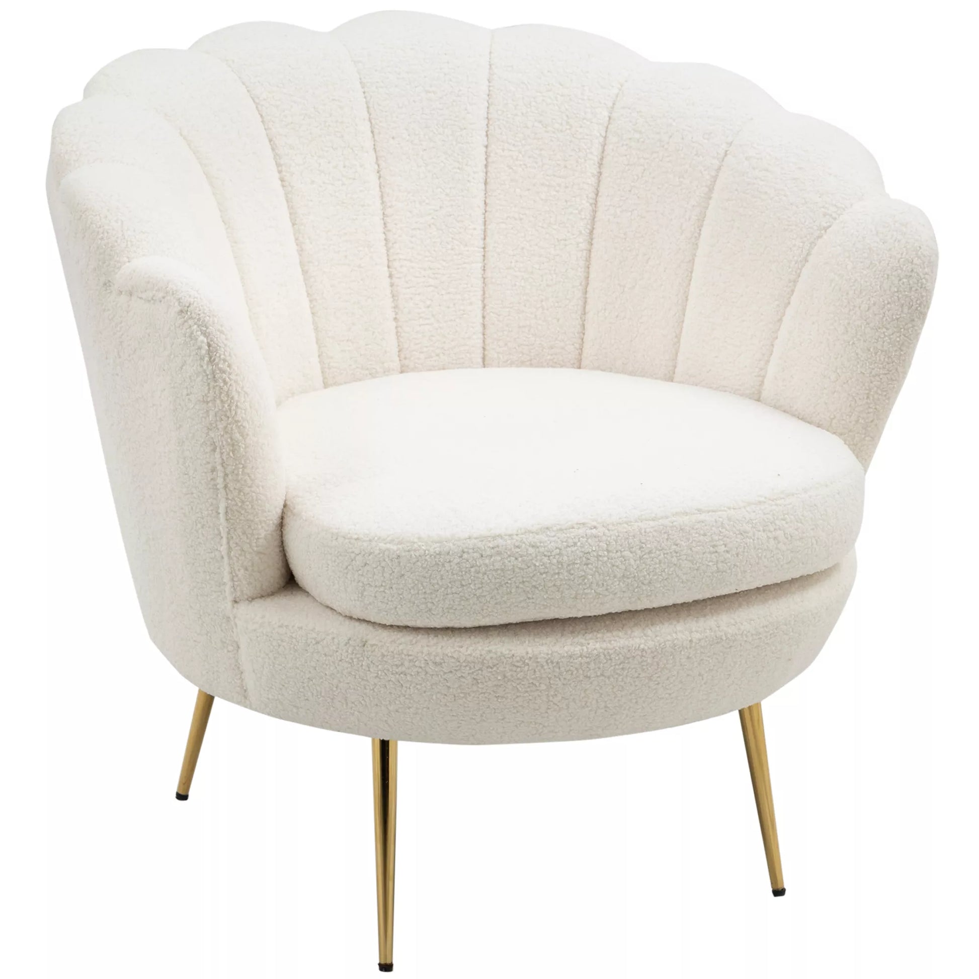 Papuoškite savo interjerą šiuo išskirtiniu kriauklės formos minkštuoju foteliu, stovinčiu ant pasvirusių, plonų, aukso spalvos kojelių. Vienviečio fotelio elegancija ir jaukus komfortas, minkštas baltas audinio apmušalas, sukuria itin malonią atmosferą. Nedvejokite ir praturtinkite savo namus šiuo stilingu, moderniu ir klasikiniu-elegantišku foteliu.