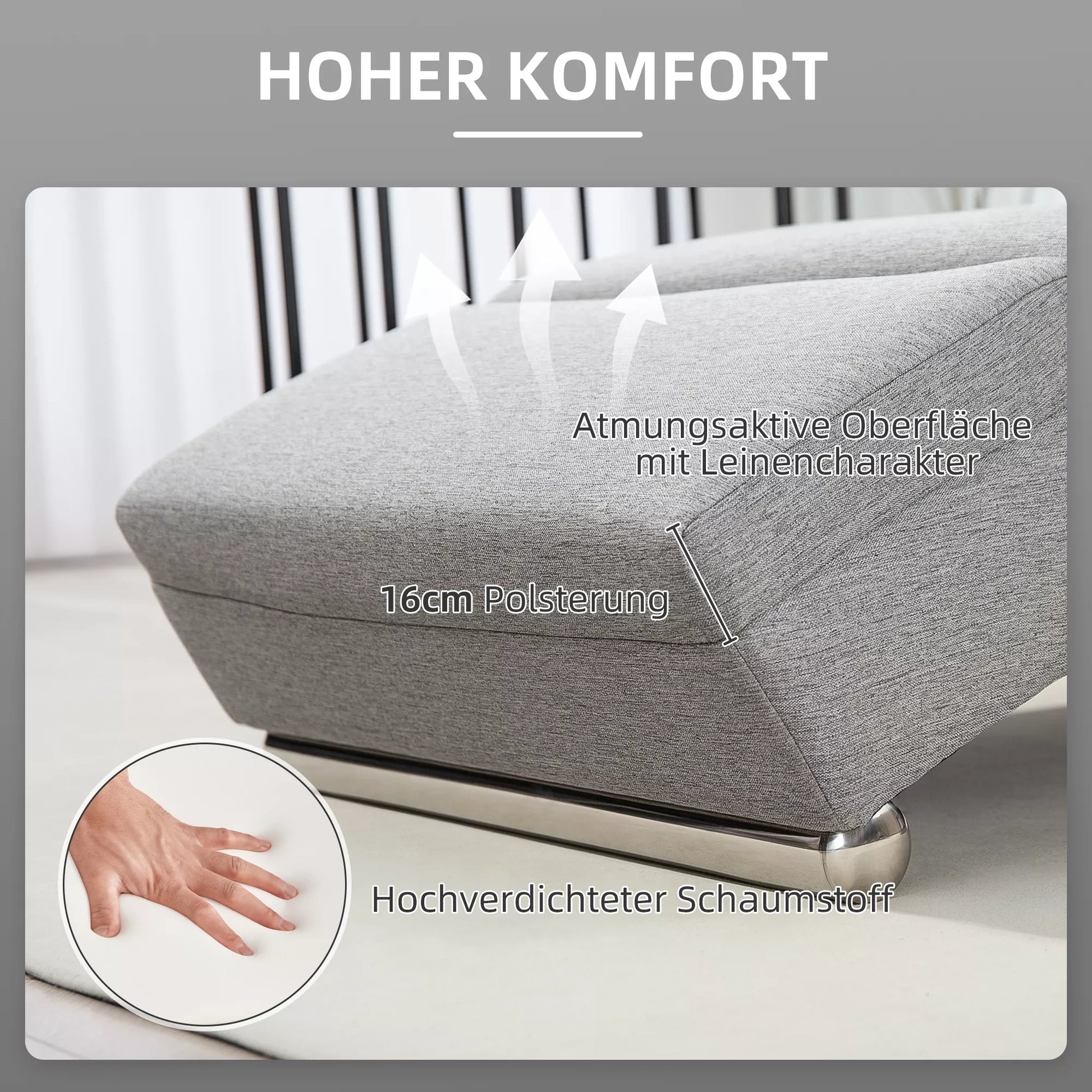 - ✔ Medžiaga: Lininės išvaizdos audinys (100 % poliesteris), putos, plienas