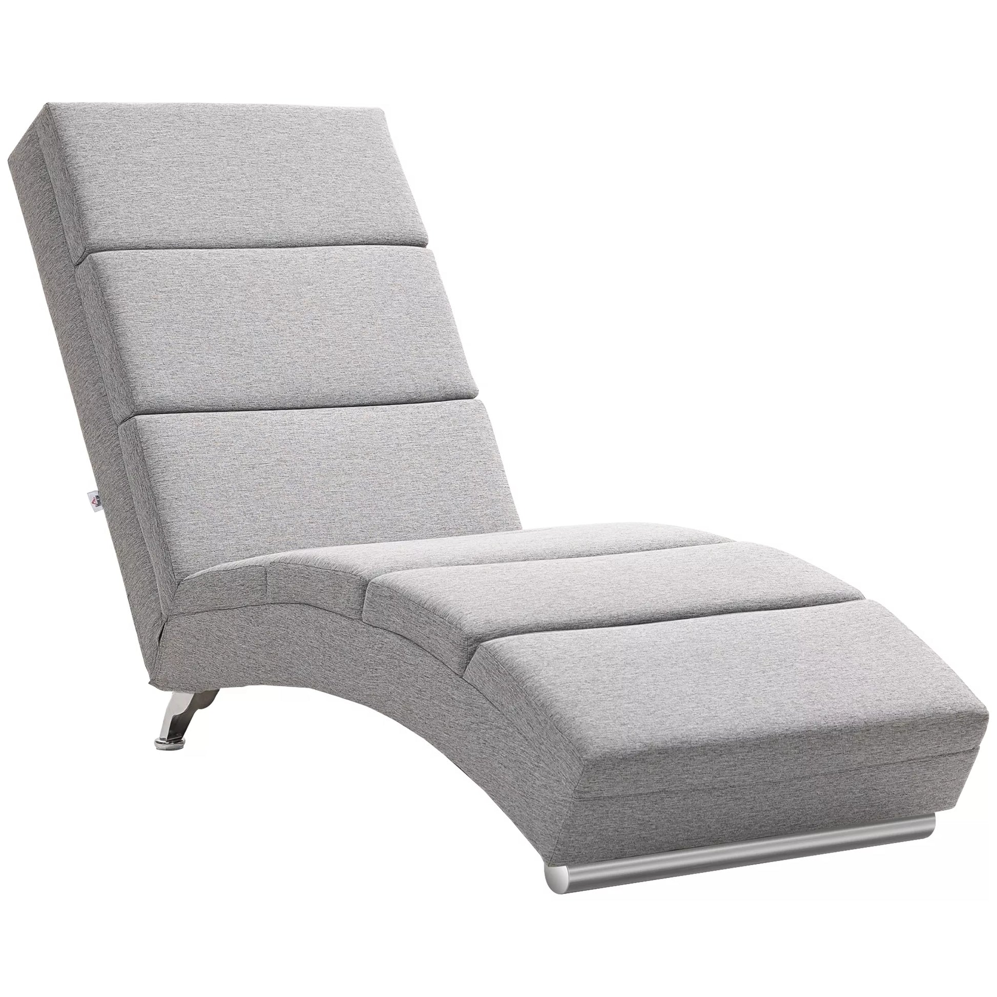 Sviesta kėdė su atlošu, relakso fotelis su plieninėmis kojomis ir storu paminkštinimu, skirta svetainei, miegamajam, šviesiai pilka