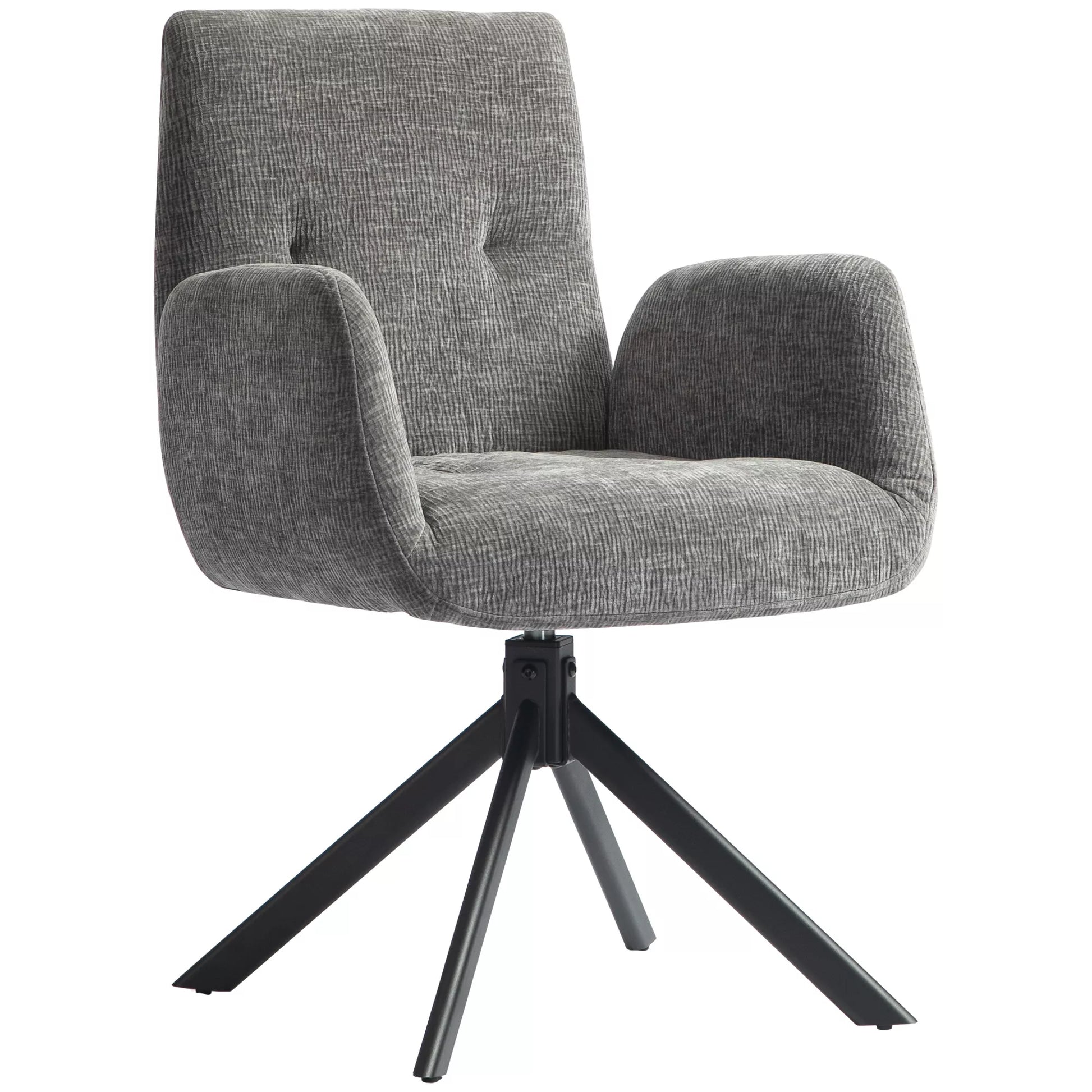 Tamsiai pilkas, modernaus dizaino, sukamasis akcentinis fotelis, iki 120 kg svorio
