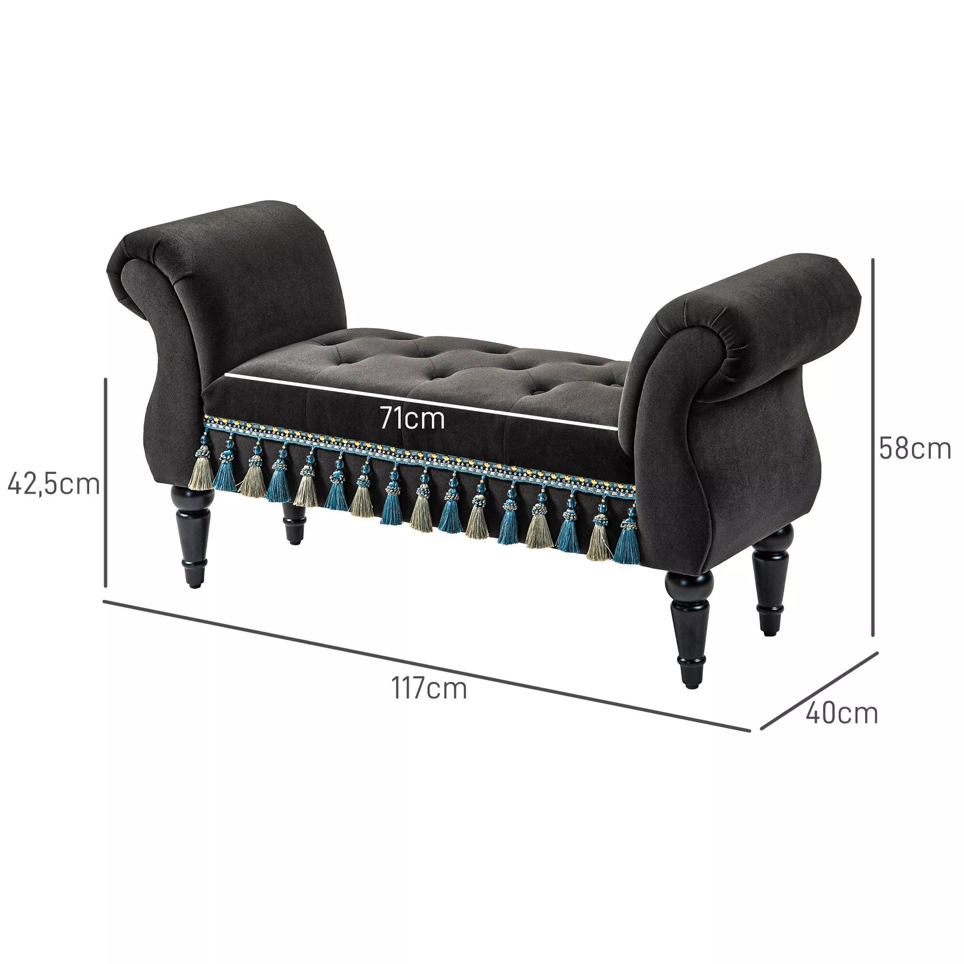 Minkštasuolis, sėdimasis suolas, vintažinis dizainas, iki 150 kg, 117x40x58 cm, tamsiai pilkas
