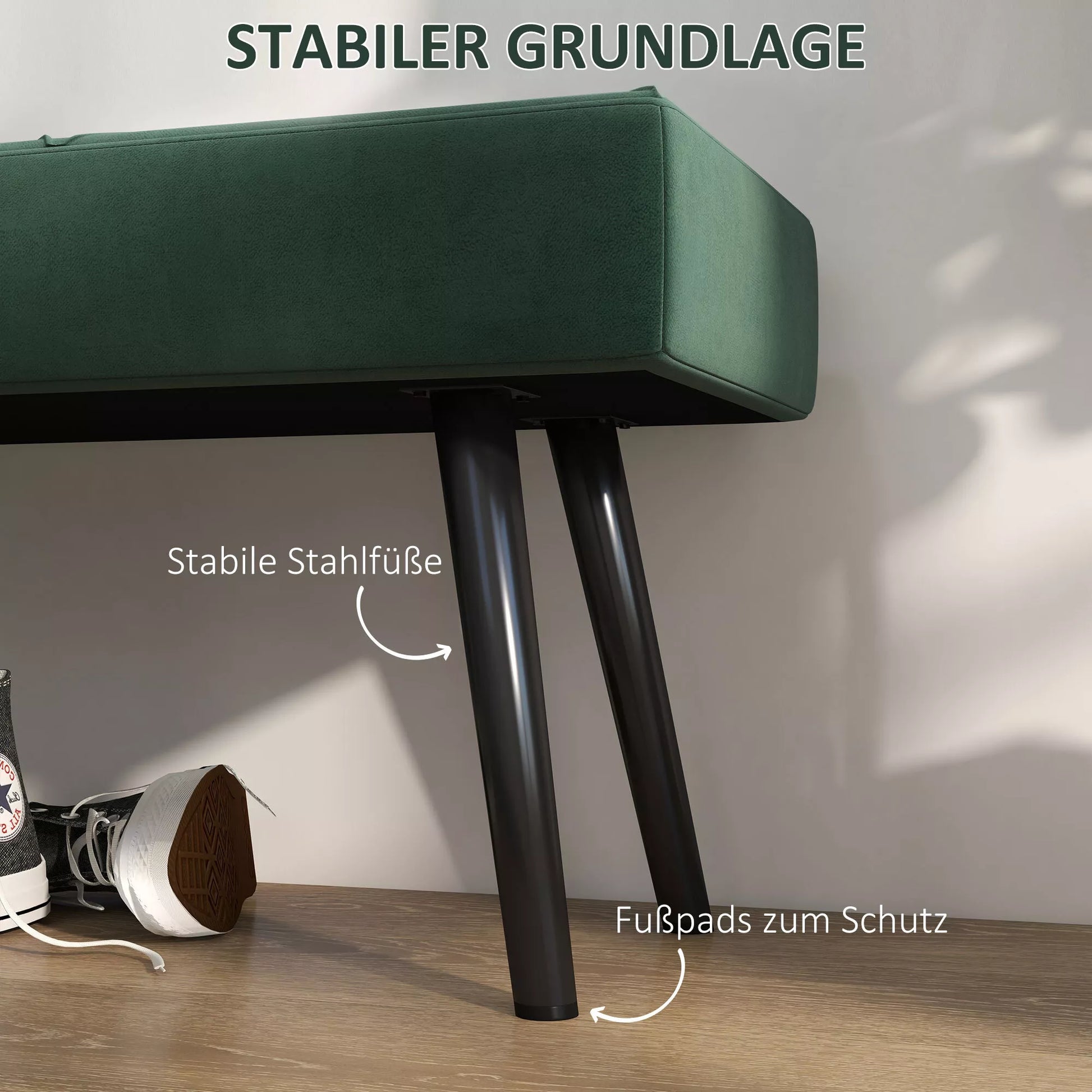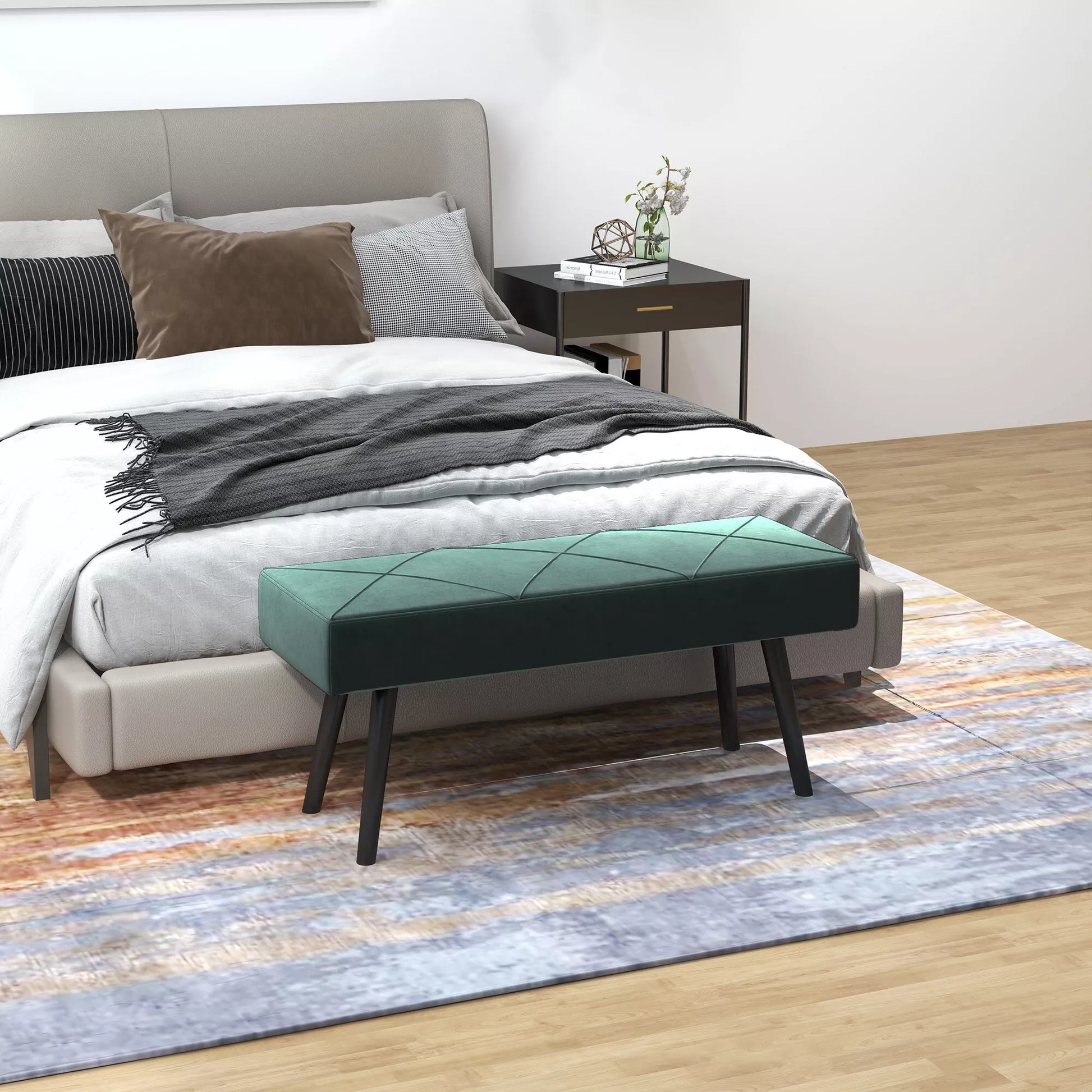 Sėdimasis suoliukas, minkštas suoliukas, suoliukas prie lovos, zomšo išvaizda, 100 x 36 x 45 cm, žalias