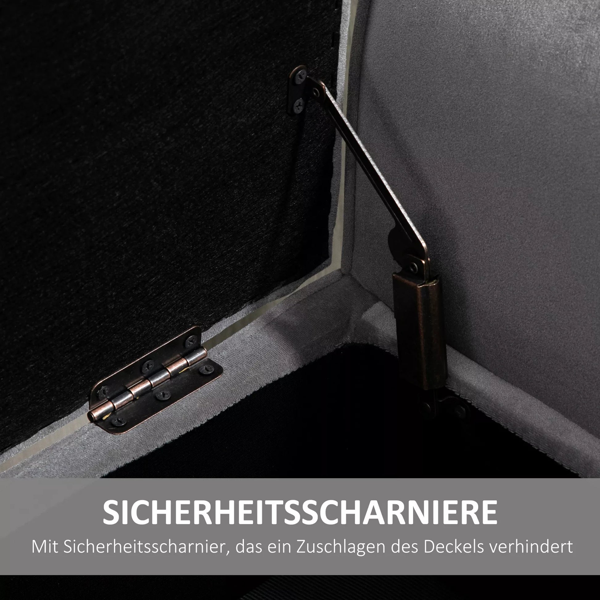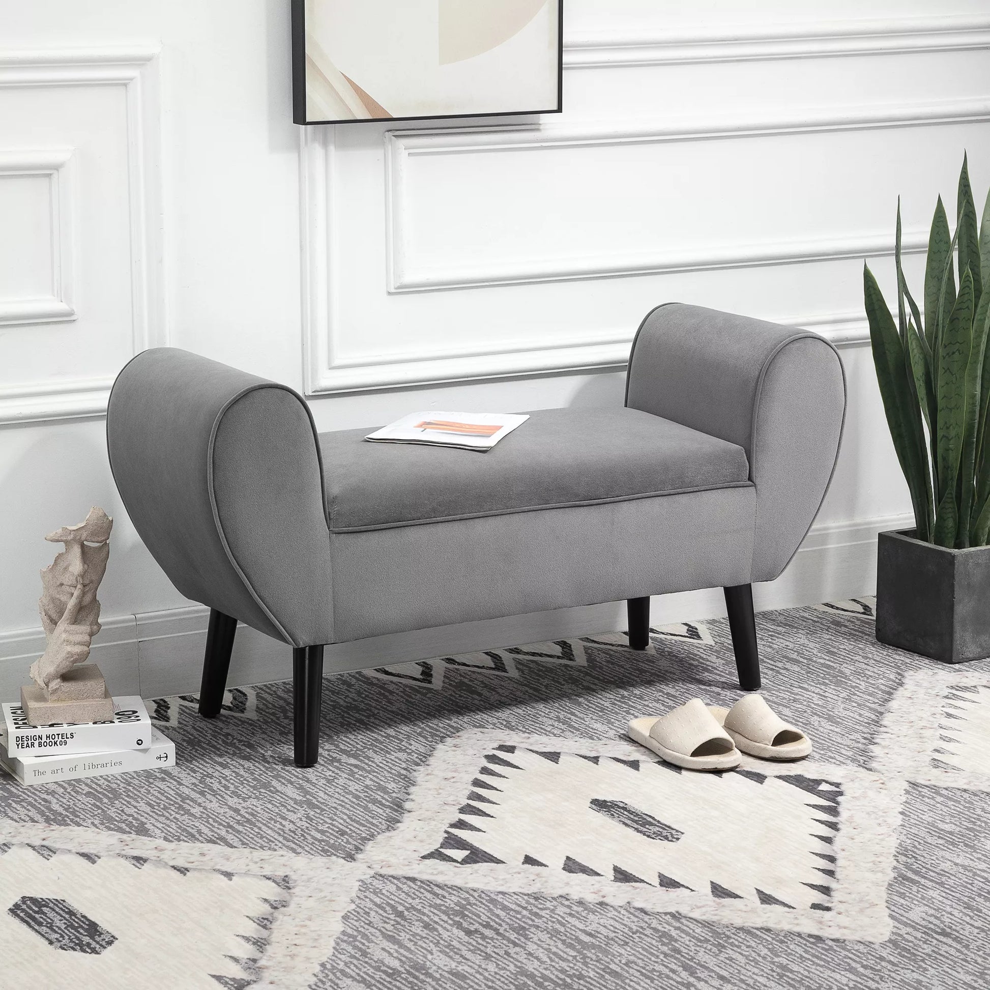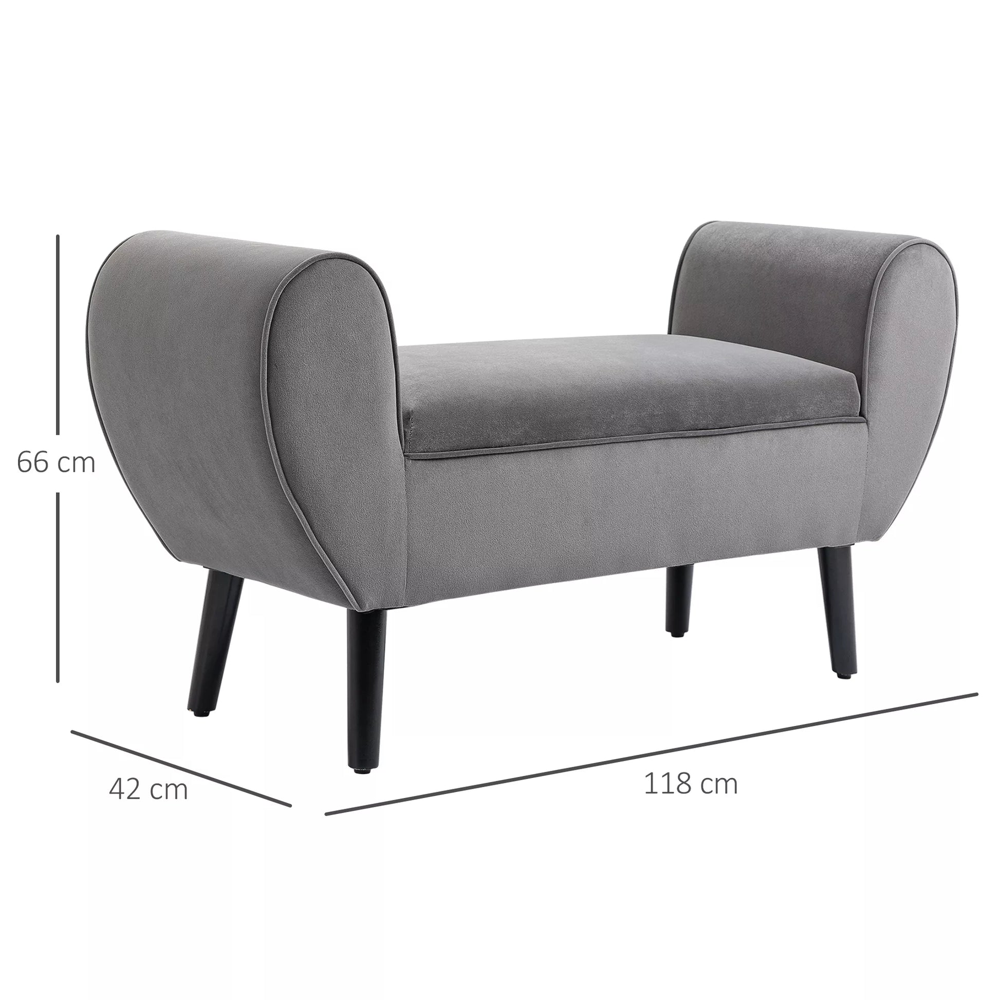 Paminkštintas suoliukas su daiktadėže ir porankiais, skrynios tipo suoliukas prieškambariui, miegamajam, svetainei, 118 x 42 x 66 cm, tamsiai pilkos spalvos