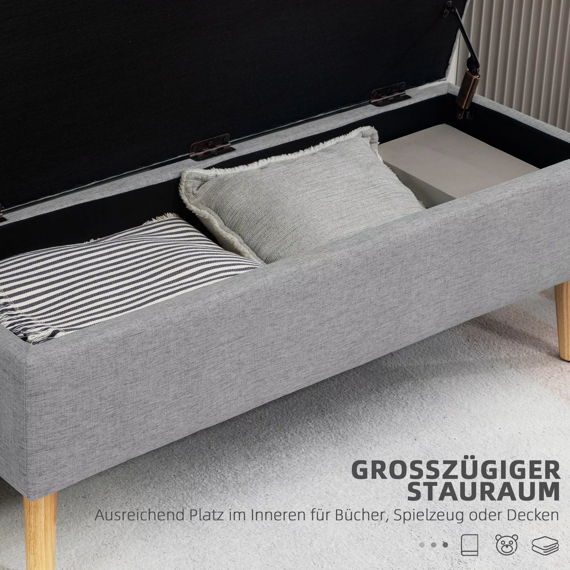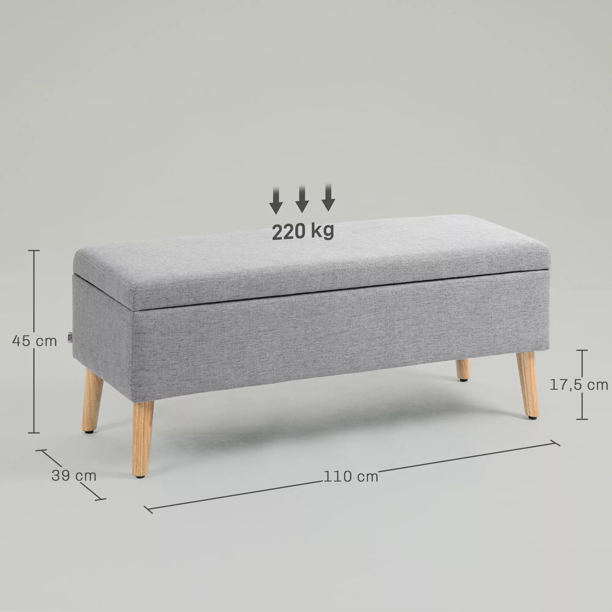 Sėdimoji su daiktadėže, apmušalas su lino imitacija, kaučiuko medienos kojelės, iki 220 kg, 110x39x45cm, pilka