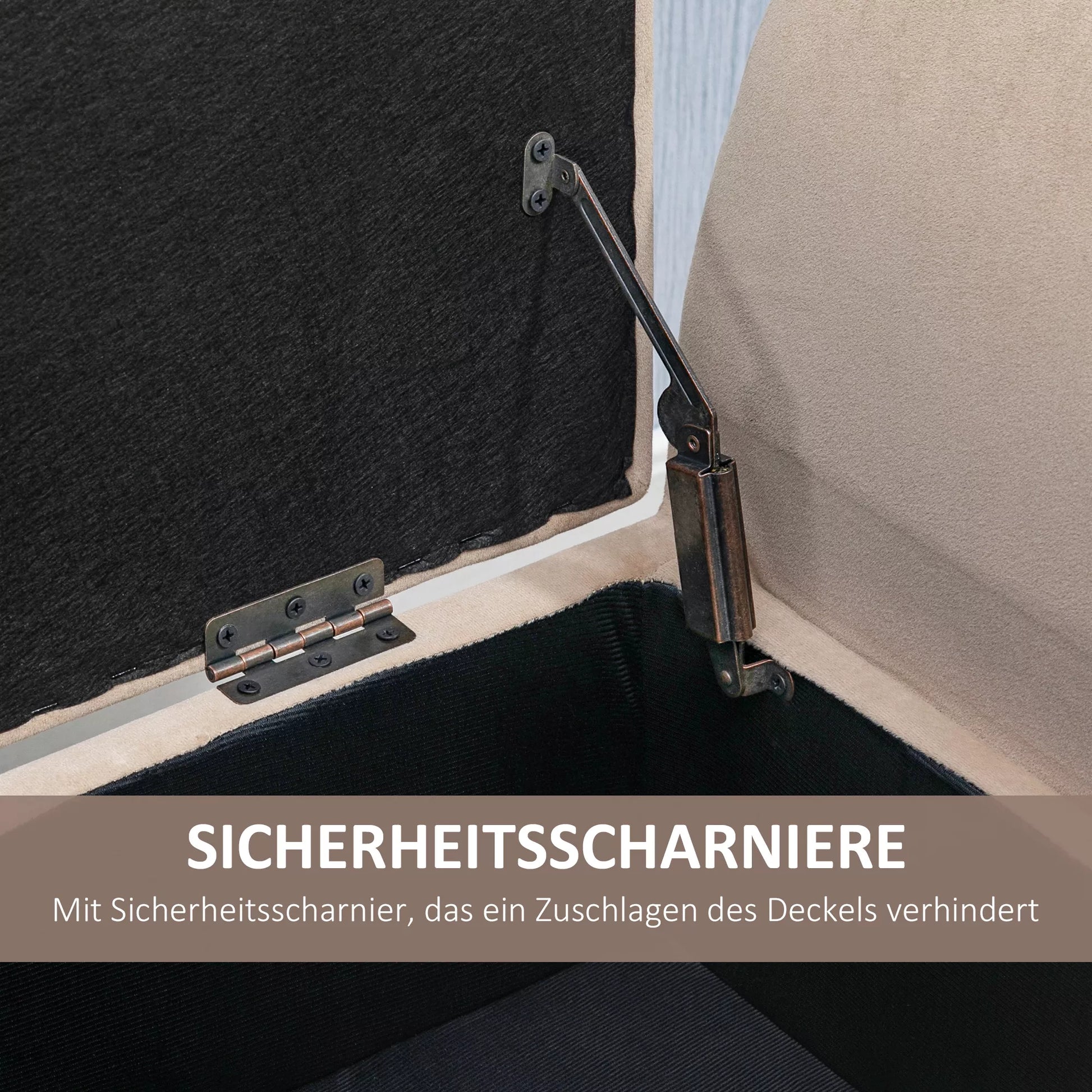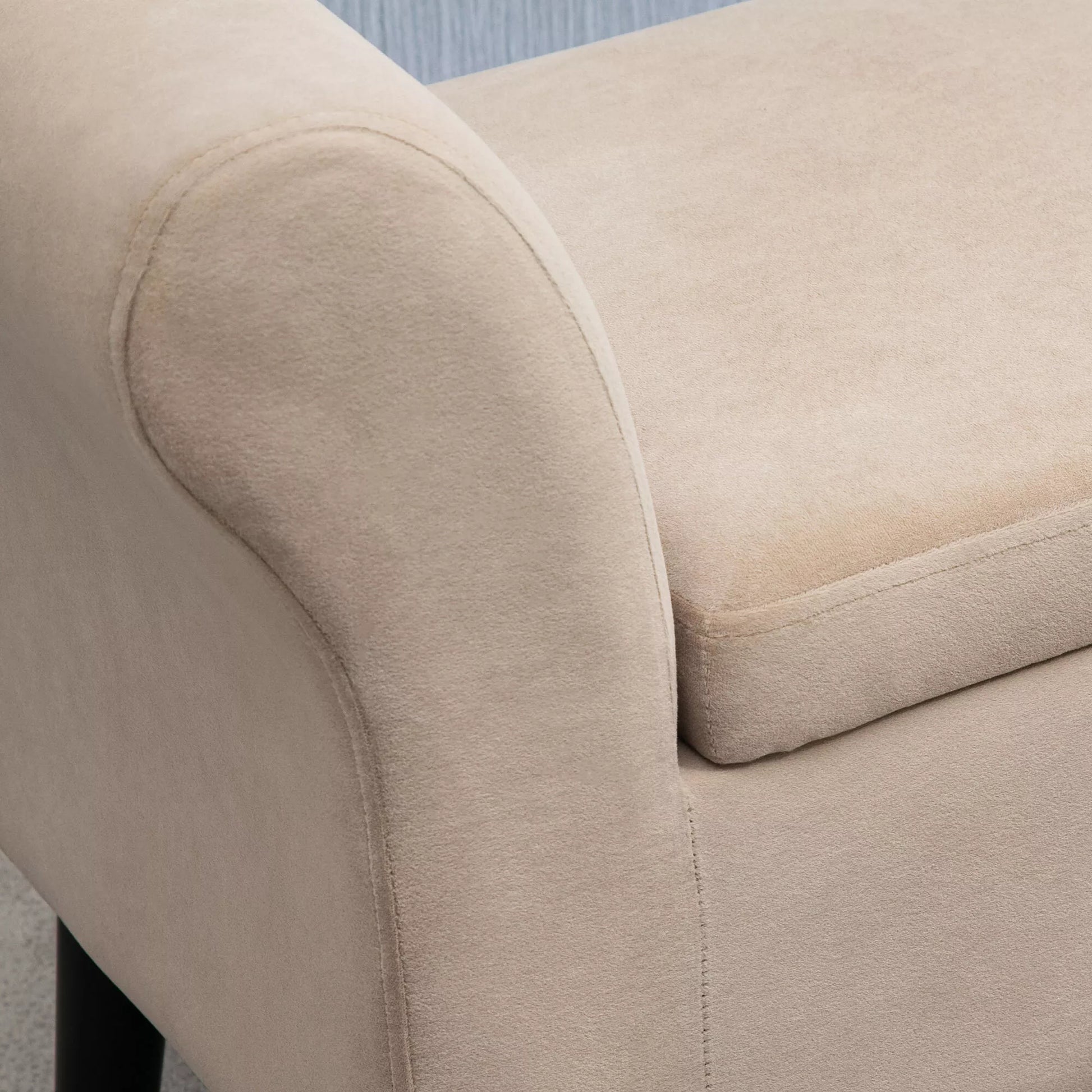 Minkšta banketė su daiktadėže, skrynios tipo banketė su porankiais, 46 cm sėdėjimo aukštis, aksominis poliesteris, 111,5 x 41 x 65 cm, smėlio spalvos