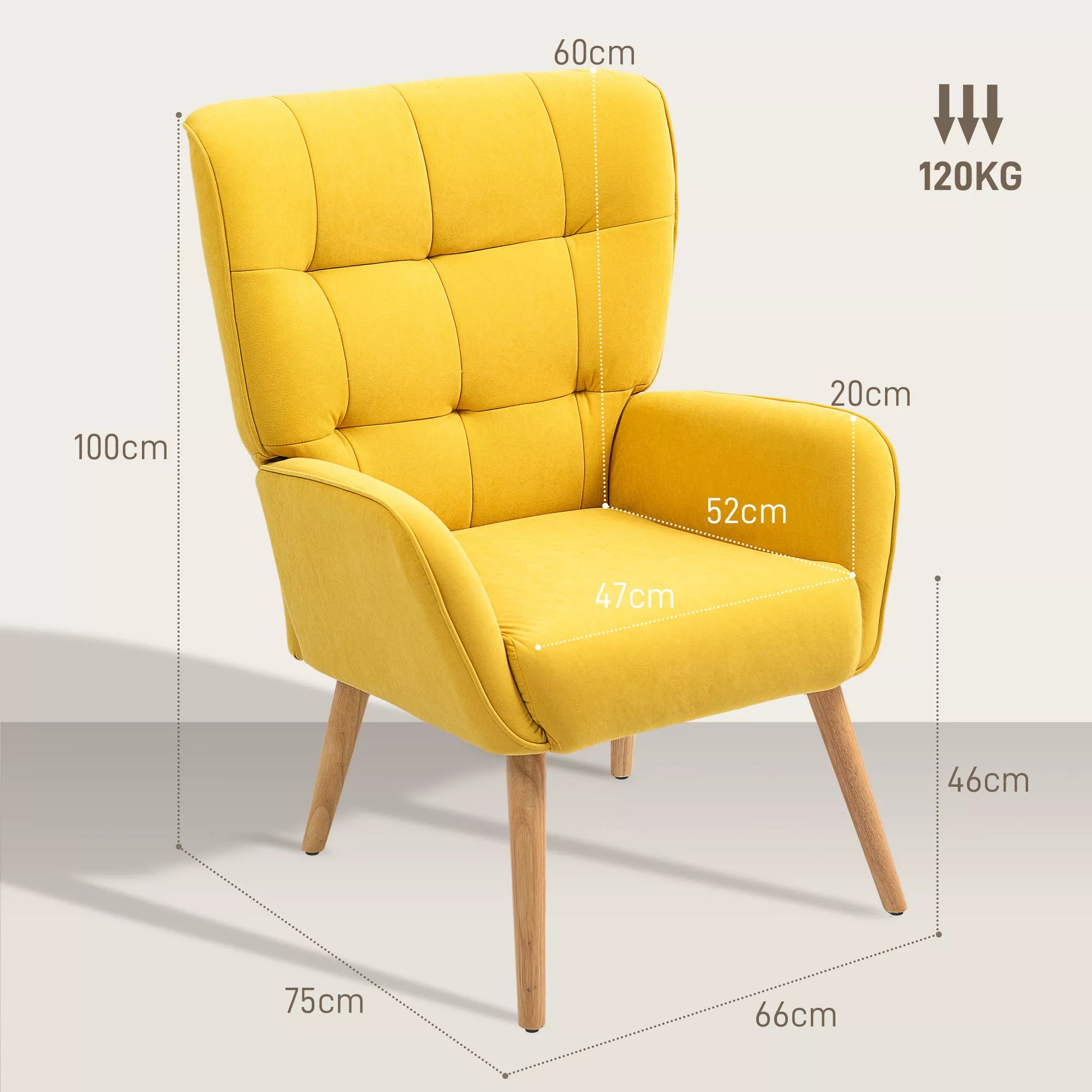 Minkštas fotelis svetainei su dygsniavimu, minkštas aksominės išvaizdos apmušalas, iki 120 kg, geltonas