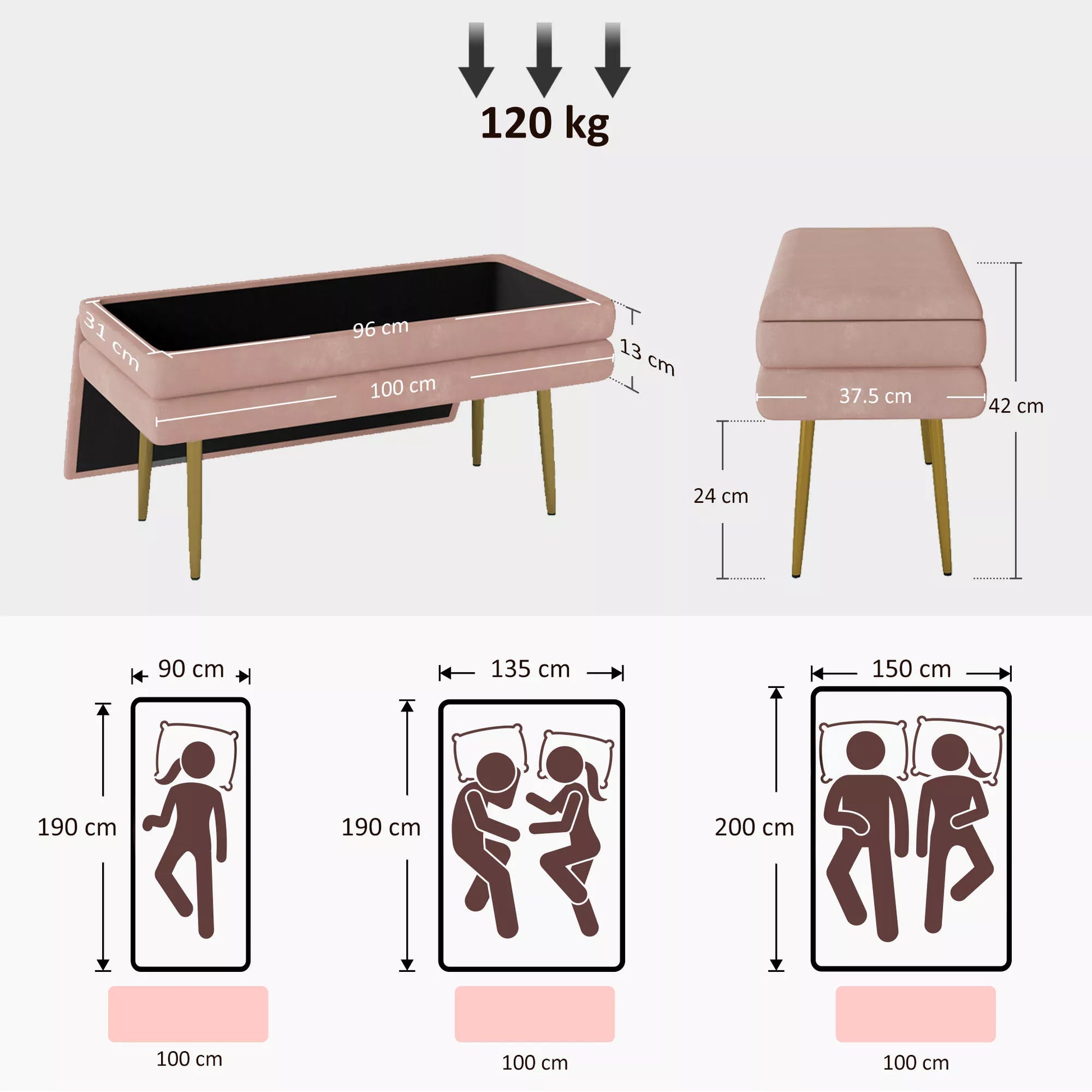 Sėdynė su daiktadėže, plieninė, 100 x 37,5 x 42 cm, rožinė