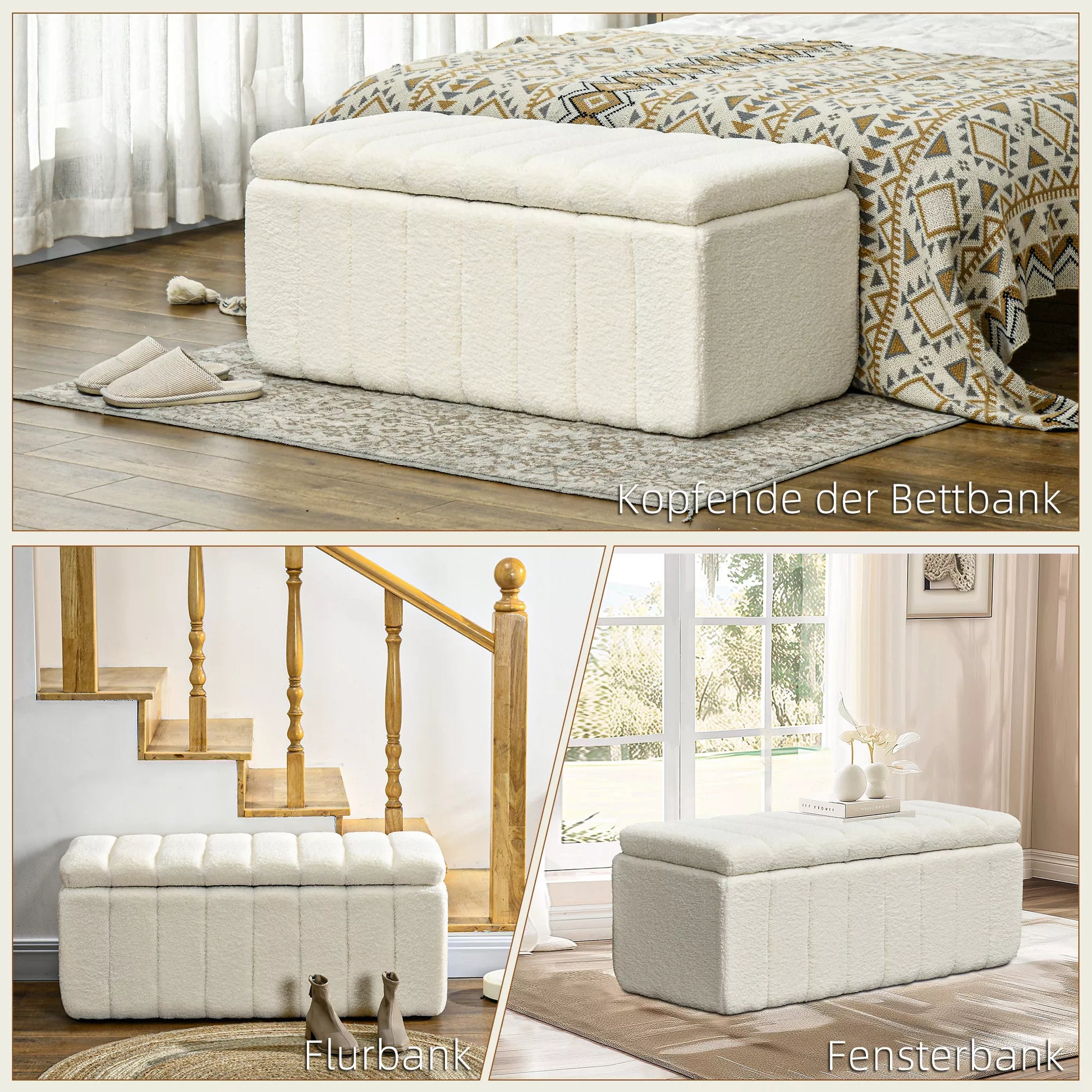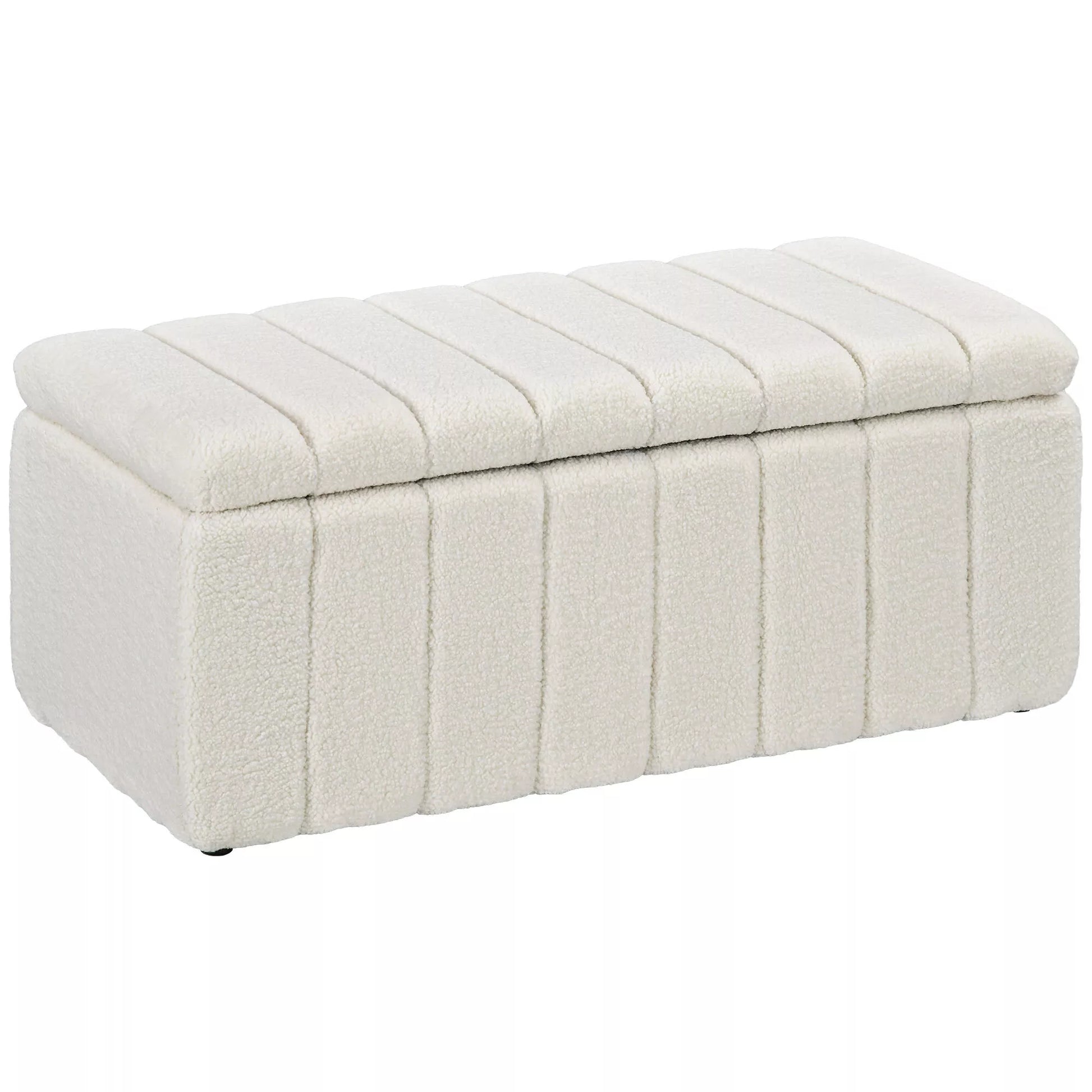 HOMCOM Minkštasuolis su laikymo vieta, atlaiko iki 120kg, 102x45x46cm, kreminės baltos spalvos