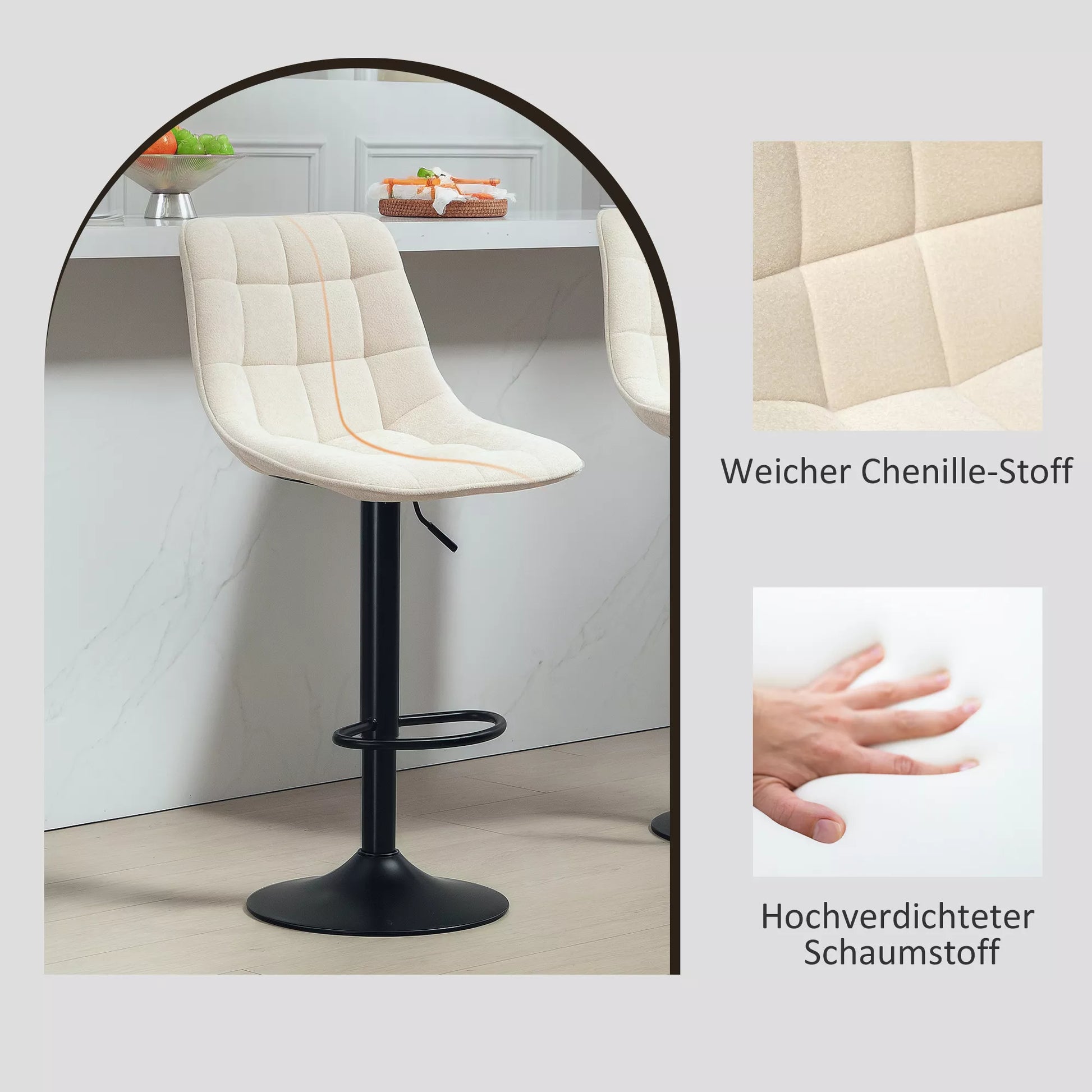 Moderni baro kėdė, 2 vnt. komplektas, su atlošu, reguliuojamo aukščio, su kojų atrama, minkšta apmušalu, smėlio spalvos