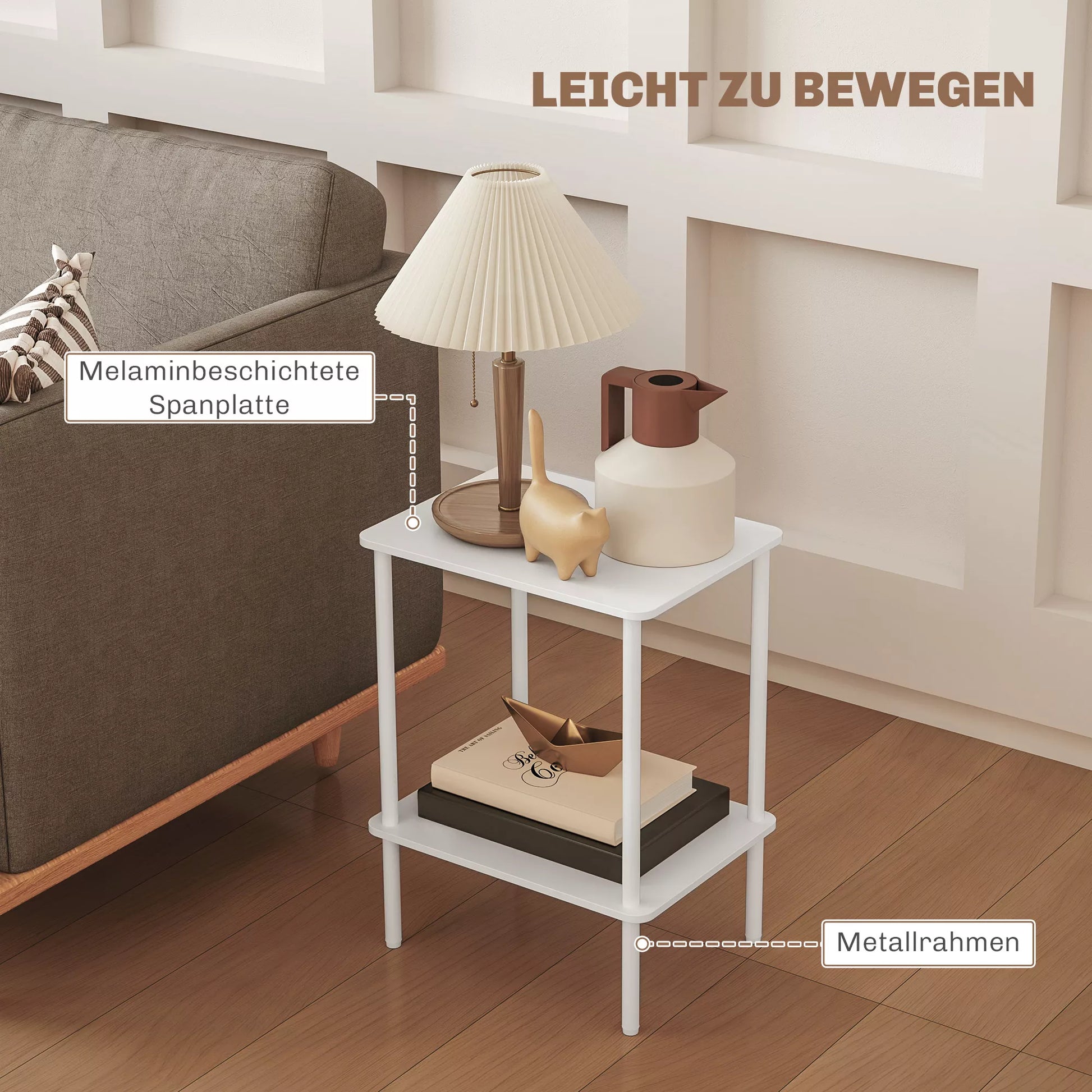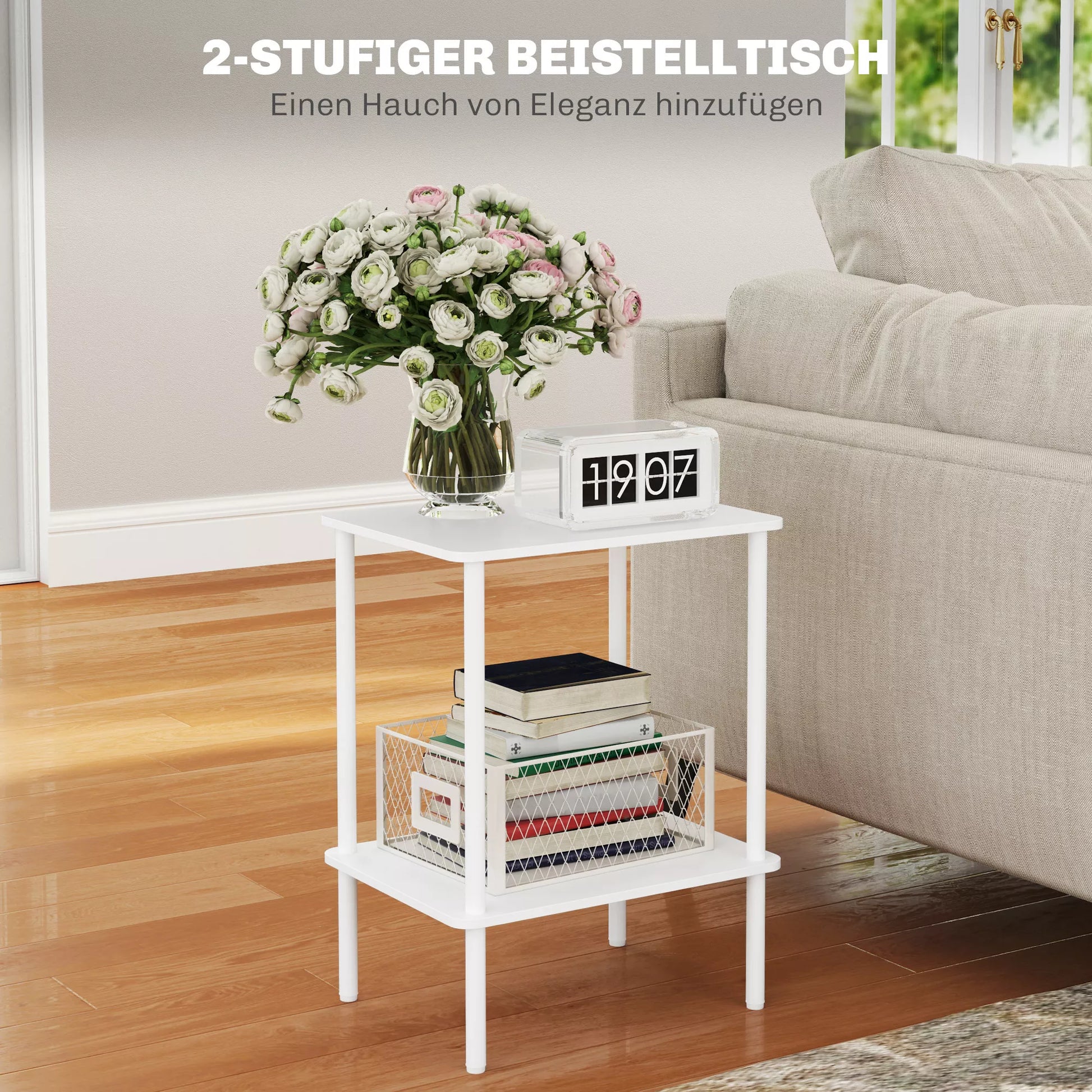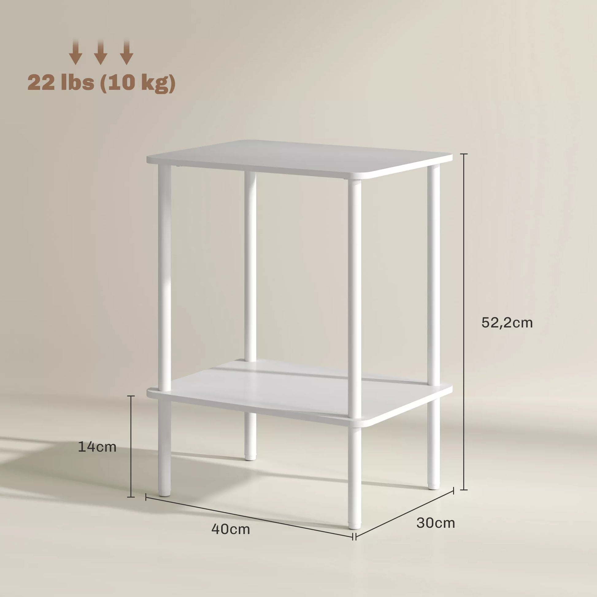 Modernus 2 pakopų staliukas su daiktadėže ir metaliniu rėmu svetainei, miegamajam, baltas