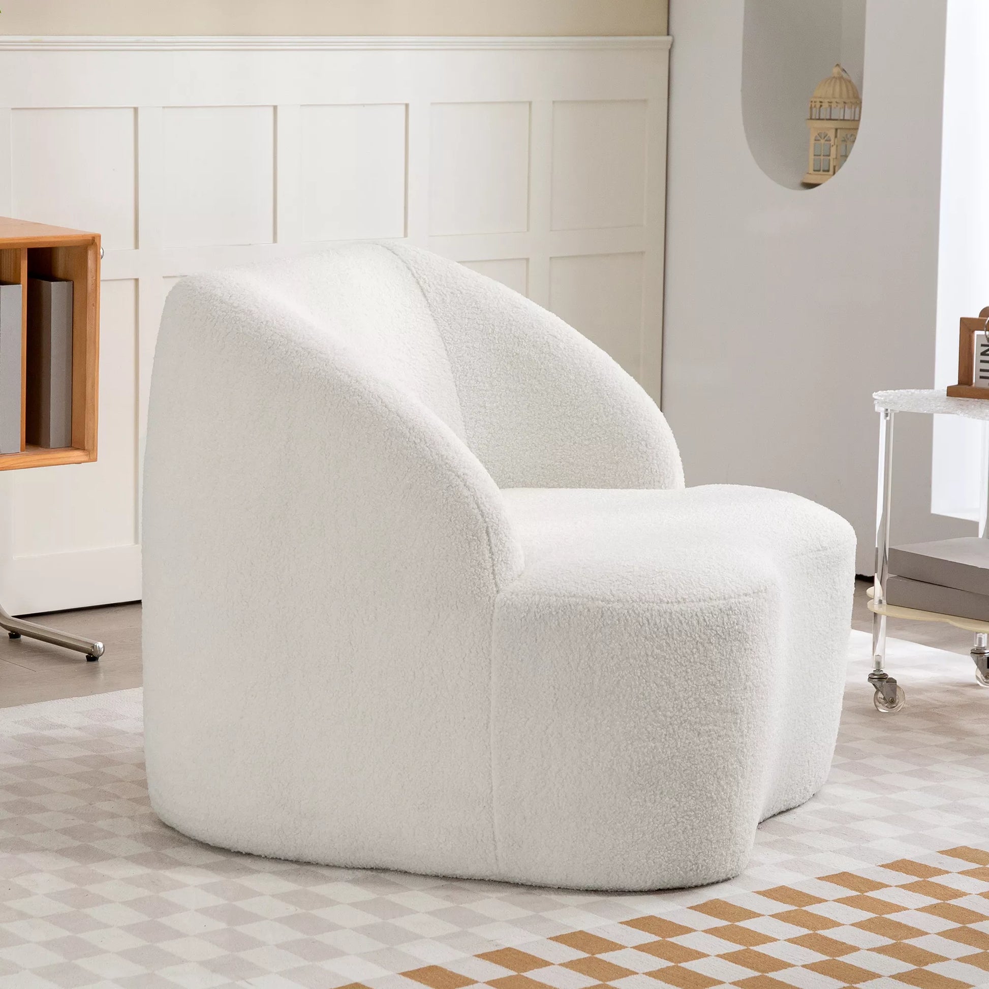 Modernus fotelis su vilnos pamušalu, jaukus minkštas fotelis svetainei, miegamajam, namų biurui, kreminės baltos spalvos