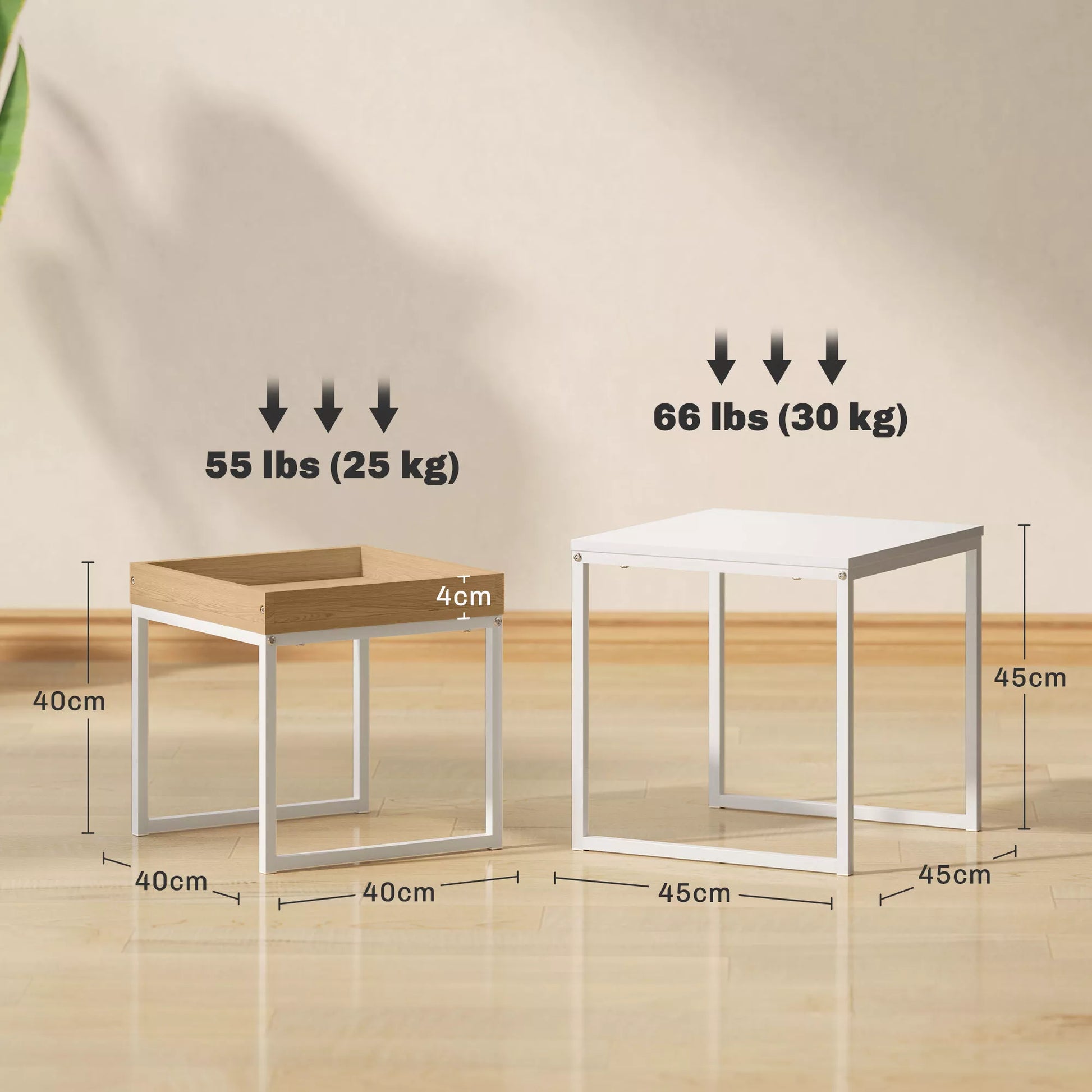Modernus svetainės staliukas, 2 vnt. komplektas, skirtas mažiems kambariams, kvadratinis, MDF, metalas, baltas