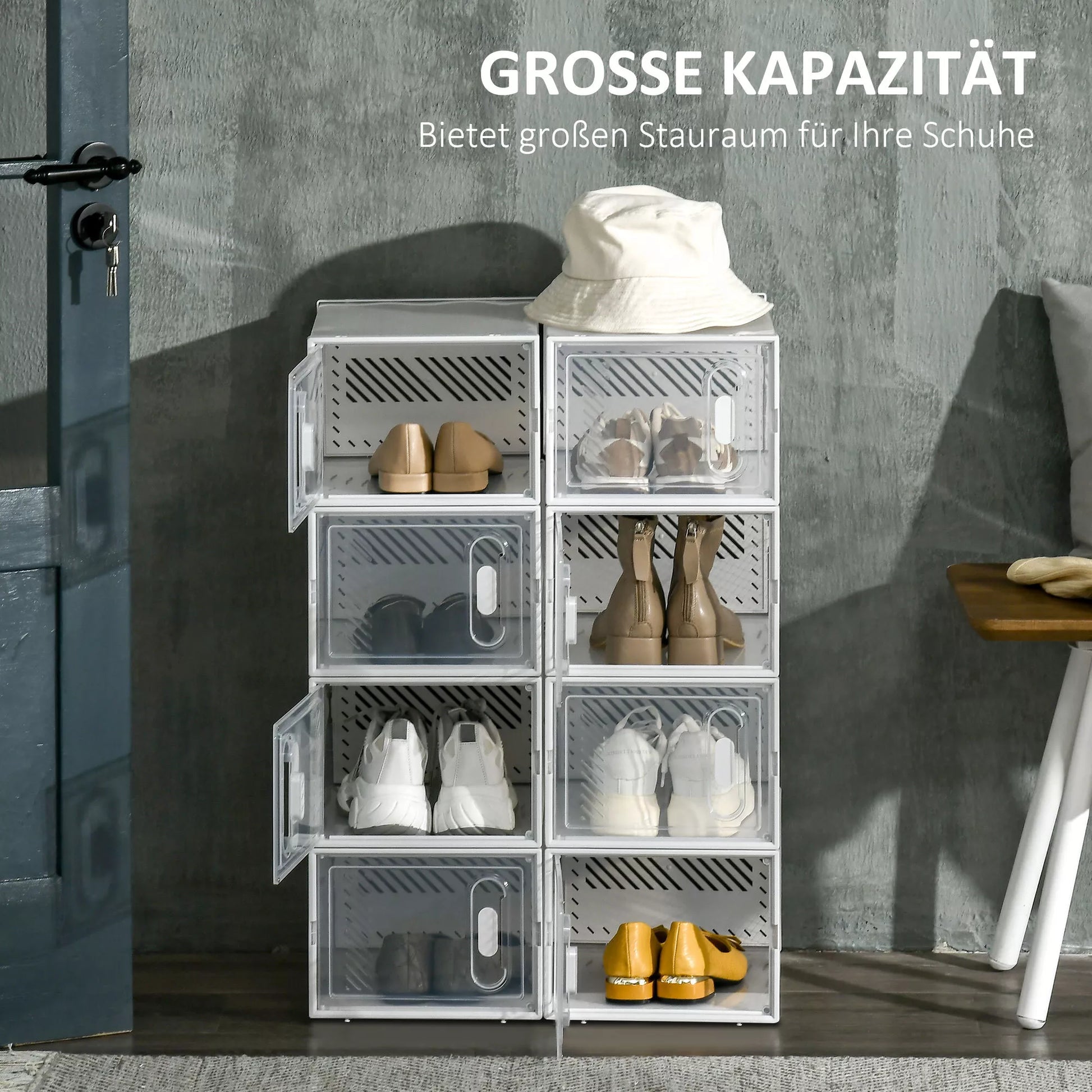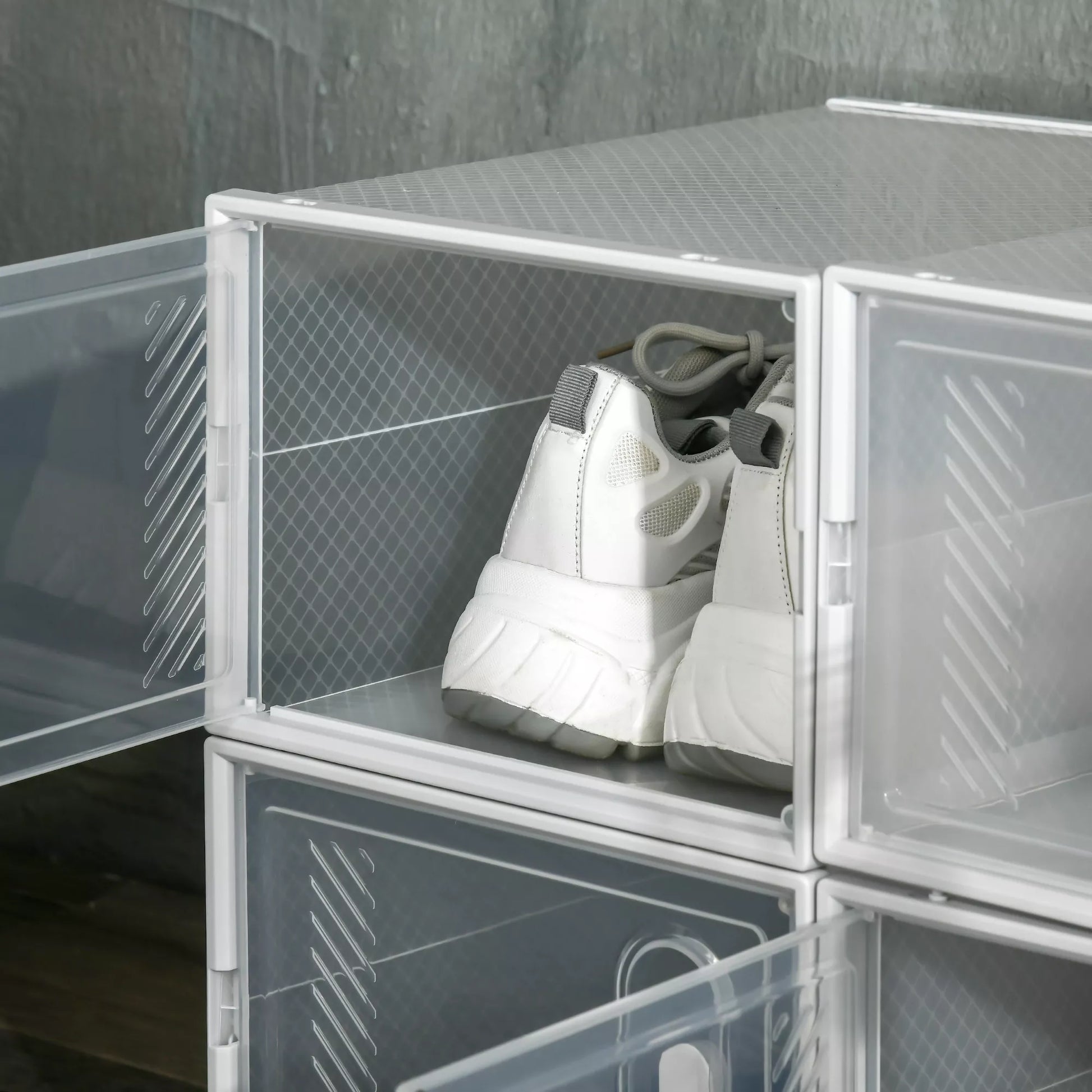 Modulinė lentynų sistema yra žingsniu priekyje bet kokios kitos batų lentynos! Sudaryta iš 8 kubo modulių, ją galima surinkti pagal poreikius ir optimaliai pritaikyti prie jūsų interjero. Tvirta plastikinė pastatomoji lentyna yra itin ilgaamžė ir turi praktiškas ventiliacijos angas. Dėl permatomos medžiagos visada išlaikysite savo kolekcijos apžvalgą. Žinoma, spintelę galite naudoti ir žaislams, knygoms, skalbiniams ir kt. laikyti.