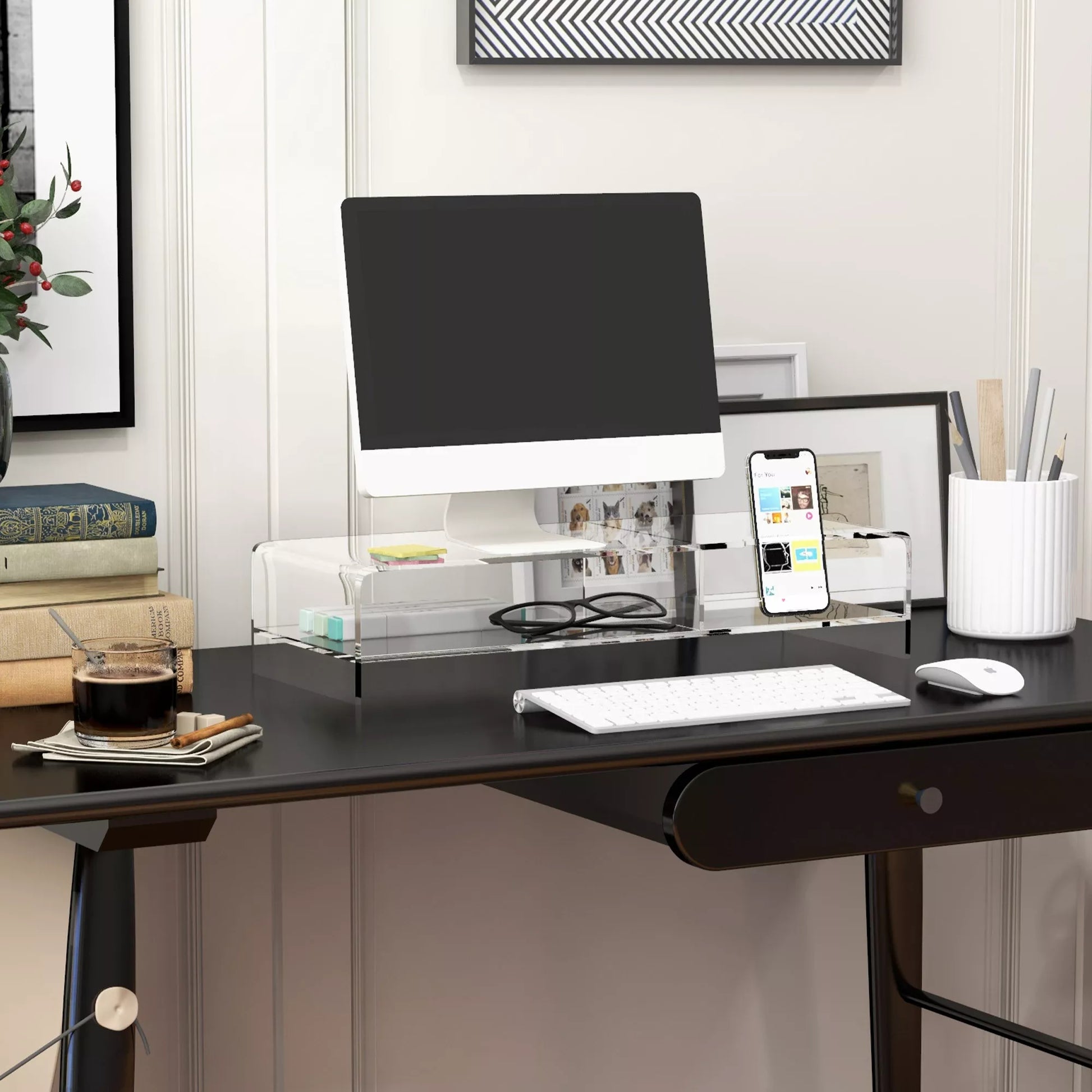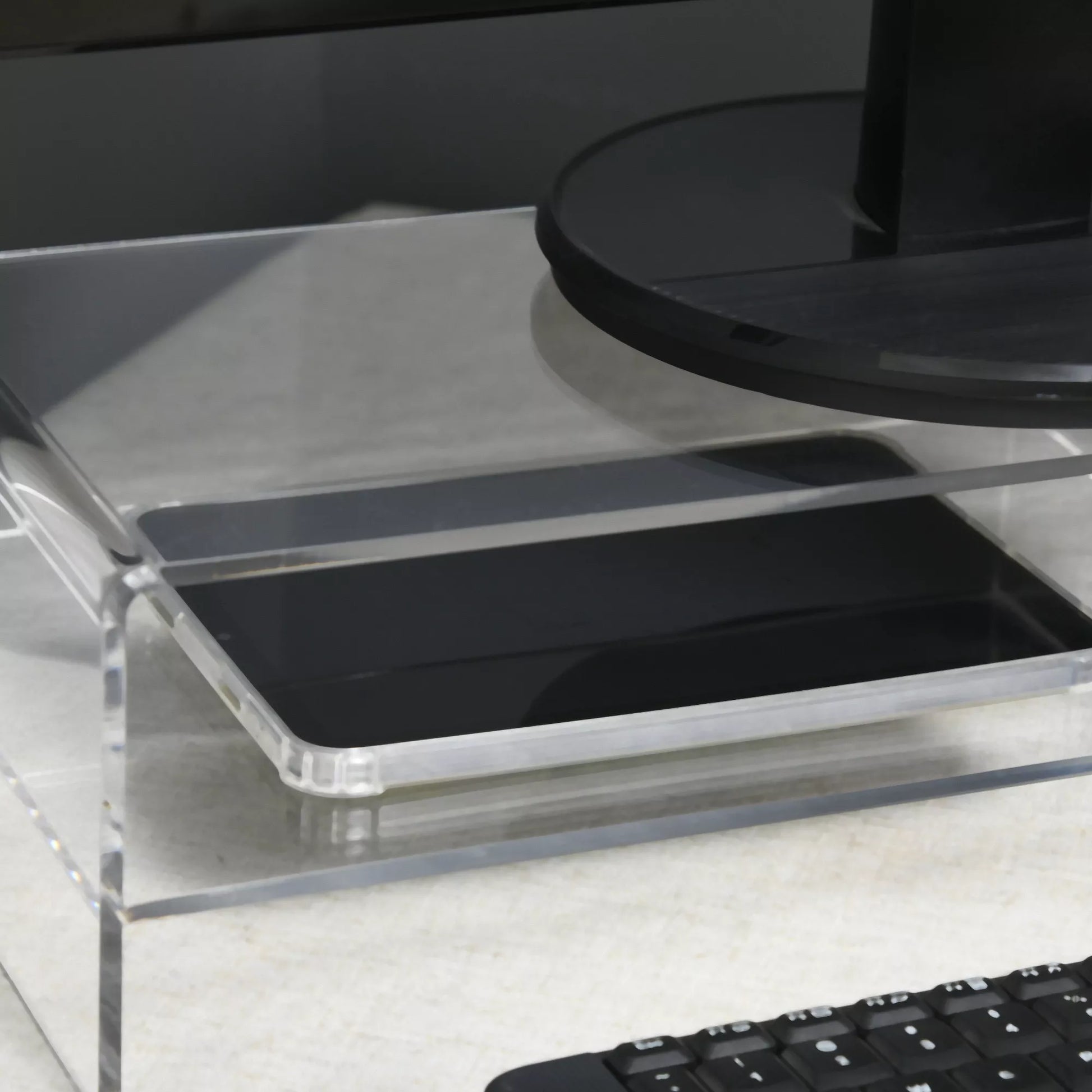 Skaidrus monitoriaus stovas su klaviatūros dėklu, 2 pakopų, akrilinis, tinka monitoriams iki 24 colių, matmenys 50,8 x 19 x 12 cm