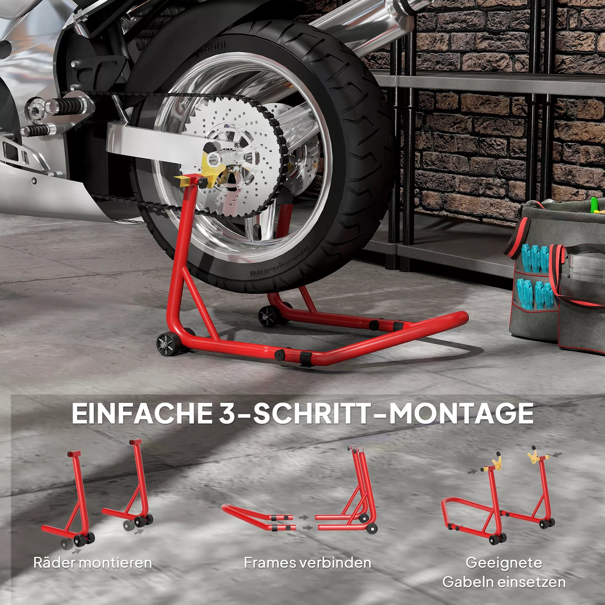 Motociklo stovas priekiniam/galiniam ratui, montavimo stovas, keltuvas iki 544 kg, plienas, raudonas