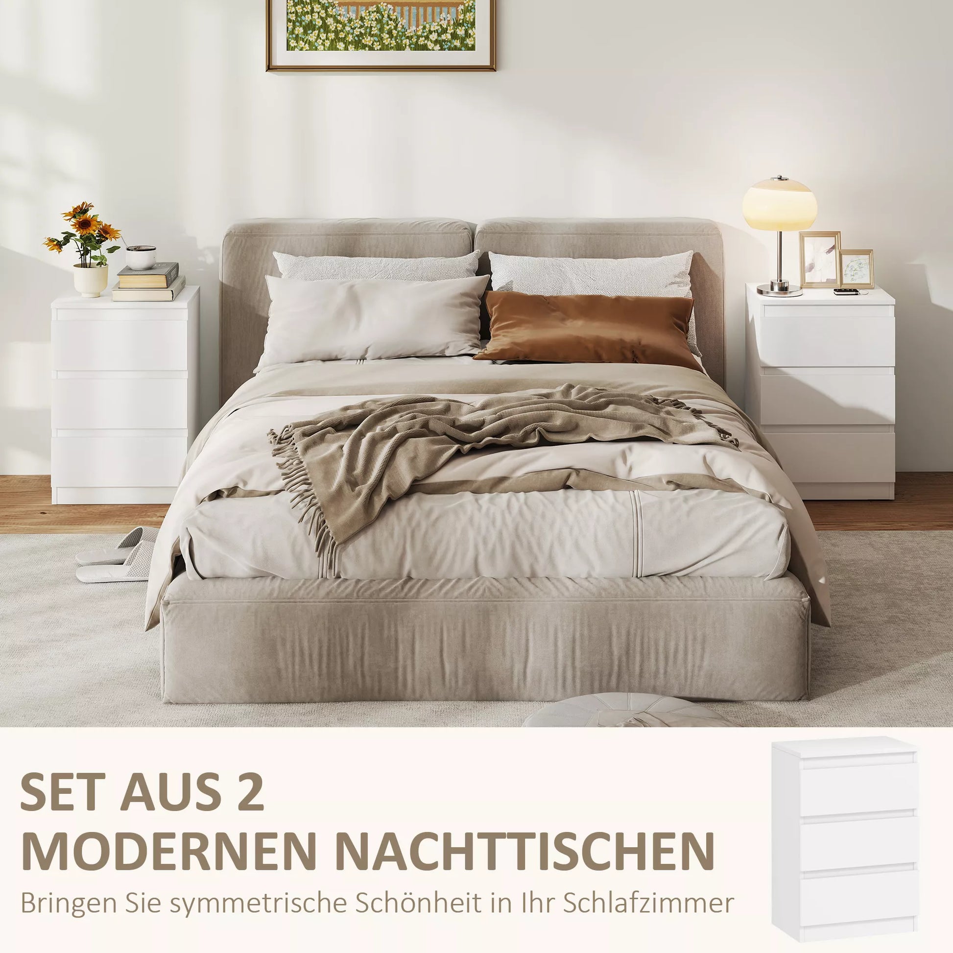 Naktiniai staleliai 2 vnt. komplekte, 3 stalčiai, beranktis dizainas, medžio imitacijos, balti