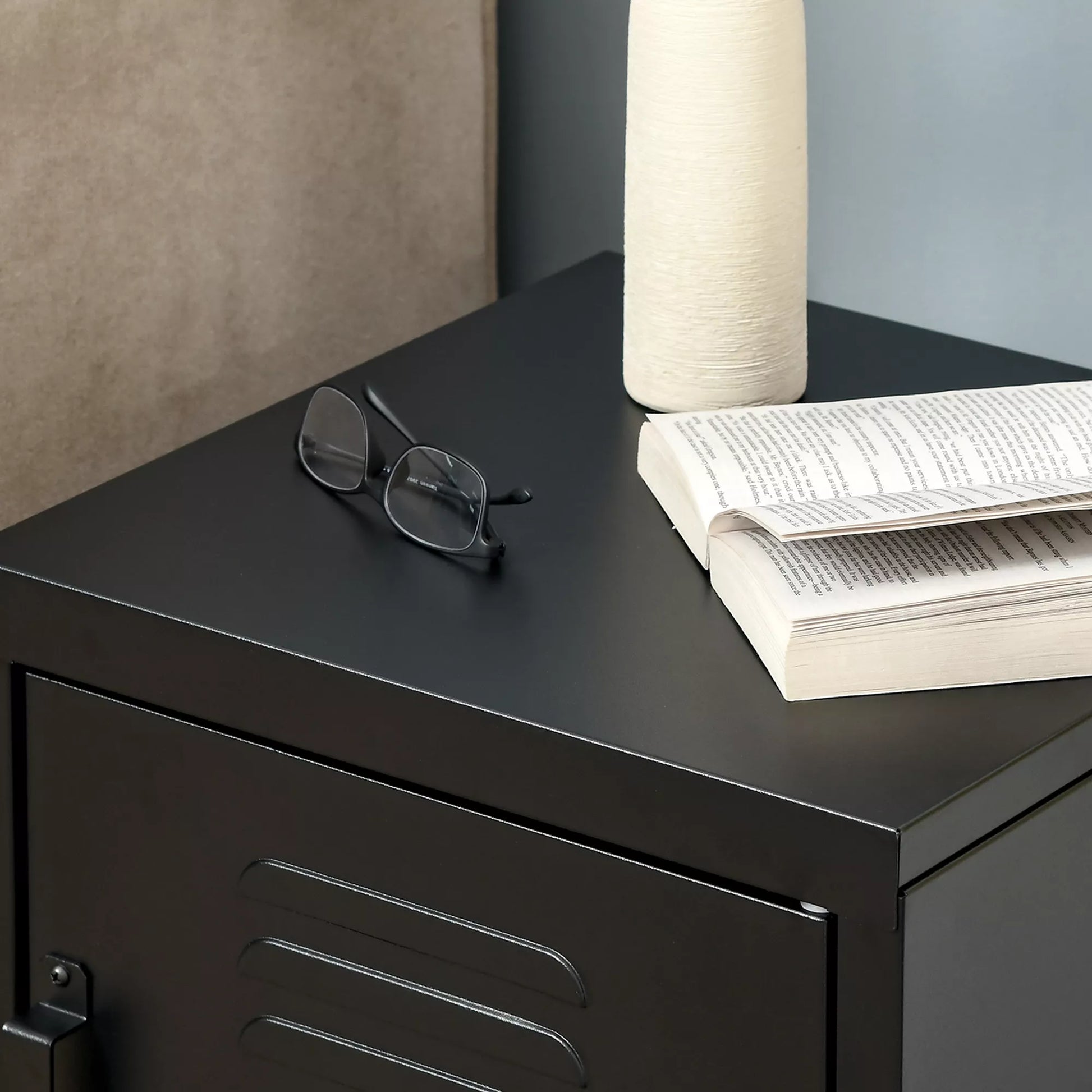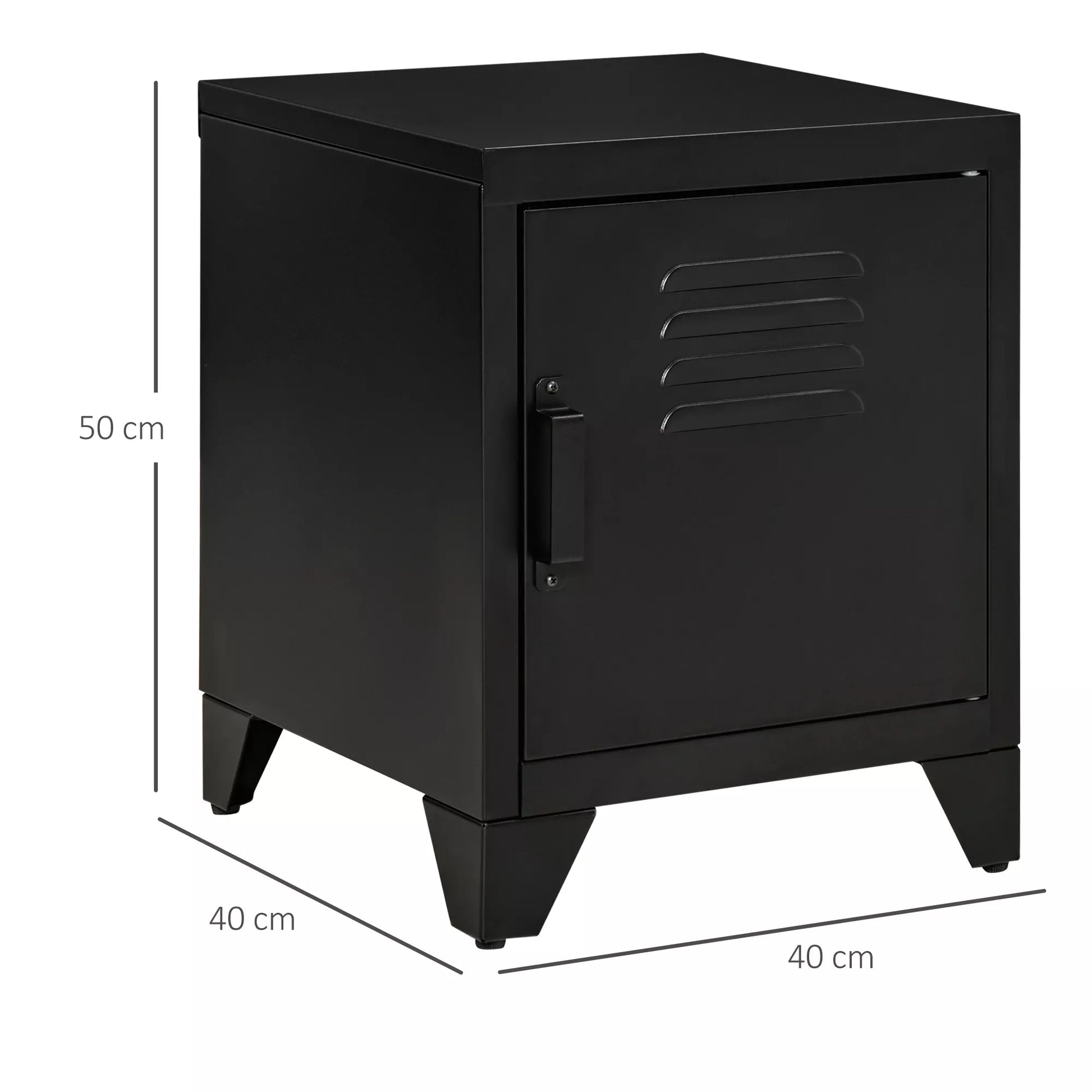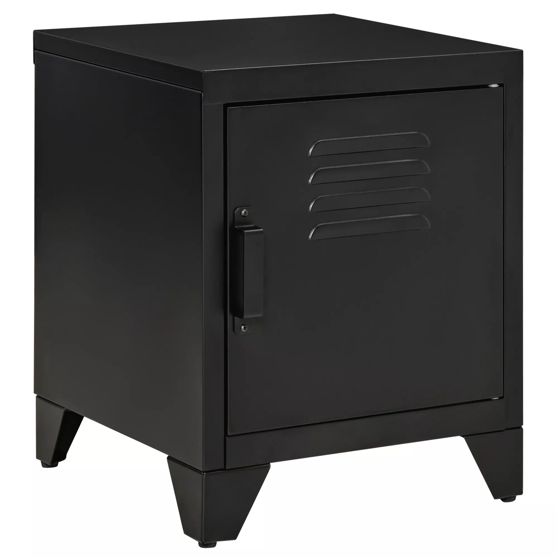 Šis paprastas, bet stilingas naktinis staliukas papildys bet kurį kambarį. Ši metalinė spintelė yra tvirtai pagaminta ir turi tvirtas metalines kojeles, užtikrinančias didesnį stabilumą. Durys turi metalinę rankenėlę, kuri leidžia lengvai atidaryti, todėl spintelę galima naudoti įvairiai. Dėl savo kompaktiško dydžio ši industrinio stiliaus naktinė spintelė tiks jūsų svetainėje, miegamajame ar biure.