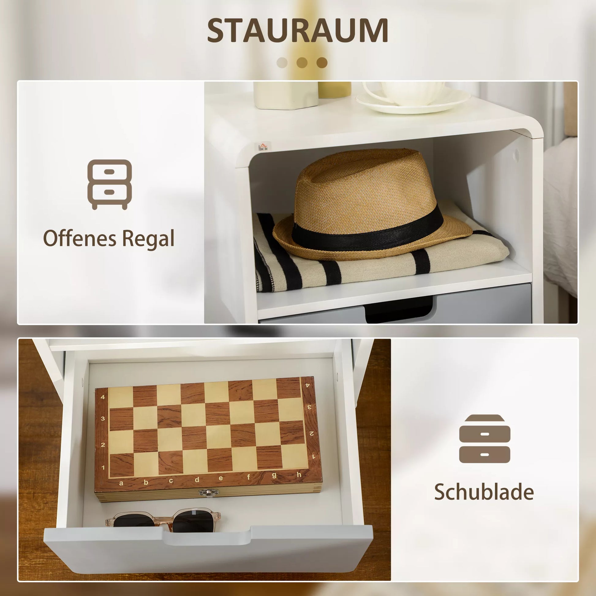 Naktinis staliukas, skandinaviško dizaino, su didele stalčiumi, vandeniui atsparus lakas, 40 x 38 x 58 cm, Balta