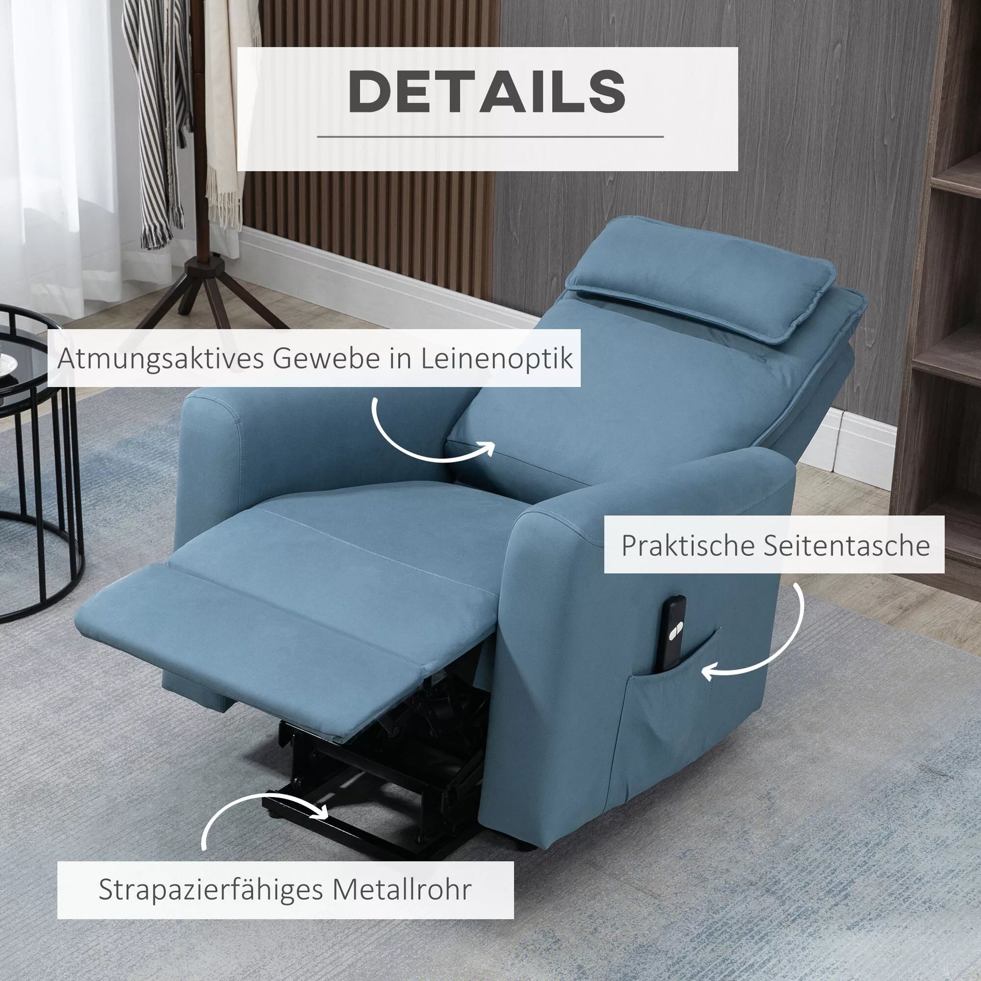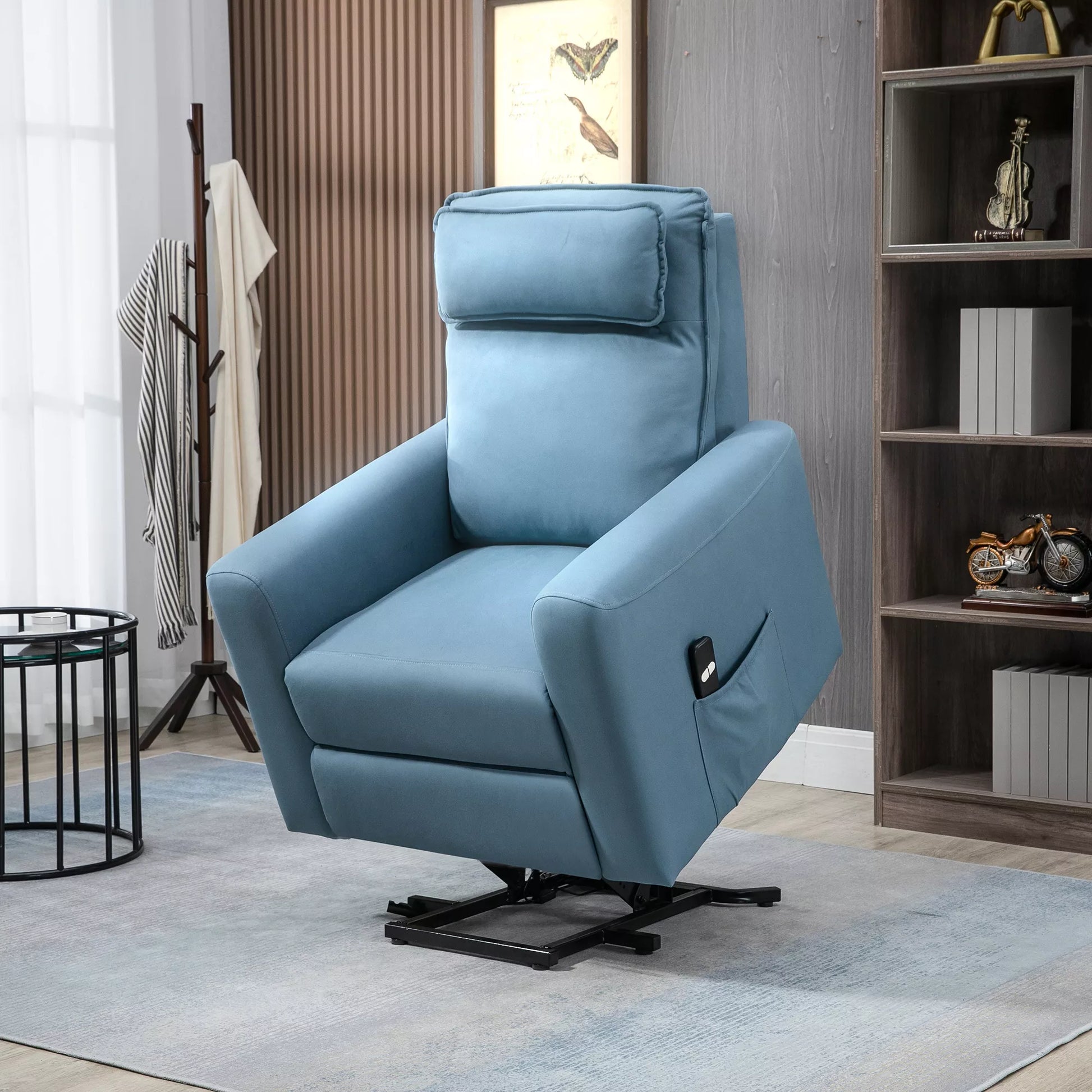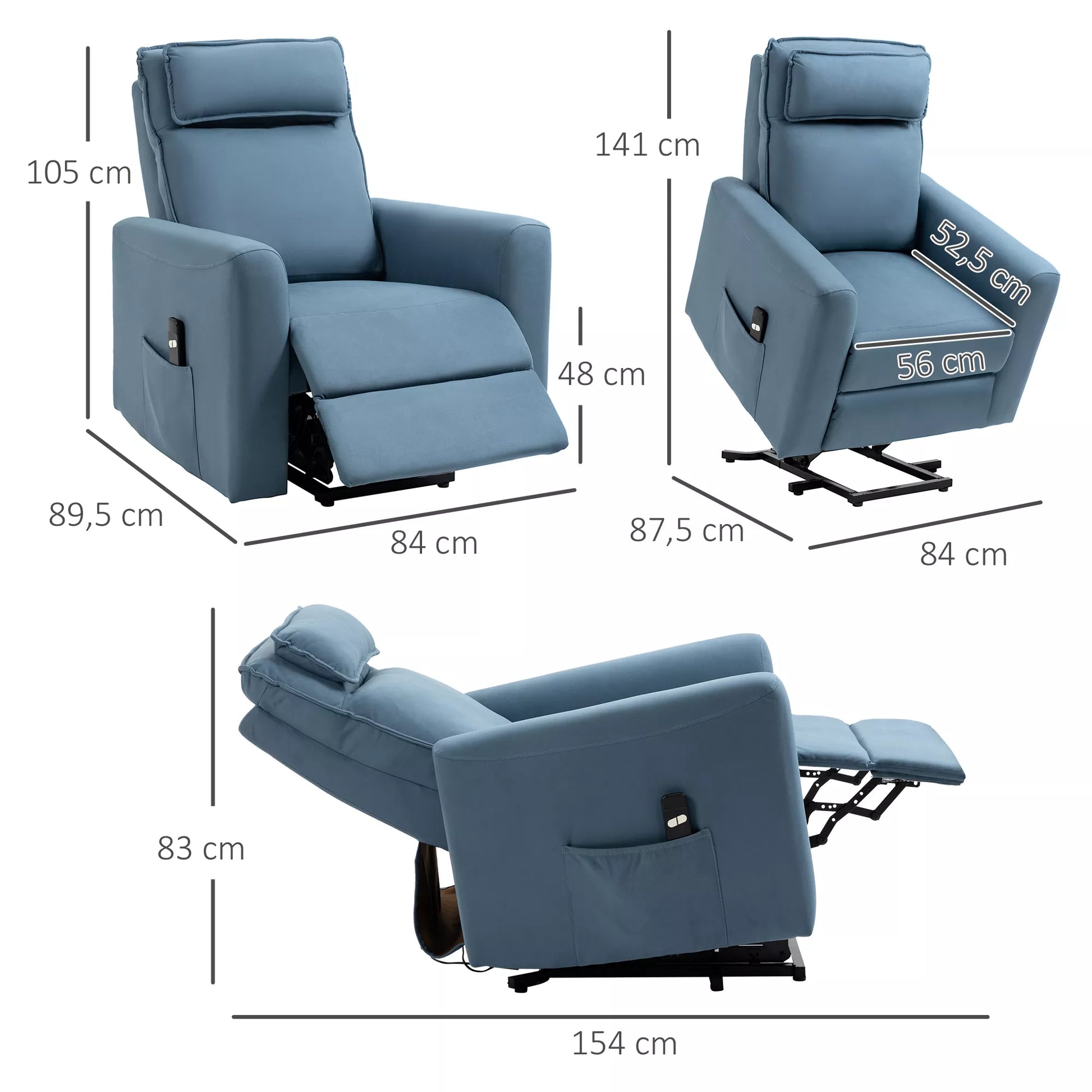 HOMCOM Pagalbinė atsistojant poilsio fotelis, integruota kojų atrama, šoninė kišenė, laidinis nuotolinio valdymo pultelis, 84 x 89,5 x 105 cm, Mėlynas