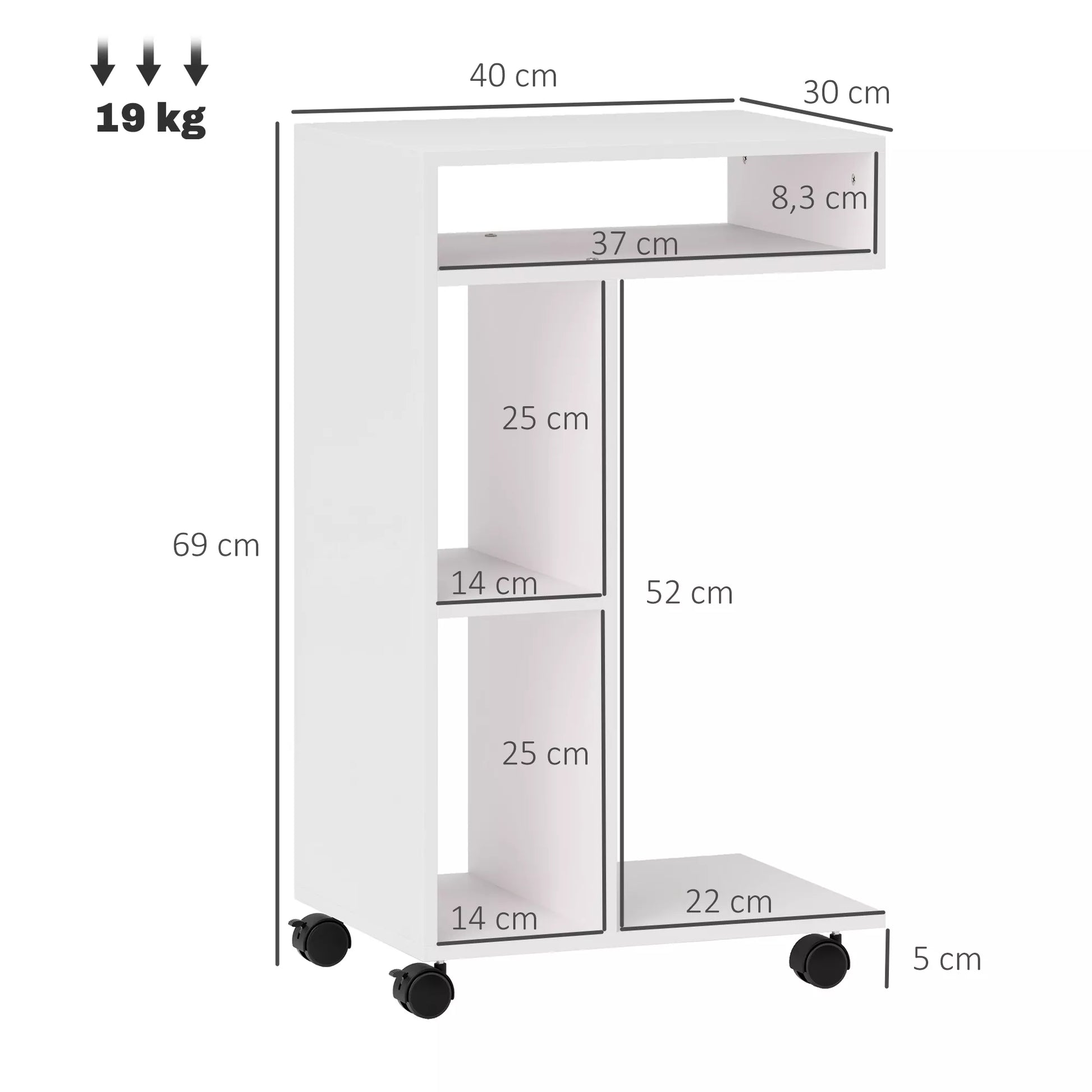 Pastatomas staliukas, C formos serviravimo vežimėlis, 4 ratukai, 3 skyriai, 40 x 30 x 69 cm, Baltas