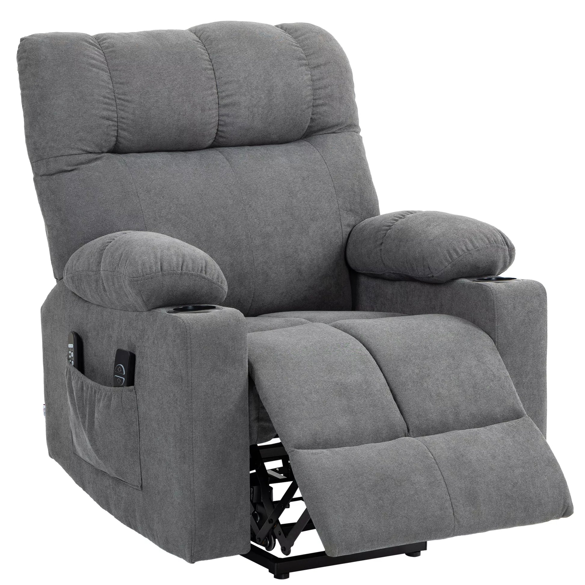 Būdas, kuriuo atsipalaiduojate, pasikeis visam laikui dėl šios HOMCOM fotelio su pakėlimo funkcija. Padėkite kojas ant įmontuojamos kojų atramos ir nustatykite atlošą į mėgstamą padėtį – atloškite, žiūrėkite televizorių ar miegokite. Ilsėsitės ant storo, minkšto audinio, o aštuoni masažo taškai padės atpalaiduoti raumenų įtampą.