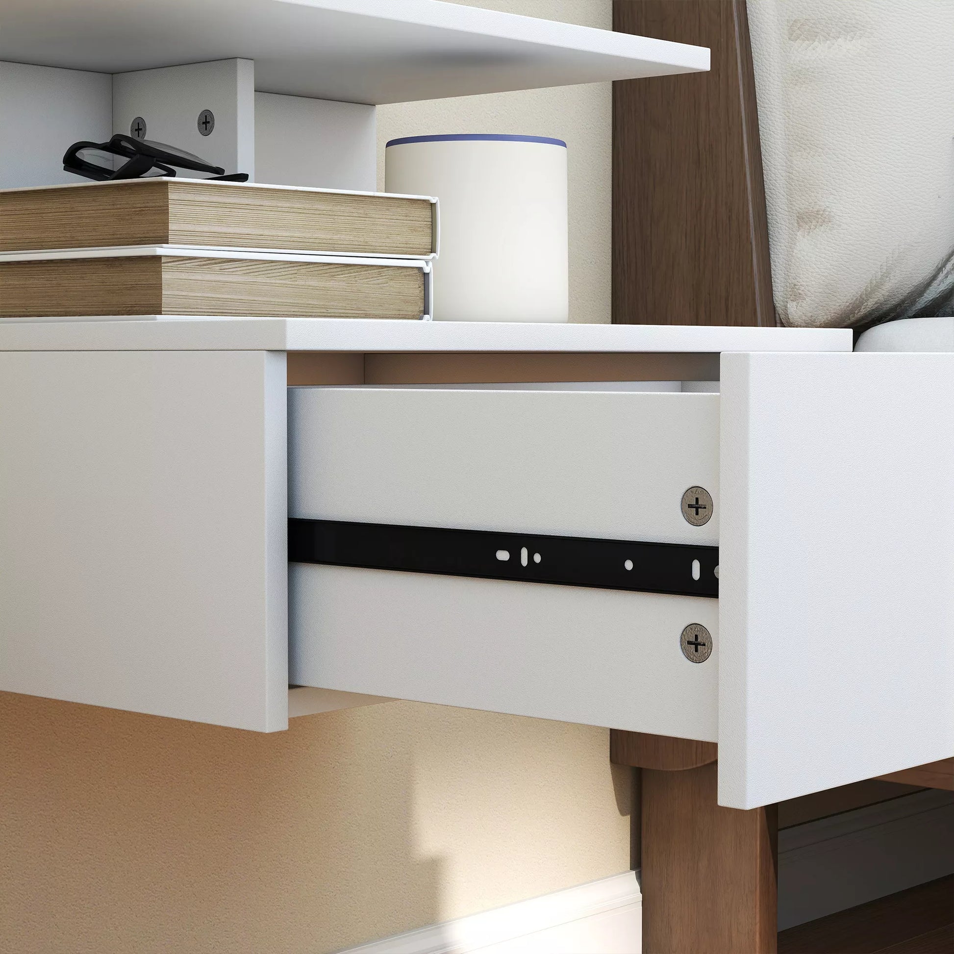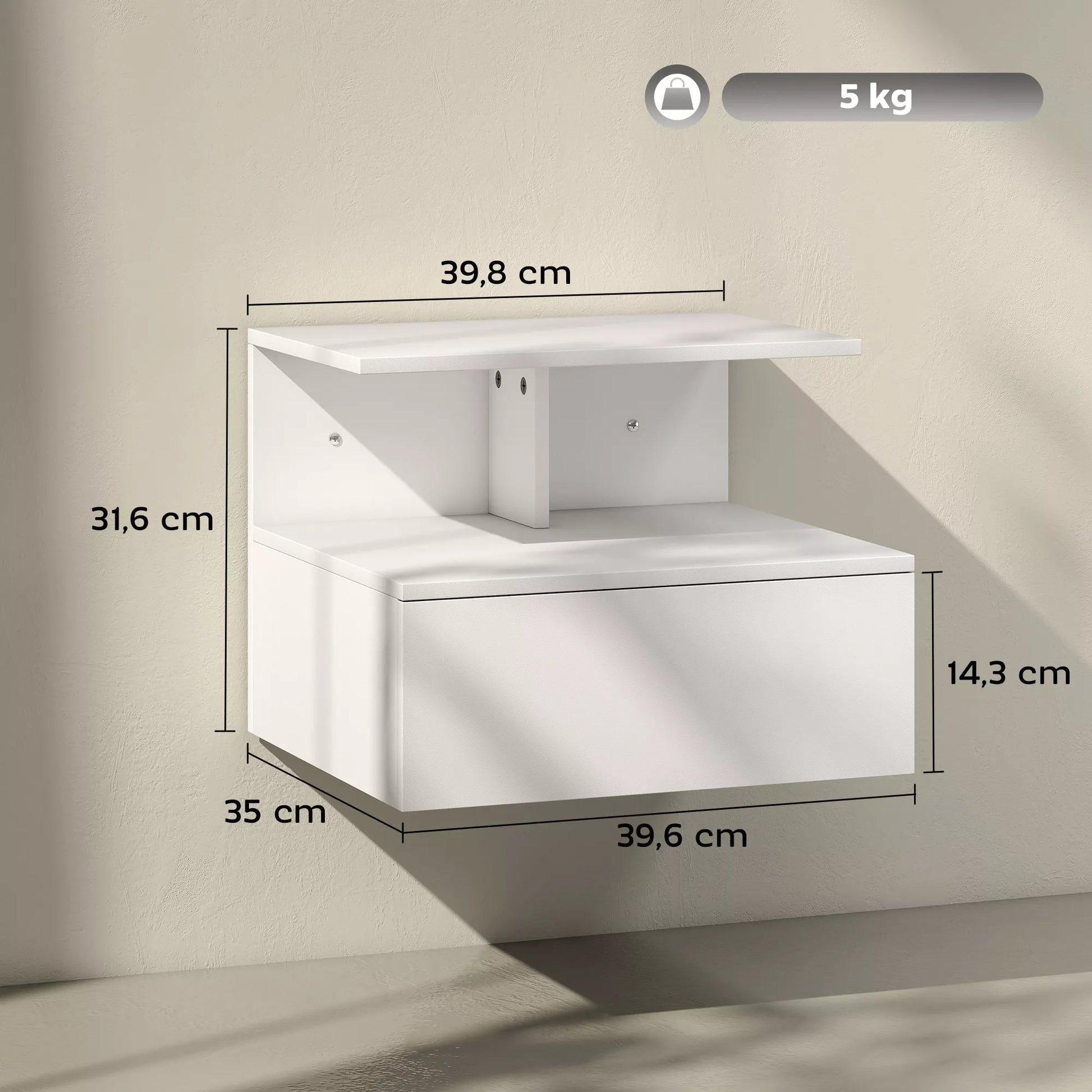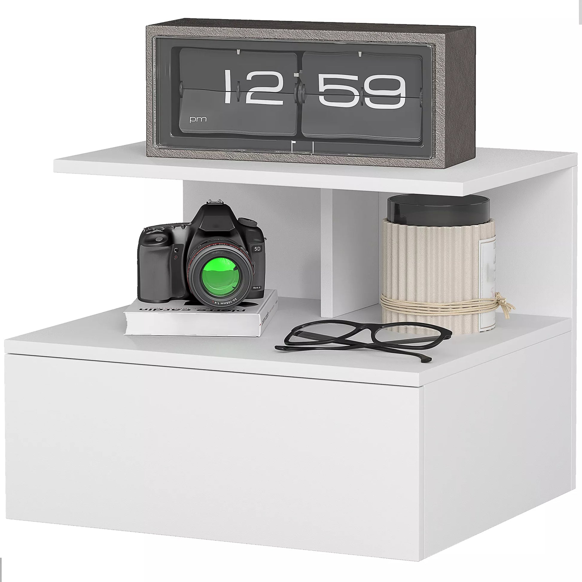 Pakabinamas naktinis staliukas, pagalbinis staliukas su stalčiumi, atvira niša, baltos spalvos, 39,8 x 35 x 31,6 cm