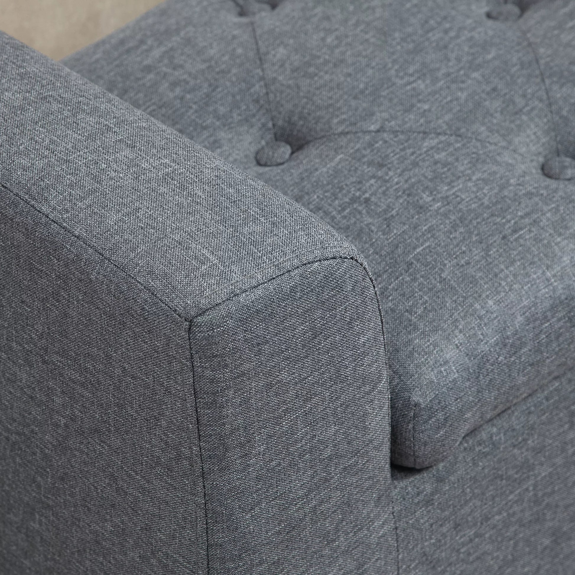 Su šia [Gamintojo pavadinimas] suoliuku su daiktadėže, akimirksniu sukursite stulbinantį akcentą savo namuose. Kvėpuojantis audinys su lininės išvaizdos apdaila ir suolas su sagų detalėmis suteiks jūsų namams senovinio žavesio. Šis suoliukas su didele daiktadėže yra praktiškas ir klasikinis pasirinkimas papildomoms sėdimoms vietoms prieškambaryje, po langu ar svetainėje.