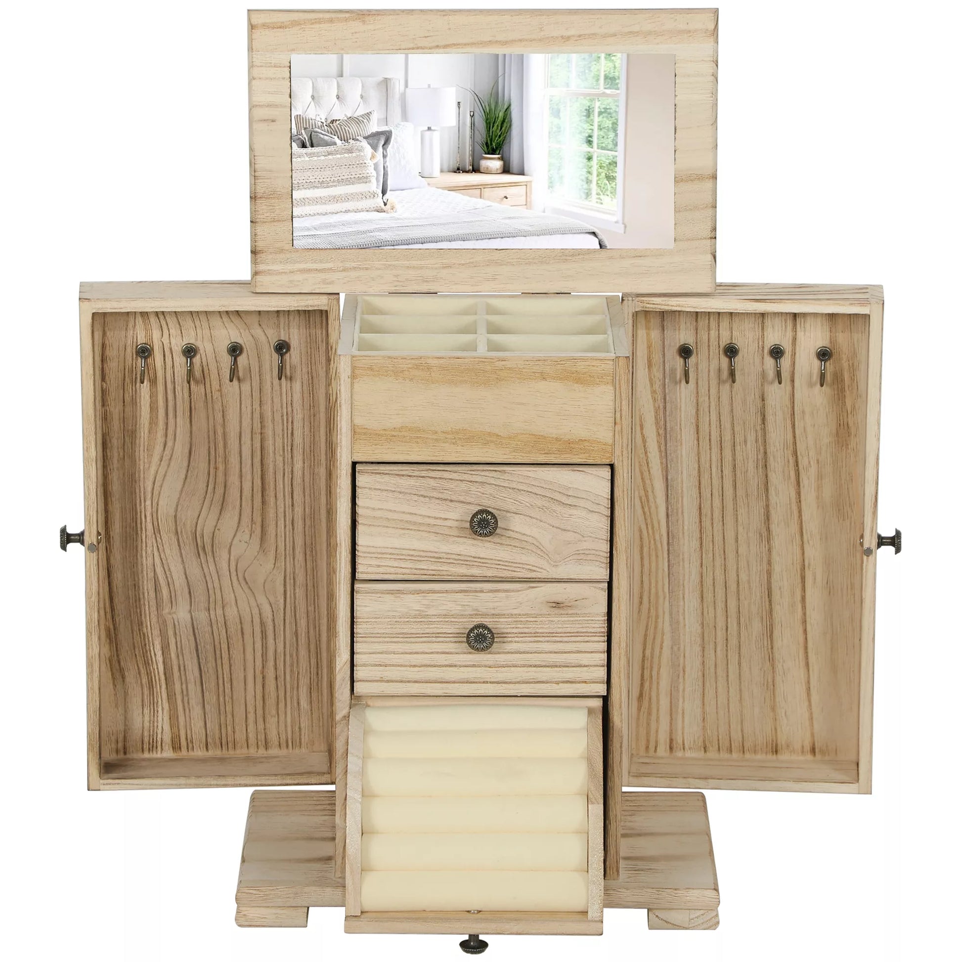 Kiekvieną rytą ieškote susipainiojusioje papuošalų krūvoje, gaišdami brangų laiką. Daugiapakopis papuošalų organizatorius padeda greitai rasti žiedus, auskarus ir apyrankes. Atsisveikinkite su susipainiojusiomis grandinėlėmis dėka besisukančių šoninių durų ir specialiai tam skirtų kabliukų. Pagaminta iš taurios Paulovnijos medienos, ši didelė papuošalų dėžutė suteiks jūsų erdvei šilumos ir elegancijos, papuošdama jūsų kasdienybę.