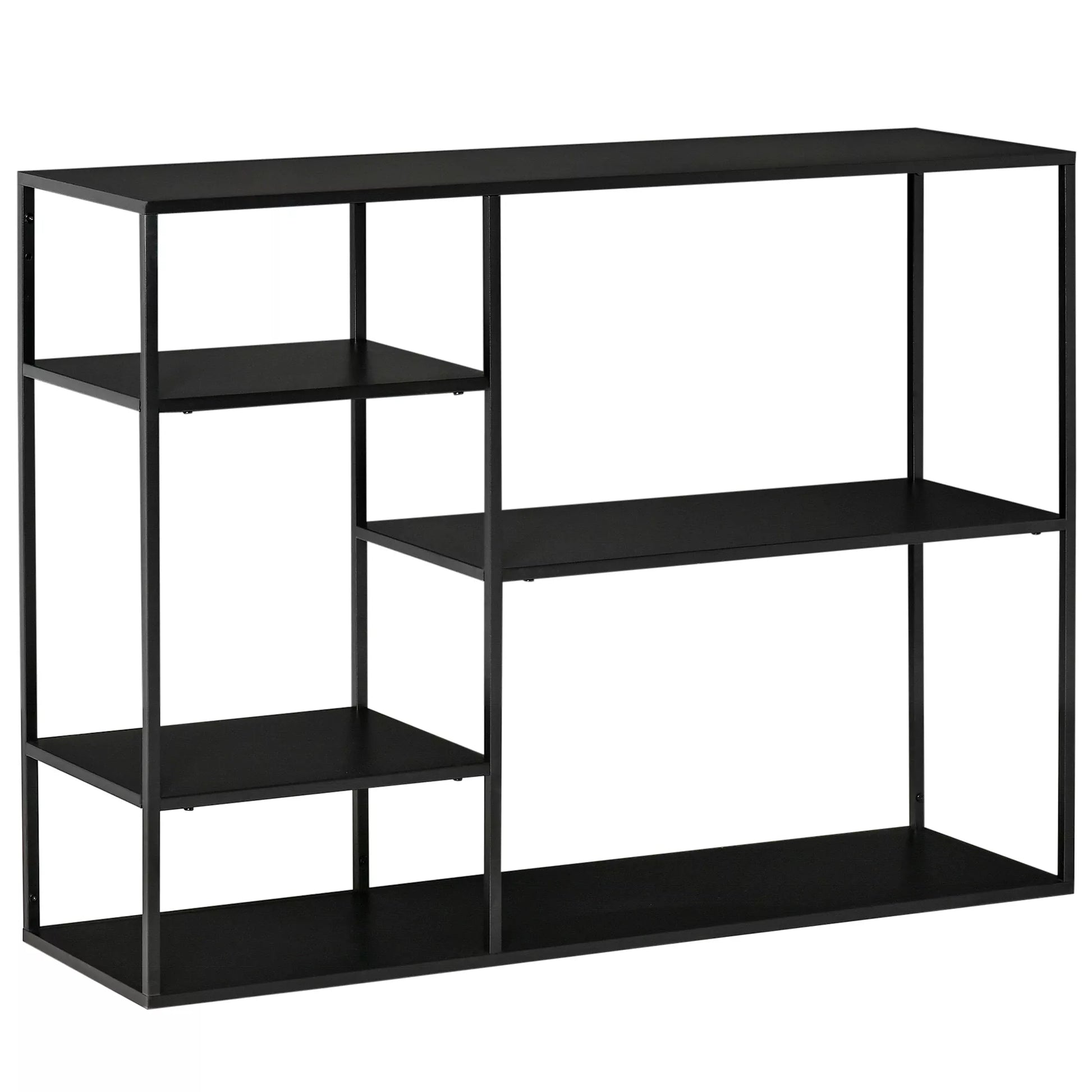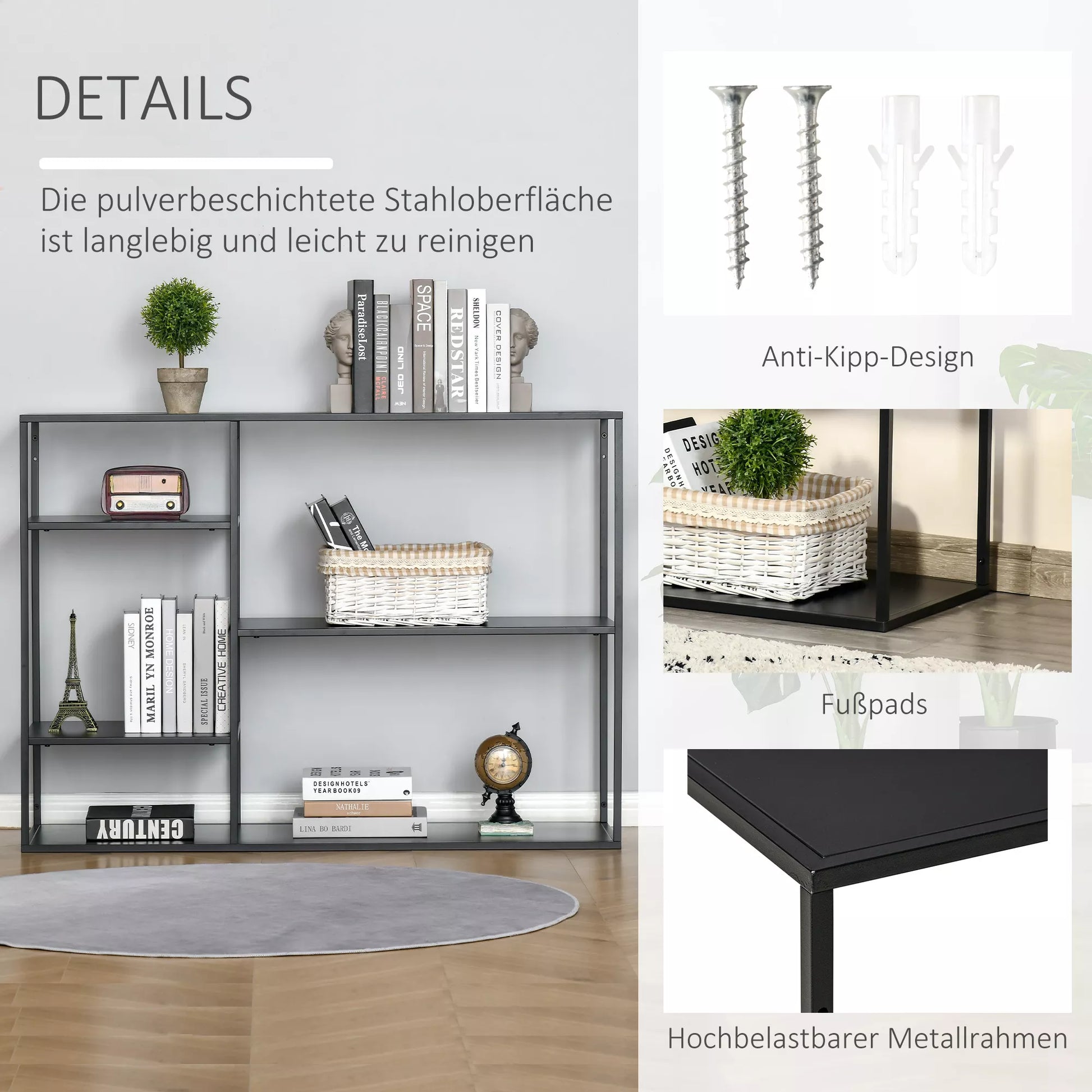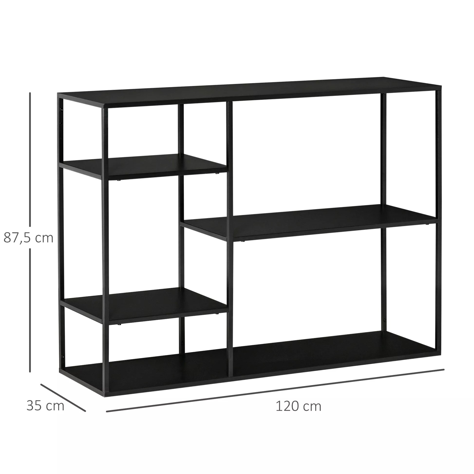 Pastatoma knygų lentyna su 5 atviromis lentynomis, laikymo lentyna su metaliniu rėmu, kubinė lentyna virtuvei, svetainei, juoda, 120 x 35 x 87,5 cm