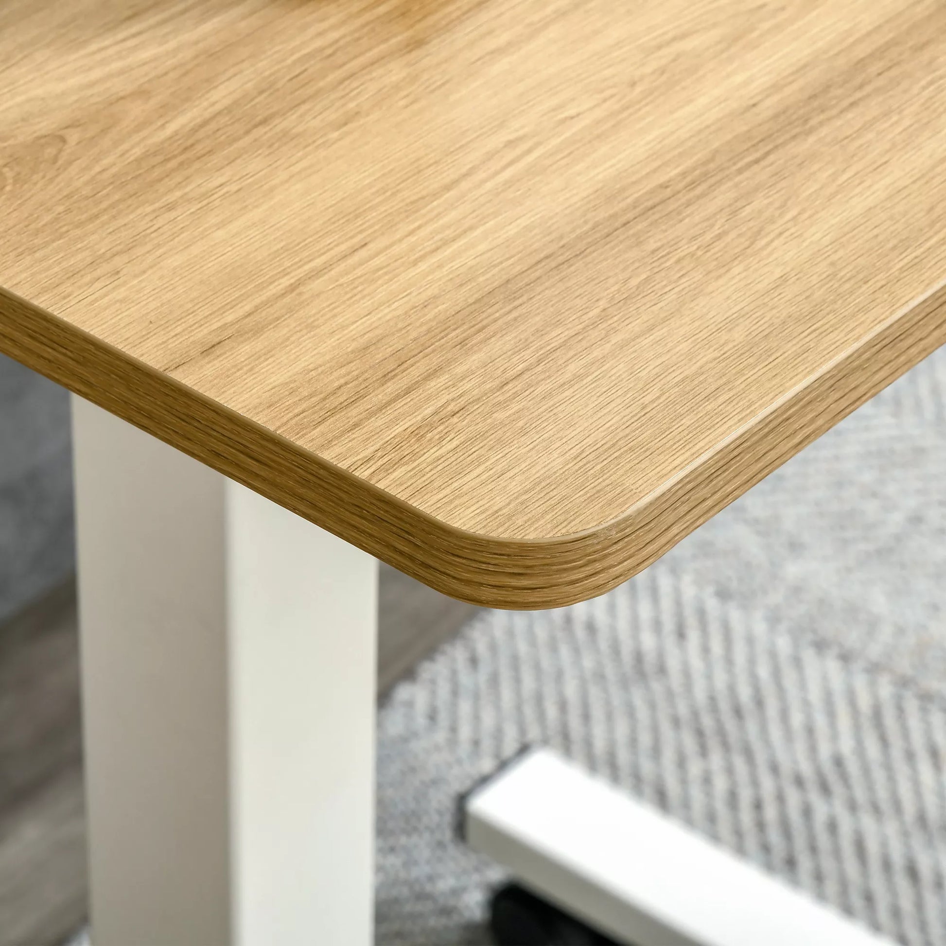 Stovimas stalas, reguliuojamo aukščio, su 4 ratukais, C formos, 65 cm x 48 cm x 70-110 cm, Natūralus + Baltas