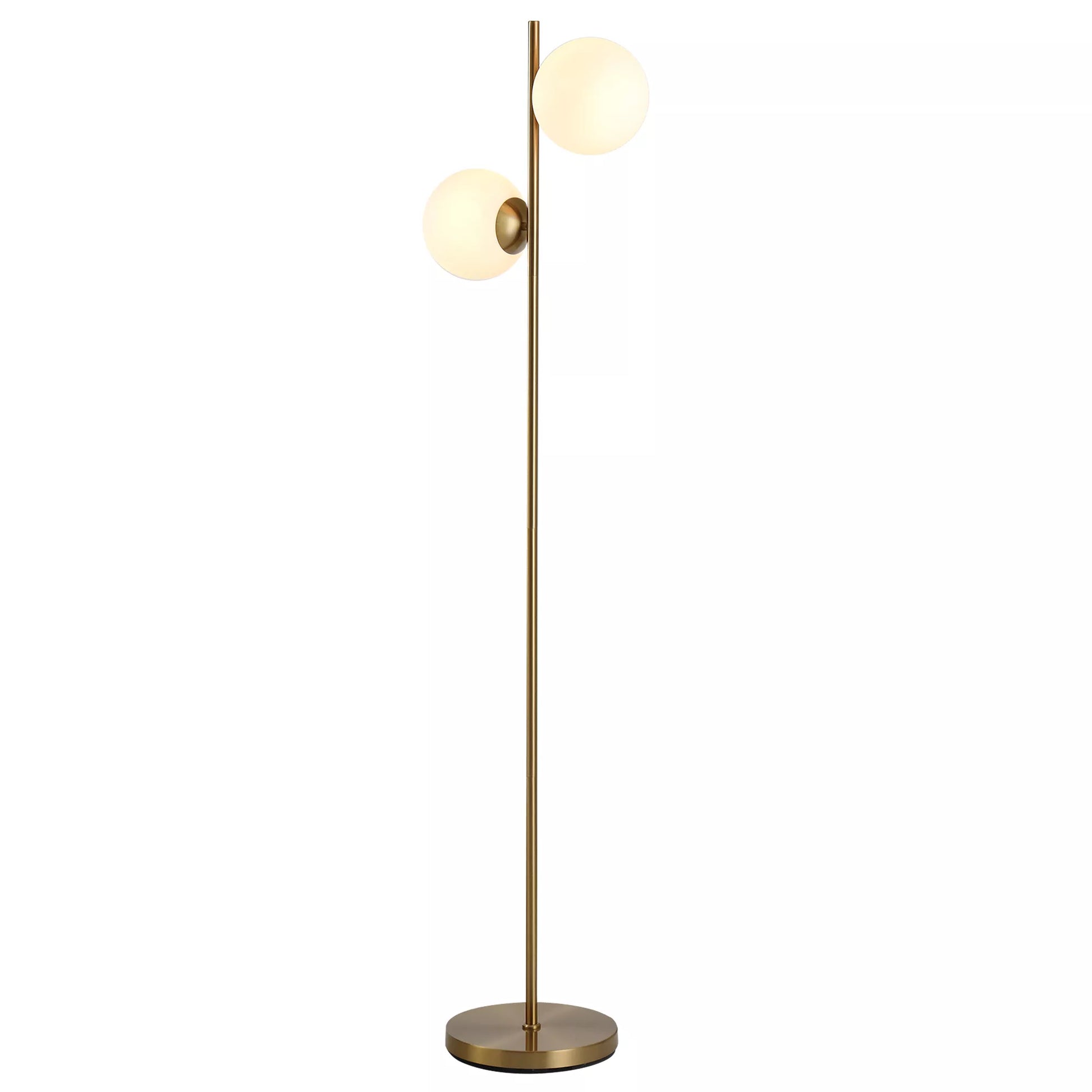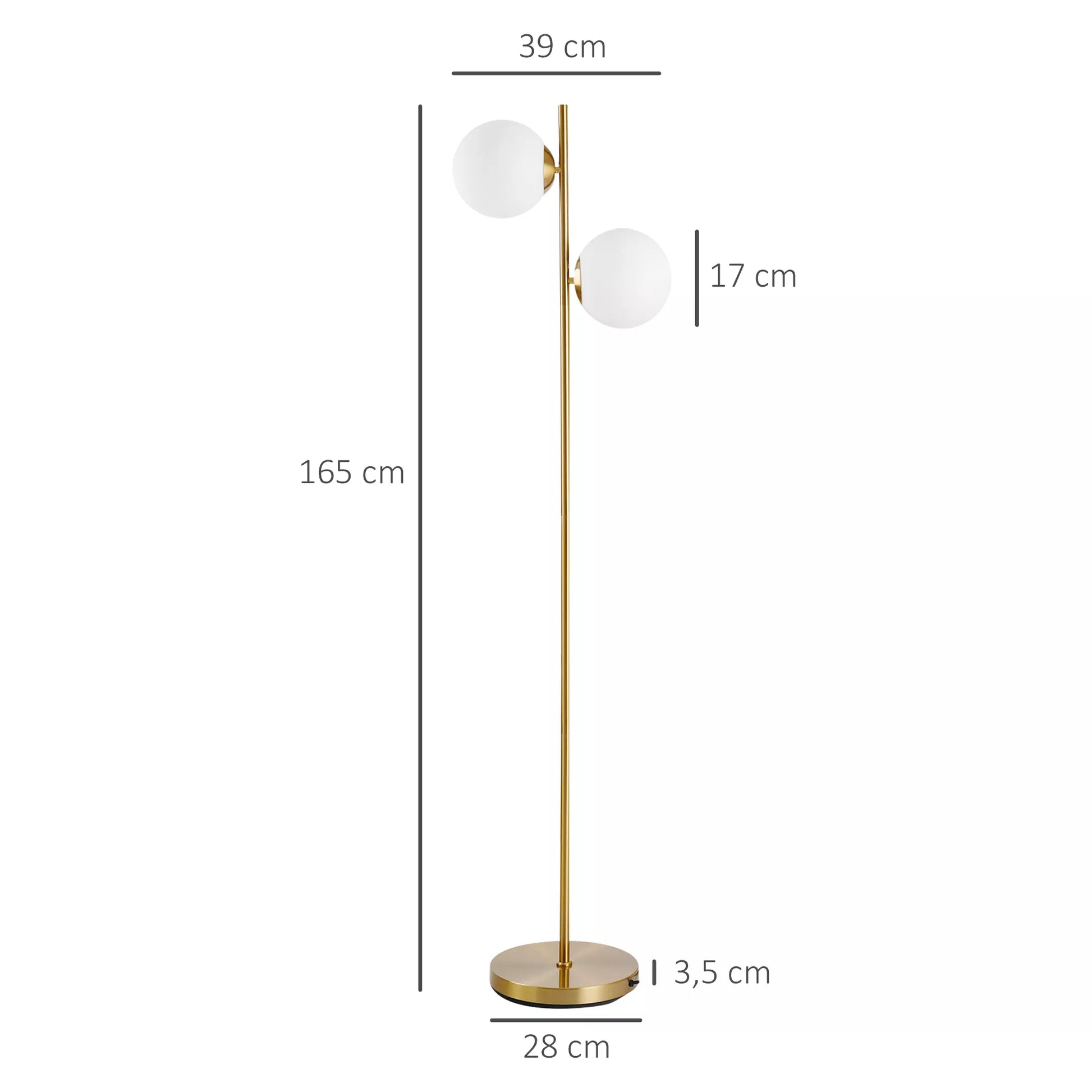 Grindų šviestuvas, 2 dalių stiklinis gaubtas, plienas+stiklas, 39 x 28 x 165cm (Auksinis+Baltas)