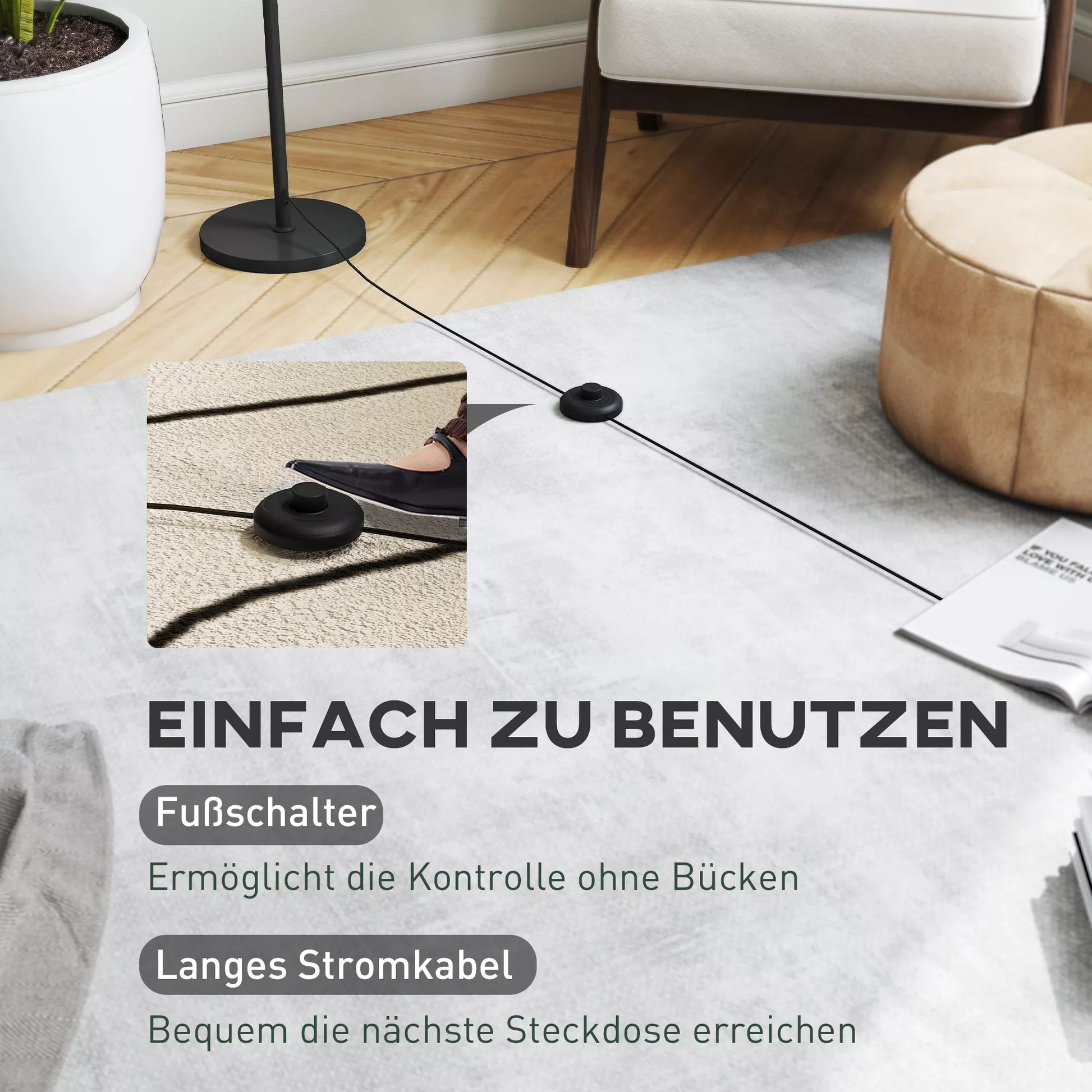 - ✔ Kojinis jungiklis, skirtas lengvai įjungti ir išjungti lempą