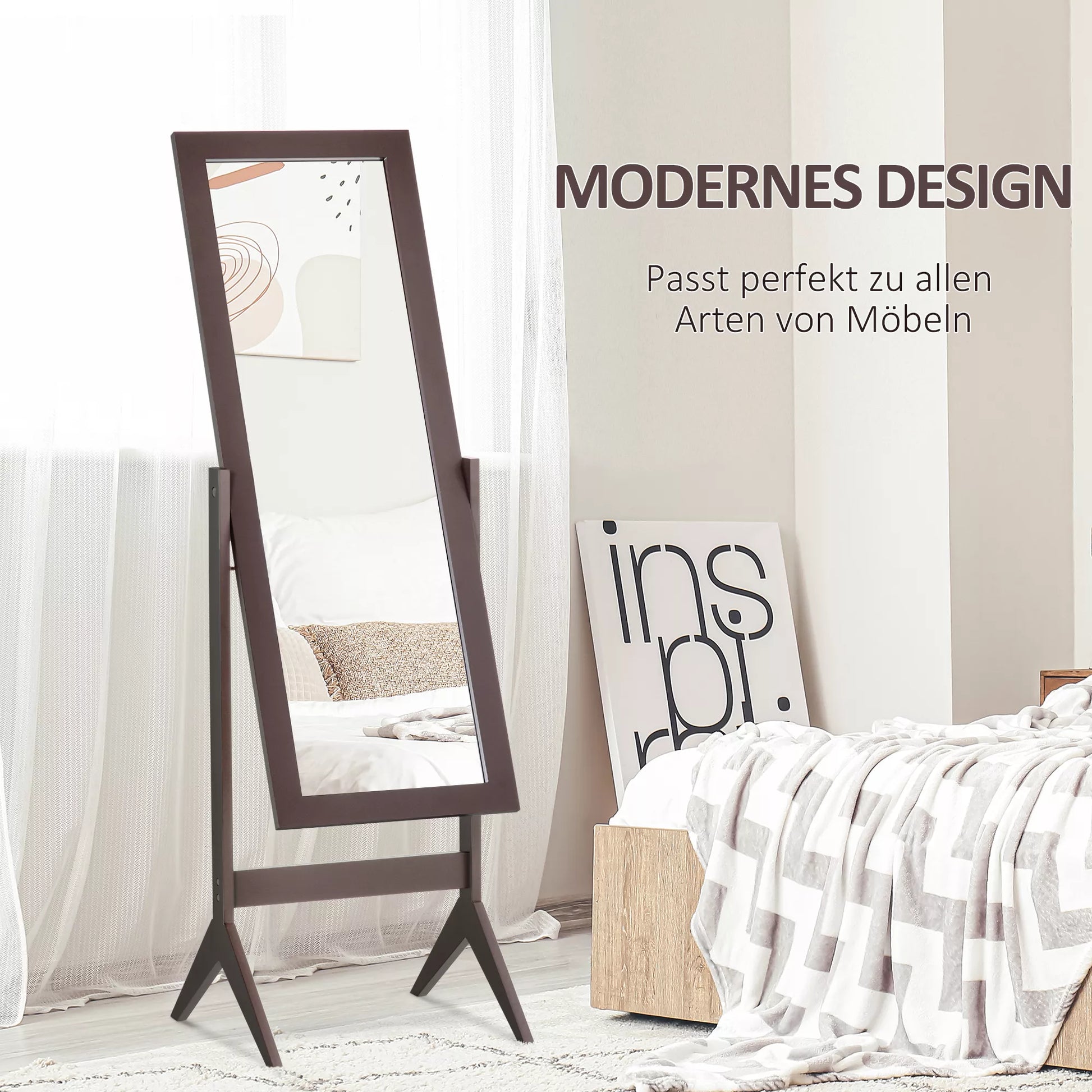 Pastatomas veidrodis, viso kūno veidrodis, makiažo veidrodis, paaukštintas pagrindas, lengvai prižiūrimas, MDF, kavos spalvos, 47 x 46 x 148 cm