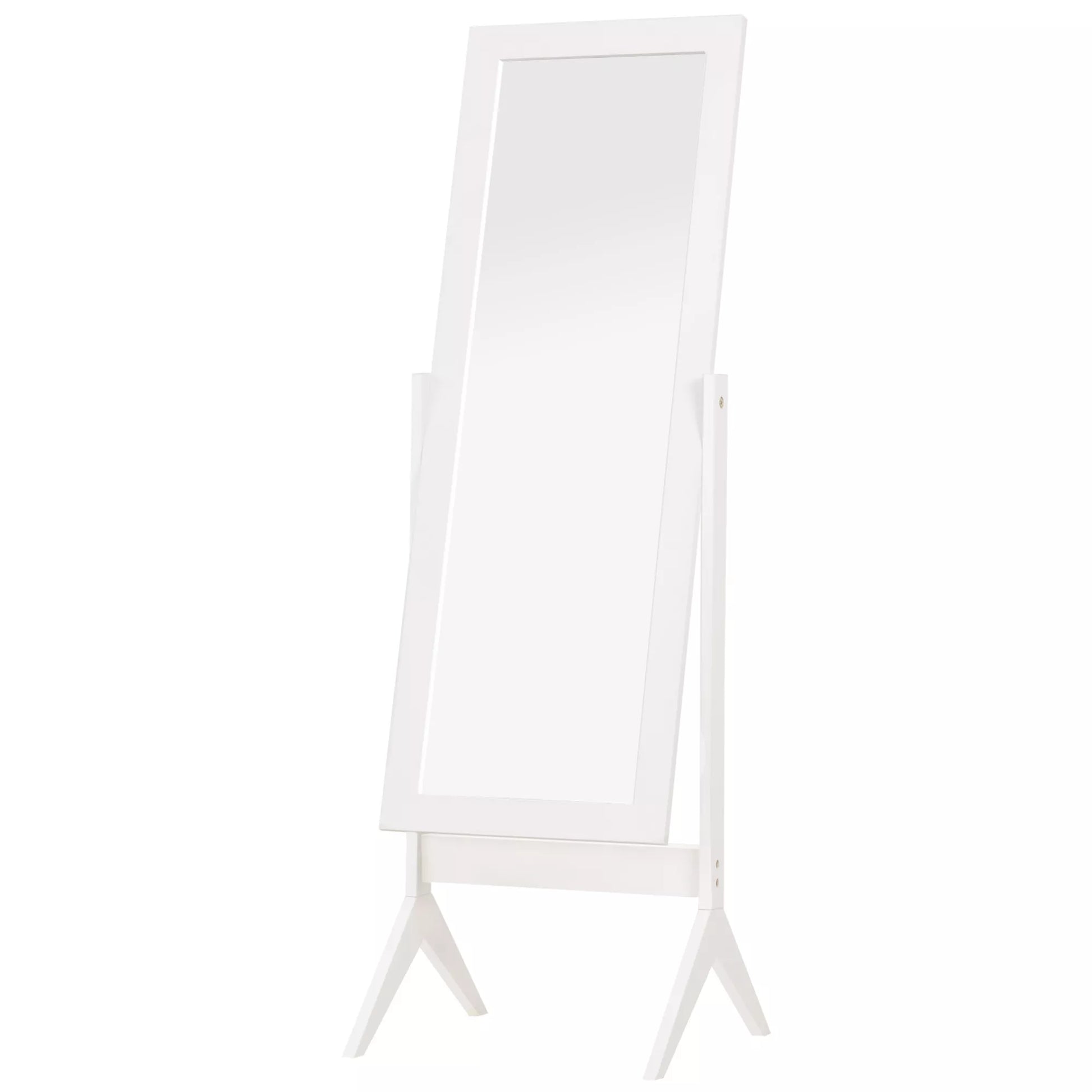 Pastatomas veidrodis Viso kūno veidrodis Veidrodis makiažui Pakeltos kojelės Lengvai prižiūrimas MDF Baltas 47 x 46 x 148 cm